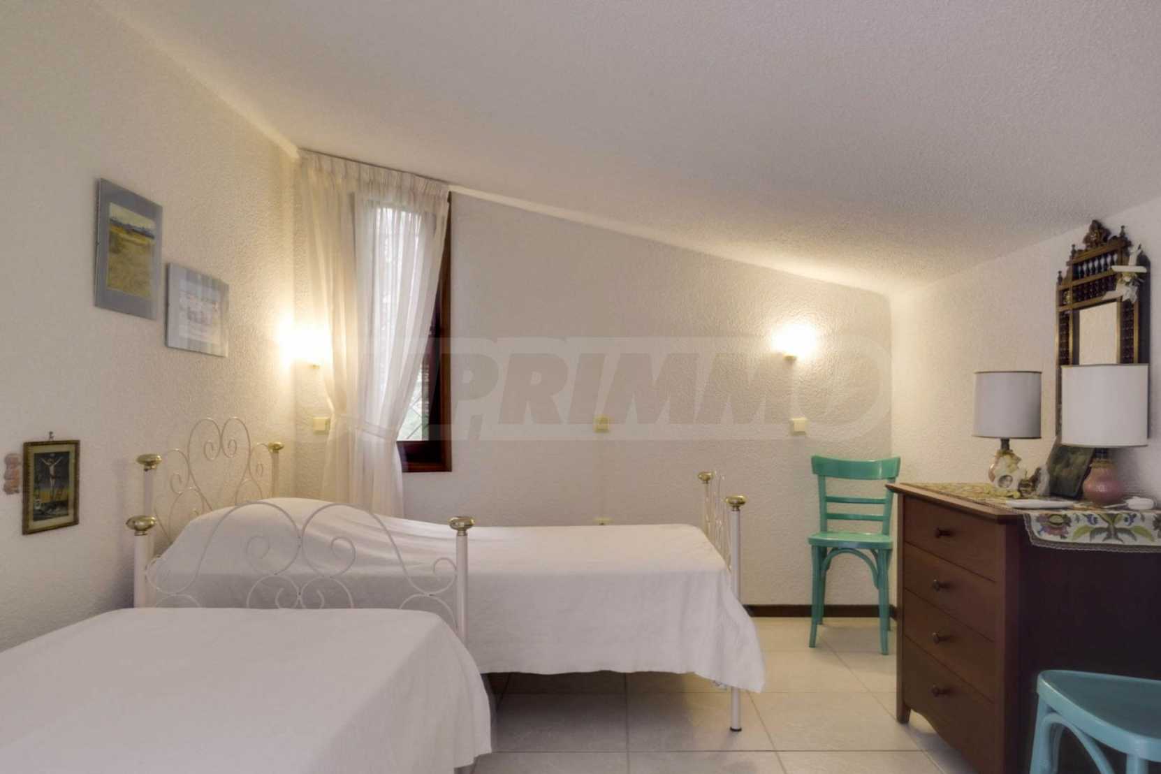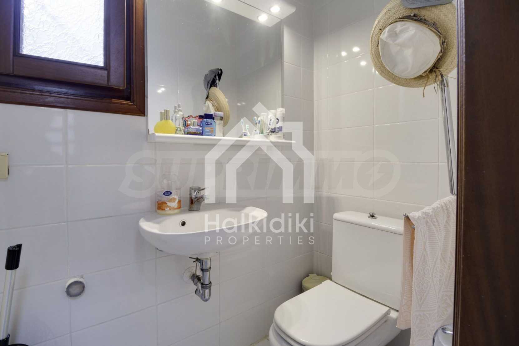 Ten piękny dom położony jest w wakacyjnej wiosce Sani, części odnogi Kassandra na Półwyspie Chalcydyckim. Willa została zbudowana w 1995 roku i została całkowicie odnowiona w 2012 roku. Rozciąga się na powierzchni mieszkalnej 90 mkw. i jest w pełni umeblowane. Posiada kuchnię i jadalnię, salon, dwie sypialnie, łazienkę z WC.