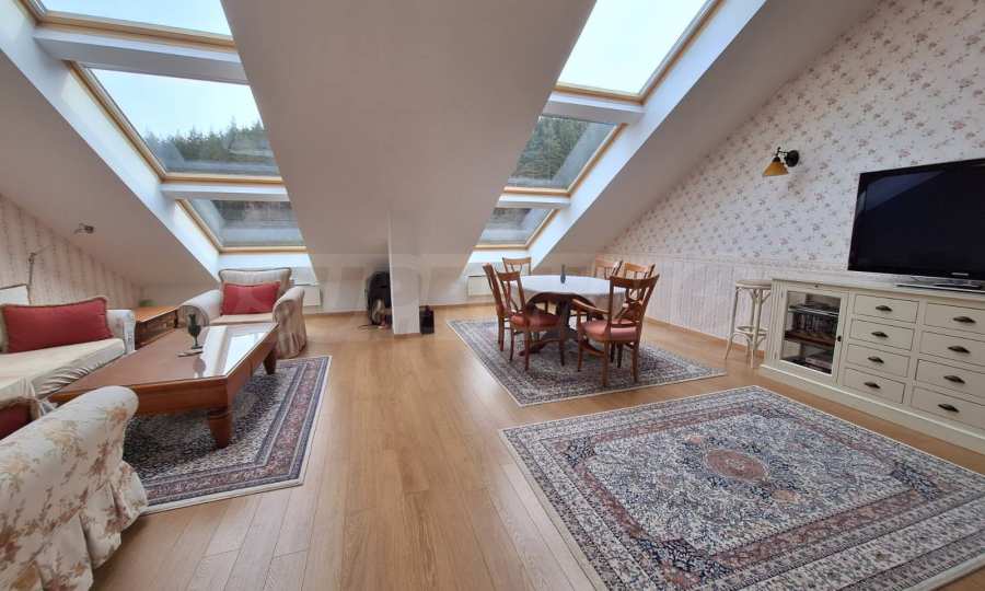 Dom letniskowy (2010), z ekspozycją północną i południową oraz pięknym widokiem na góry, znajduje się na 4 piętrze o powierzchni zabudowanej 114,50 mkw. W pełni wyposażona kuchnia obejmuje 4 palniki, okap, zlewozmywak, lodówkę, czajnik elektryczny, toster. Salon - sofa, fotel, telewizor, stolik kawowy, szafka pod telewizor, Wi-Fi, telefon, recepcja, stół jadalny, 4 krzesła, rolety. Sypialnia 1: pojedyncze łóżko, podwójna szafa. Sypialnia 2: podwójne łóżko, 2 szafki nocne, szafa dwudrzwiowa, komoda.