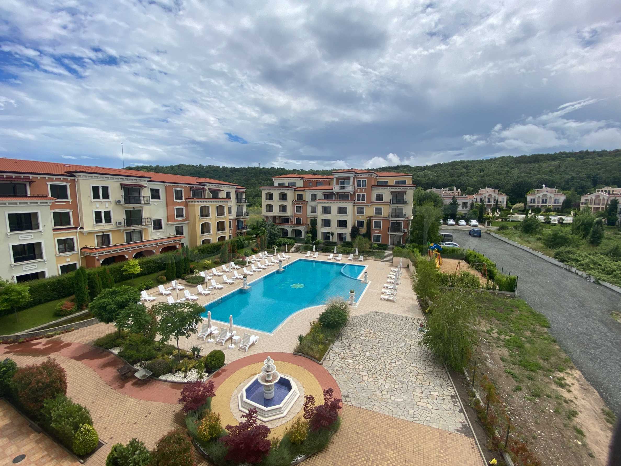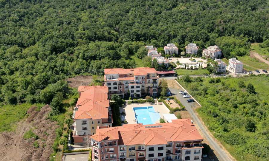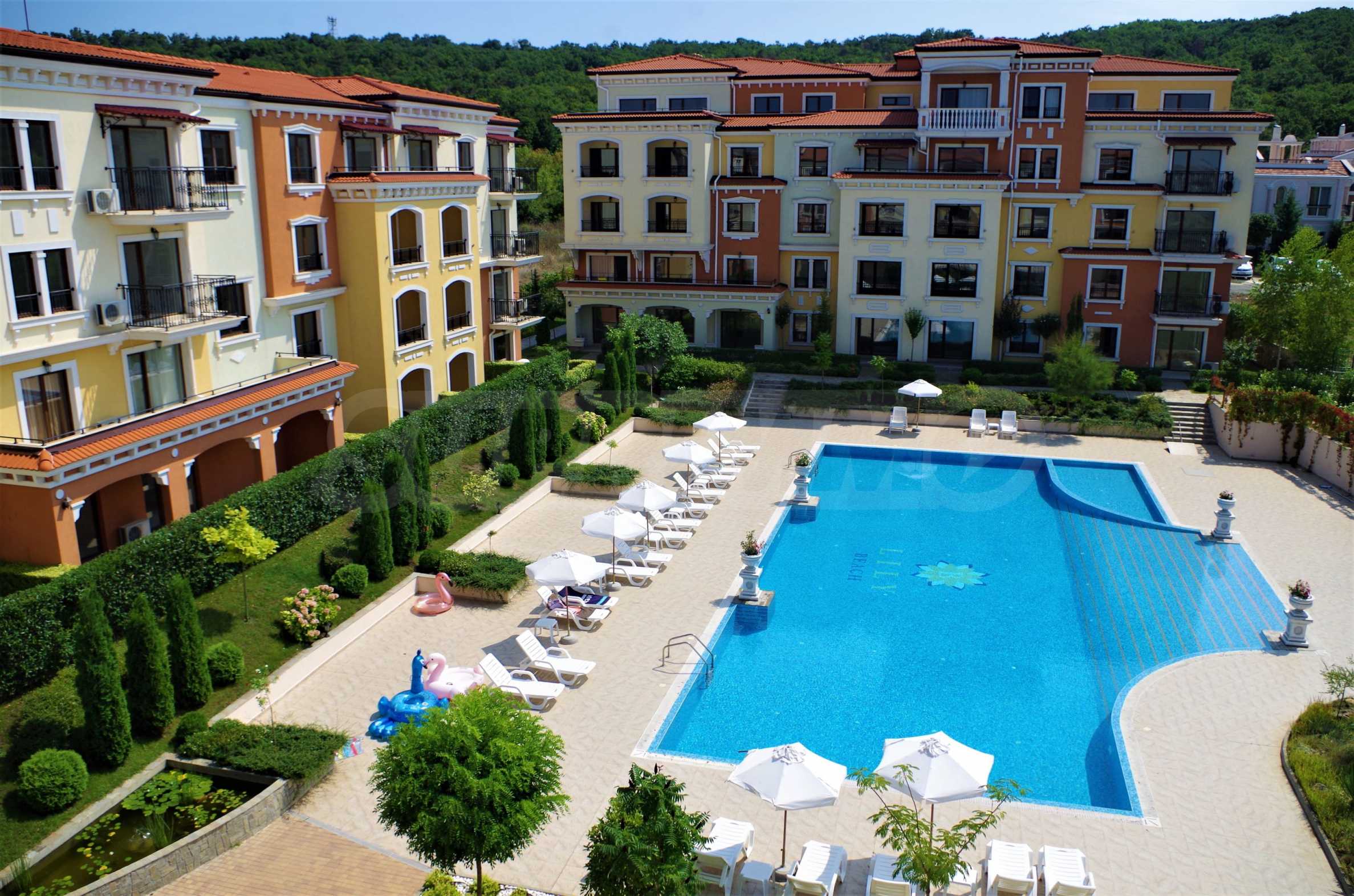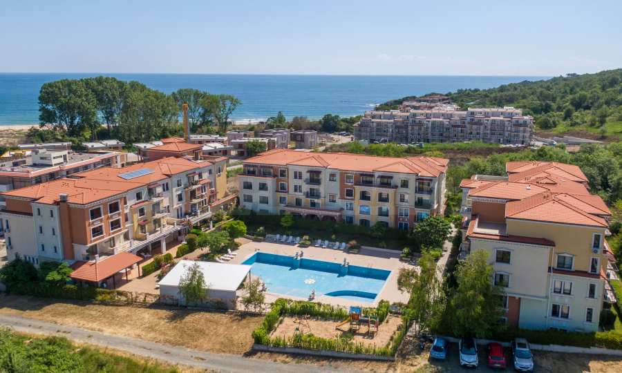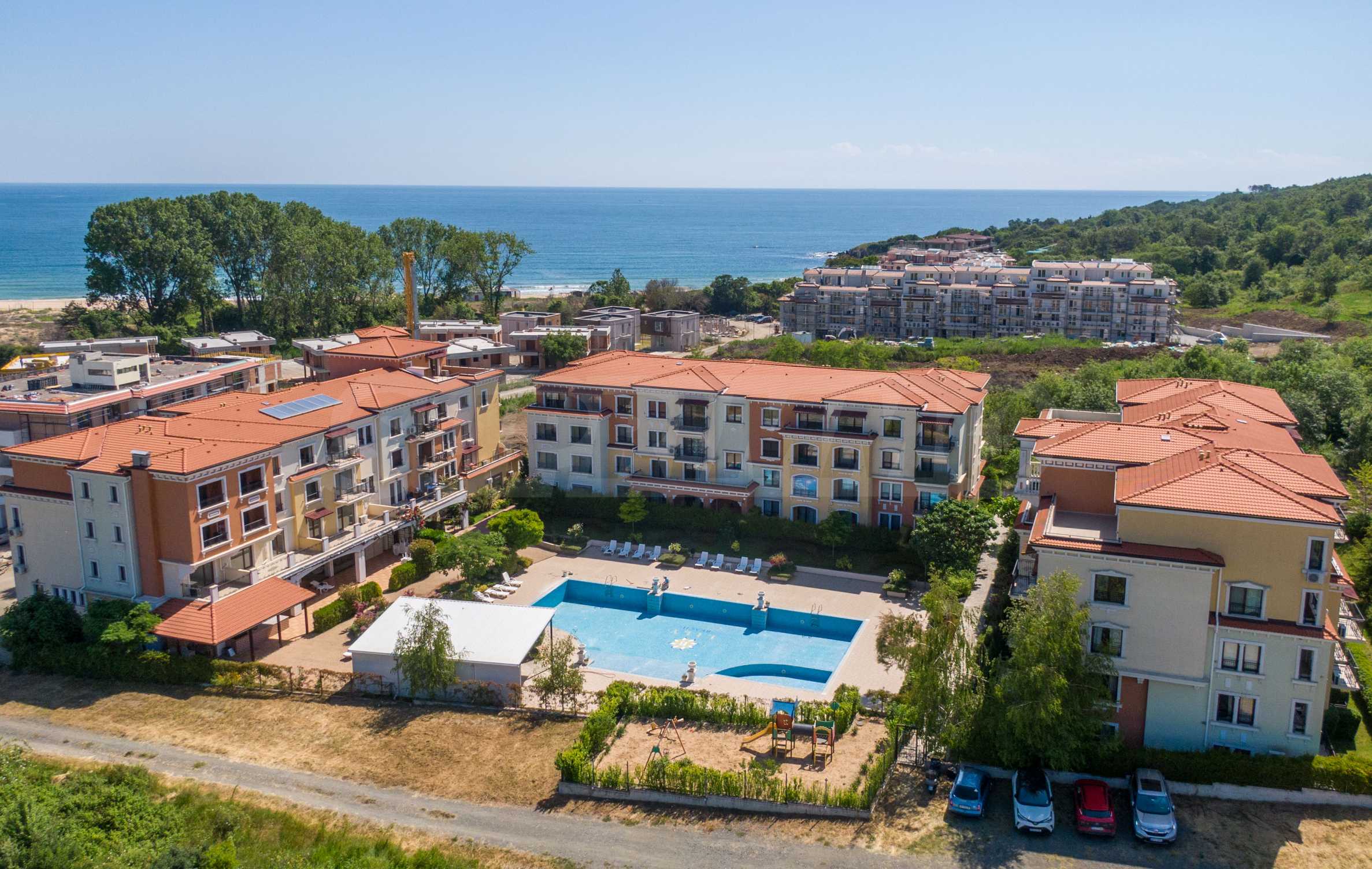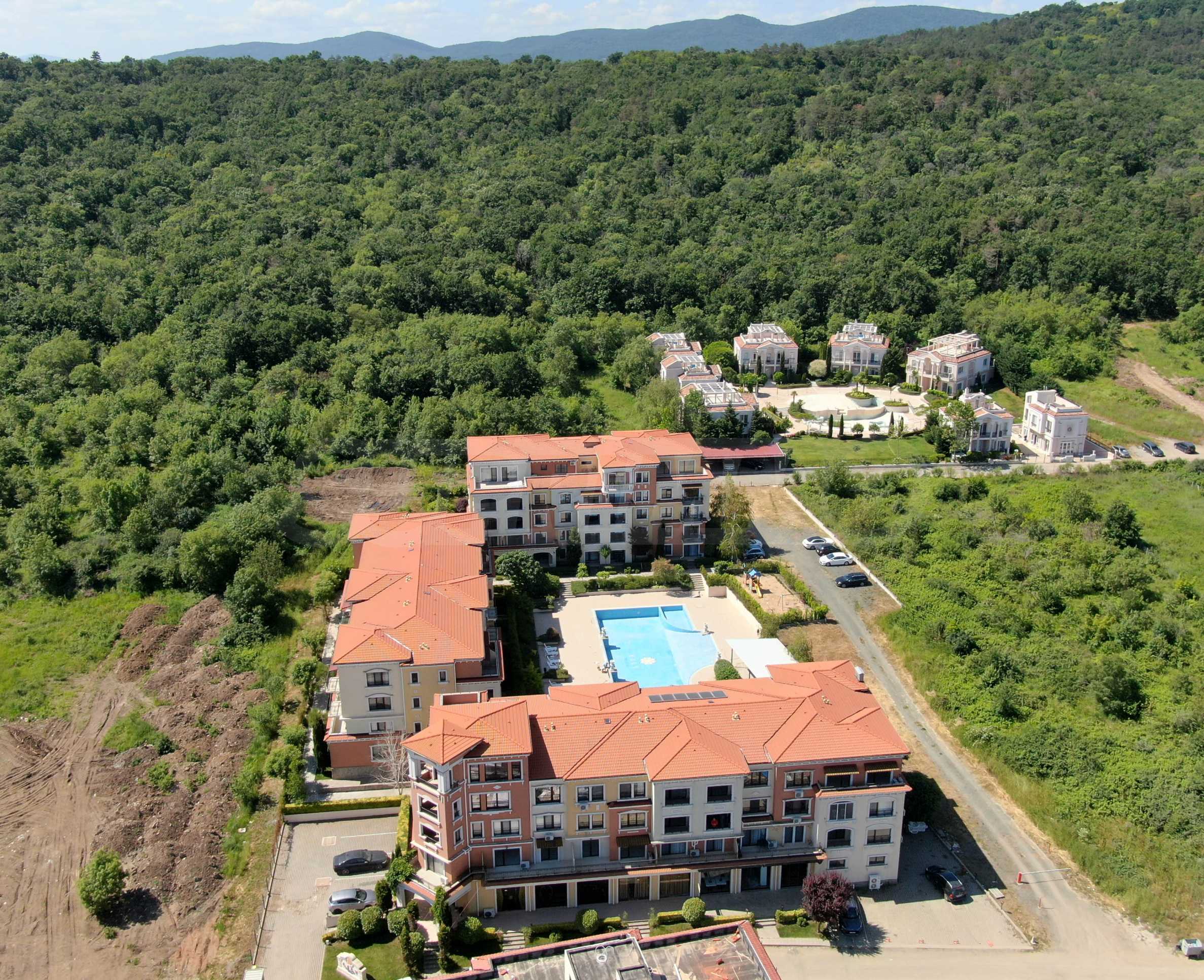 Wszystkie apartamenty w kompleksie mają inny widok na las, basen, wewnętrzną część kompleksu i morze.
