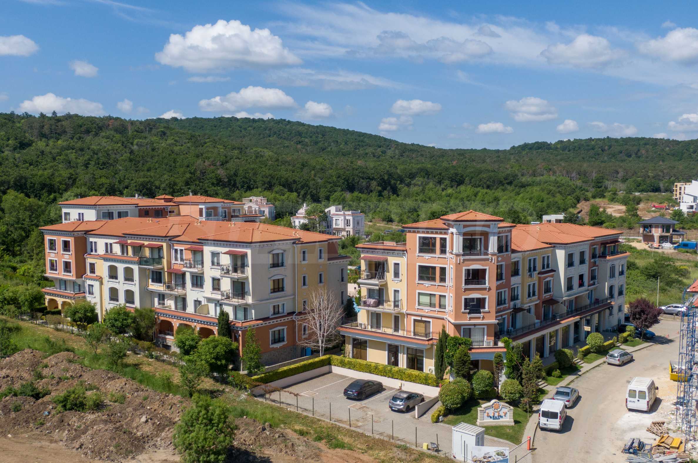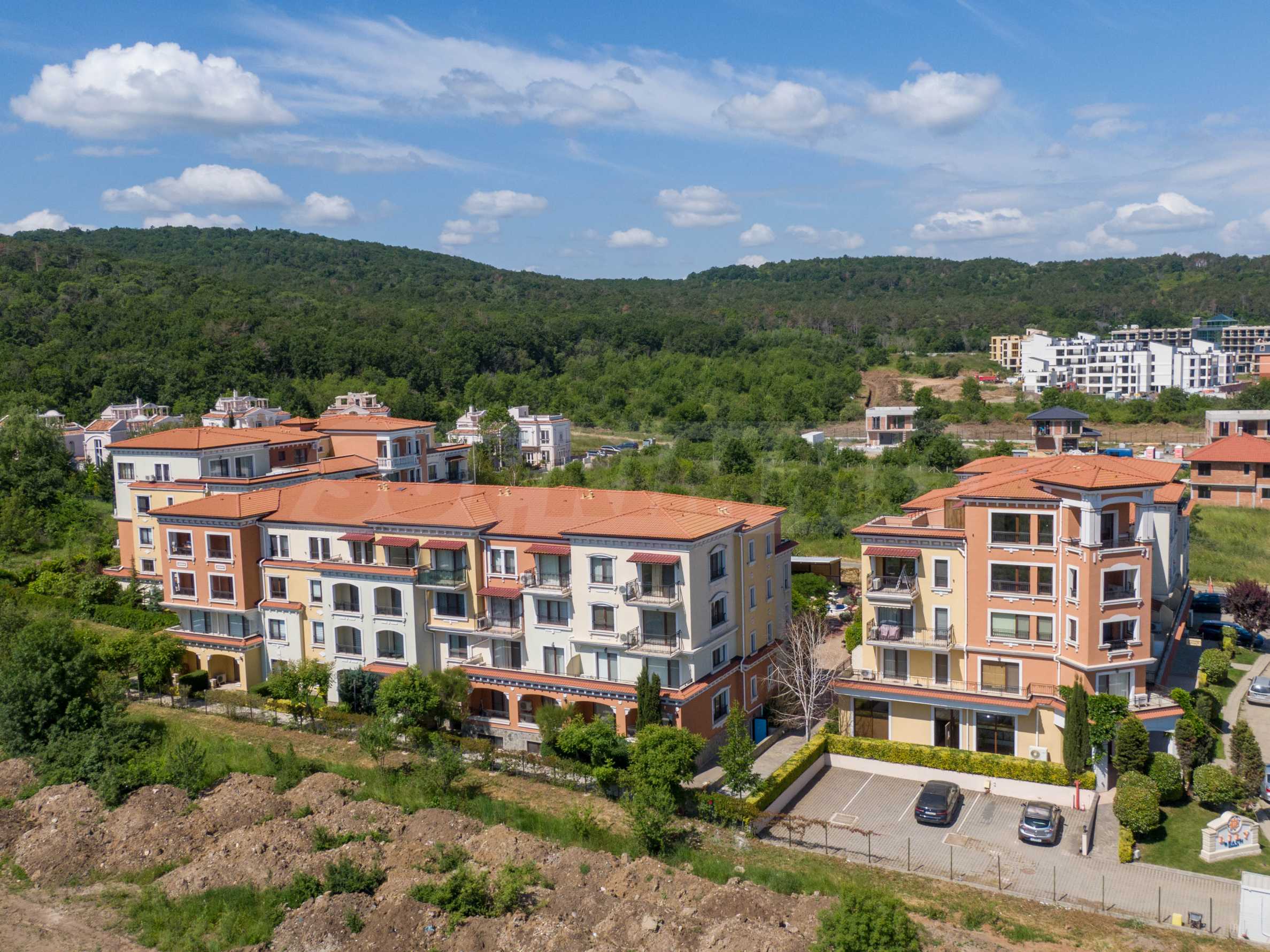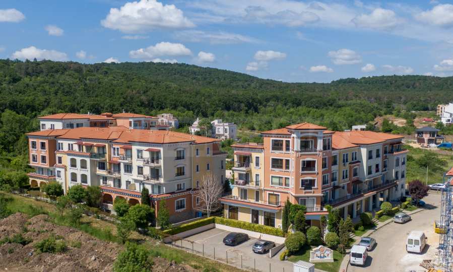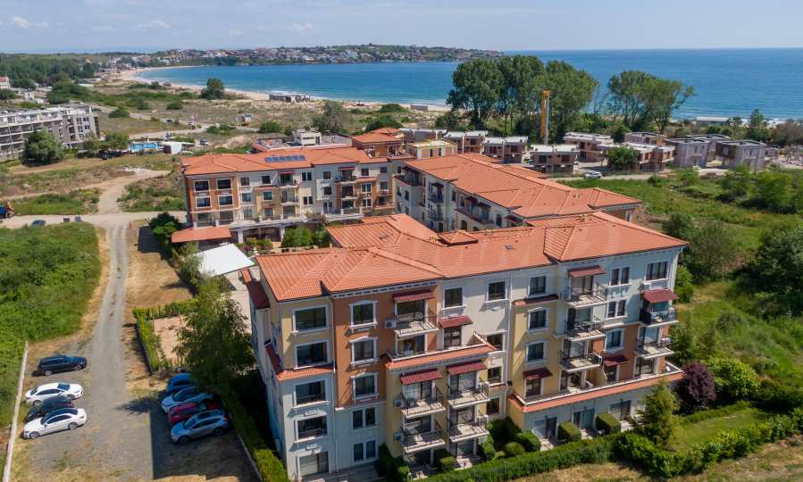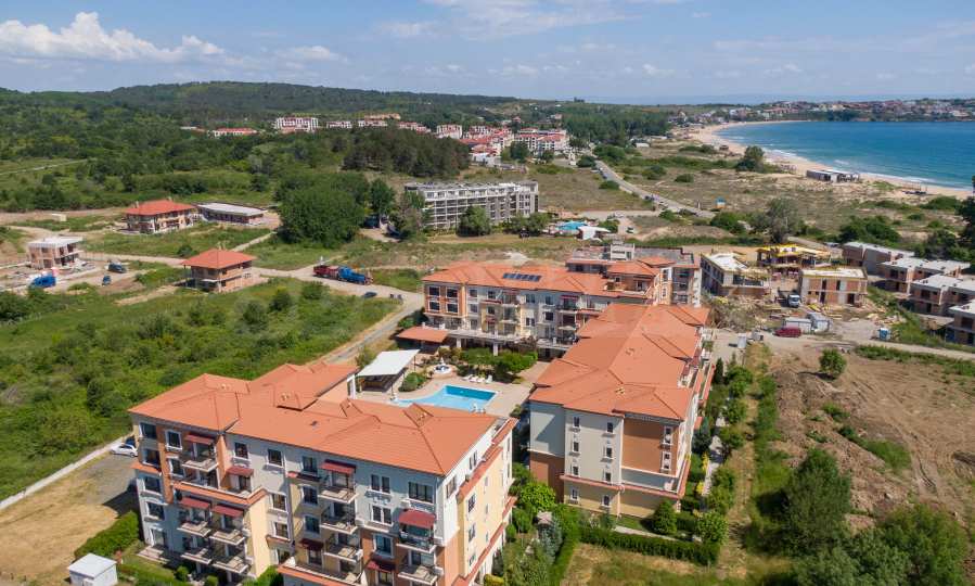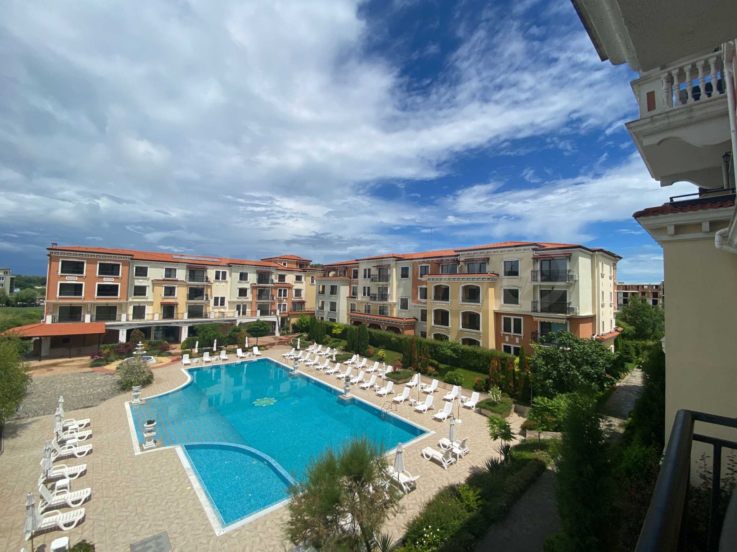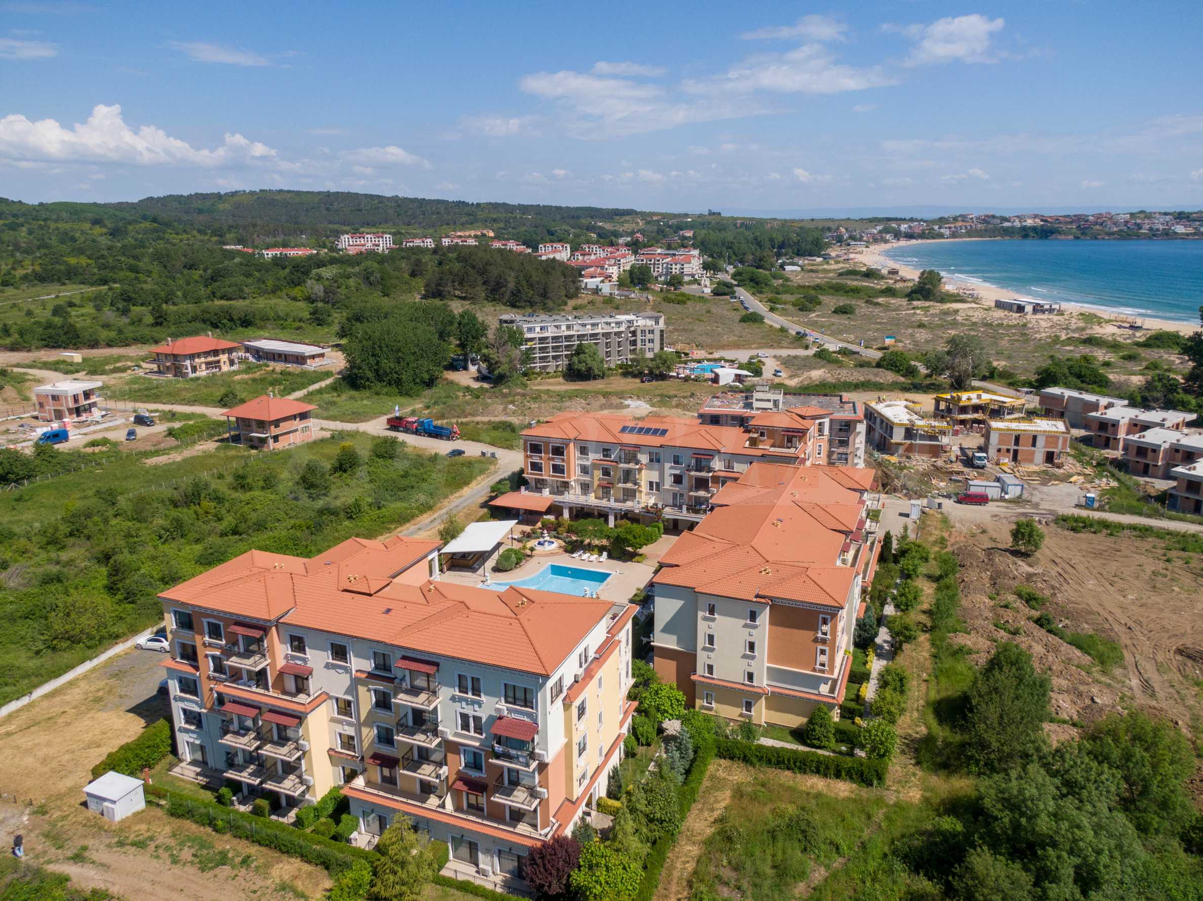 Wszystkie apartamenty w kompleksie mają inny widok na las, basen, wewnętrzną część kompleksu i morze.