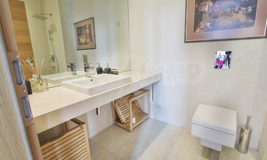 - Rozkład: Mieszkanie składa się z przedpokoju, korytarza, salonu z aneksem kuchennym, gabinetu lub strefy relaksu na drugim poziomie nad salonem, dwóch sypialni, łazienki z WC, toalety dla gości oraz przestronnego taras z niesamowitą panoramą;