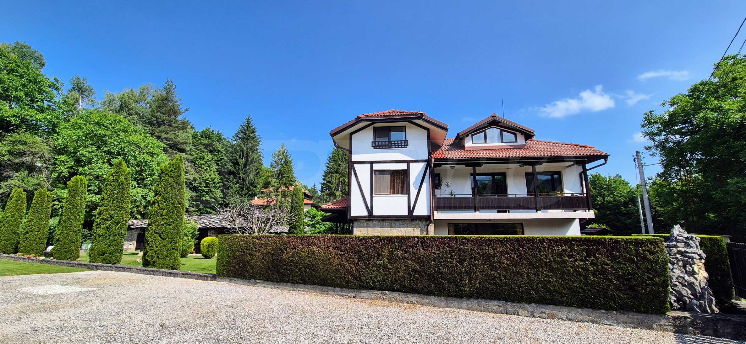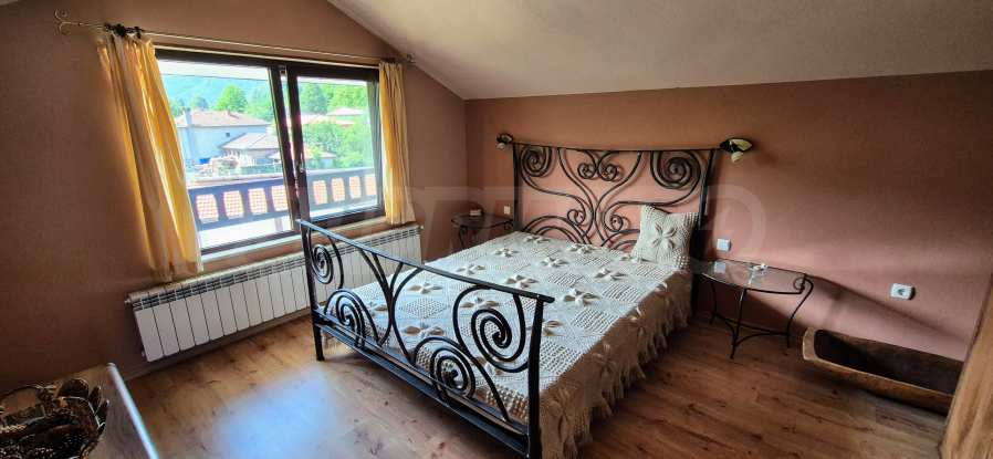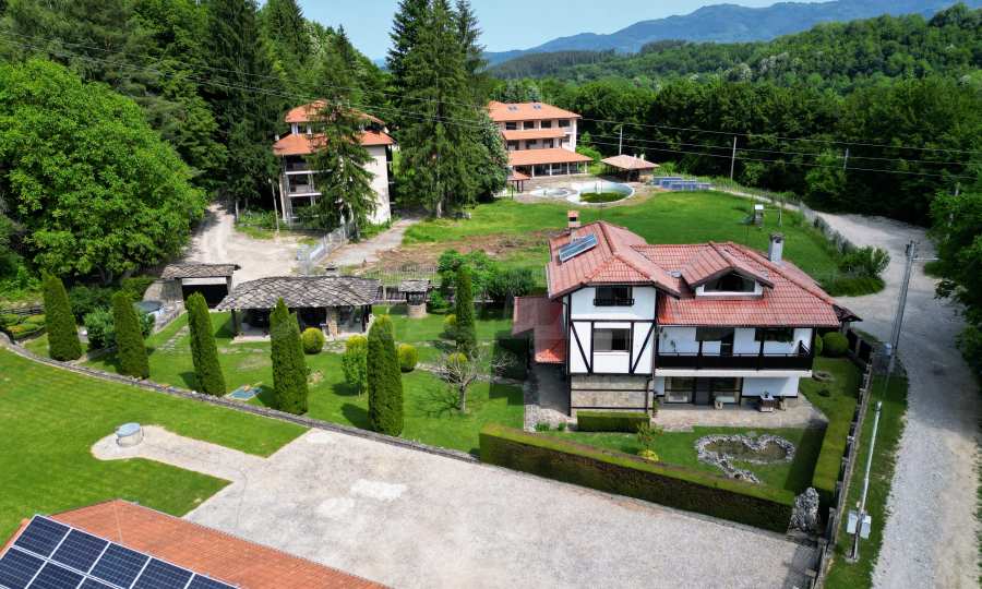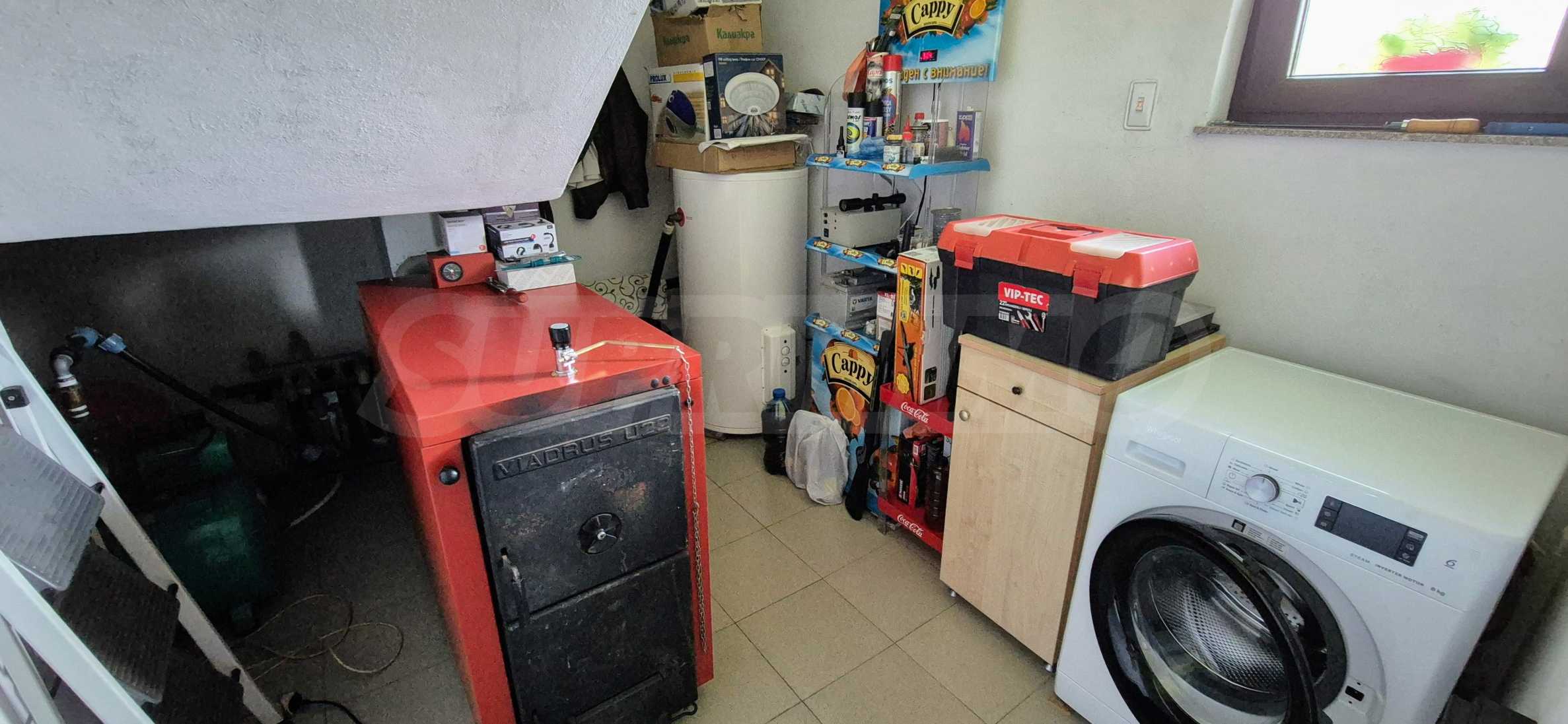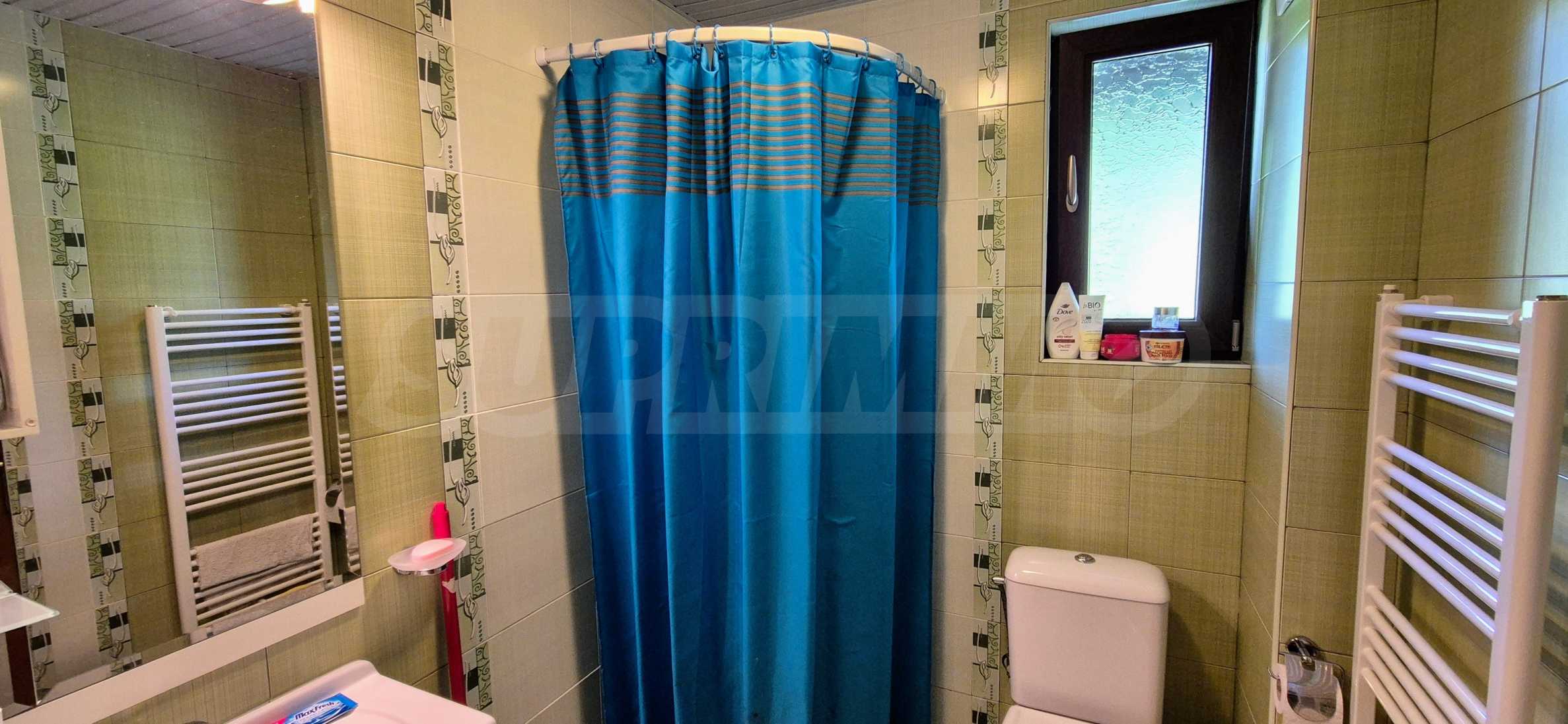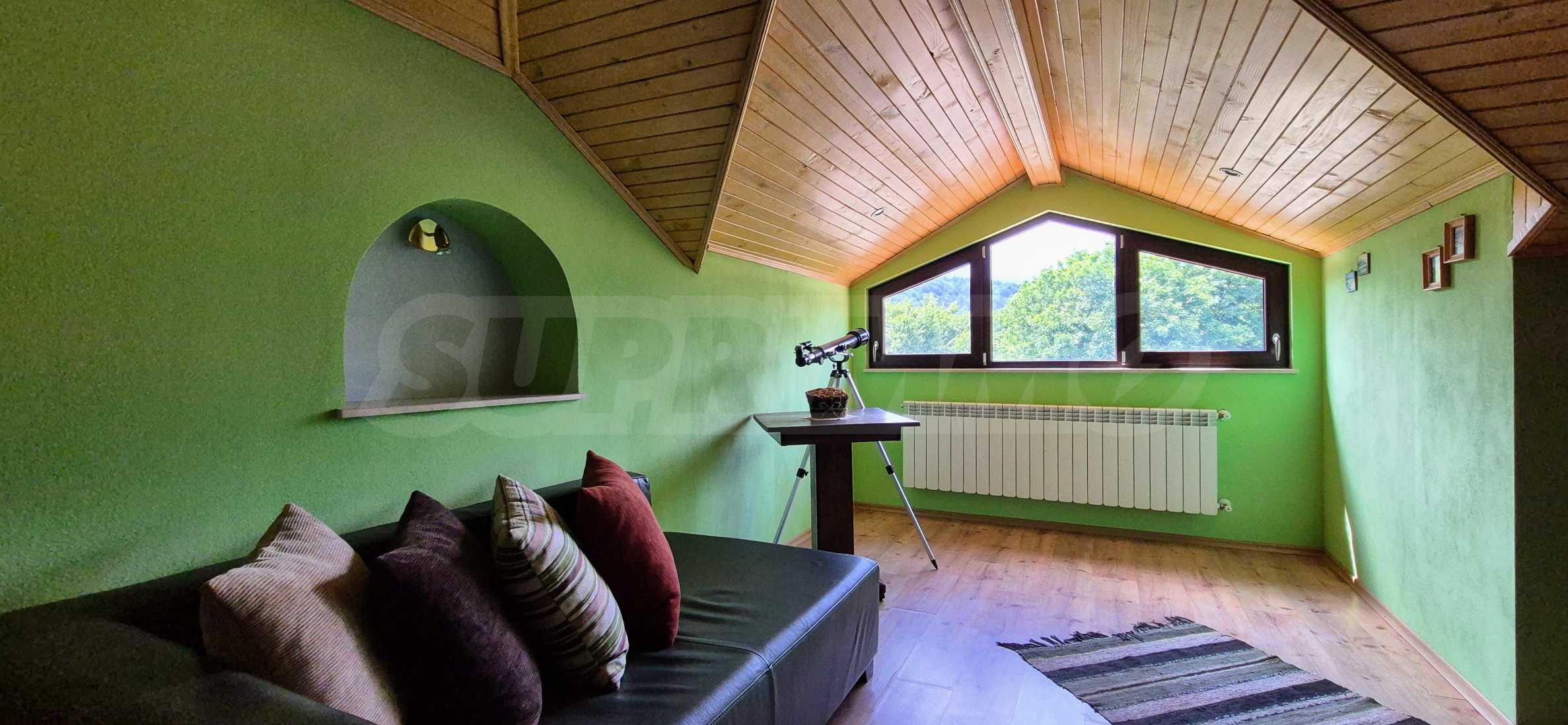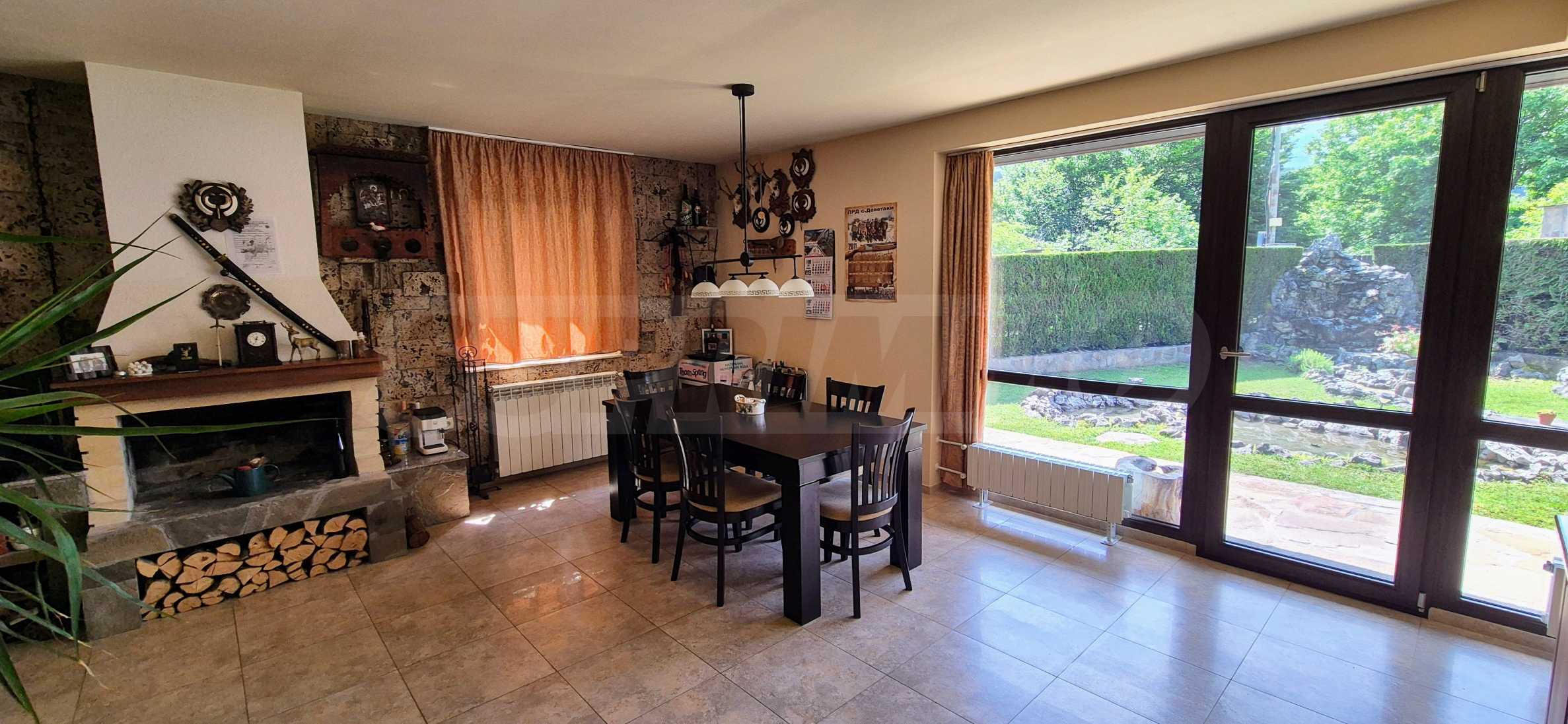Dom posiada przestronny salon z bezpośrednim wyjściem na podwórko, kominek, jadalnię i aneks kuchenny, toaletę, kotłownię, 3 sypialnie i 2 studia z 5 łazienkami i toaletami z naturalną wentylacją, 2 panoramiczne tarasy z niesamowity widok, klatka schodowa i granitowe platformy. W salonie i kotłowni płytki granitowe, w sypialniach parkiet laminowany. Do sprzedania z całym umeblowaniem.
