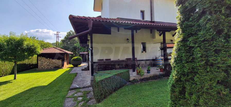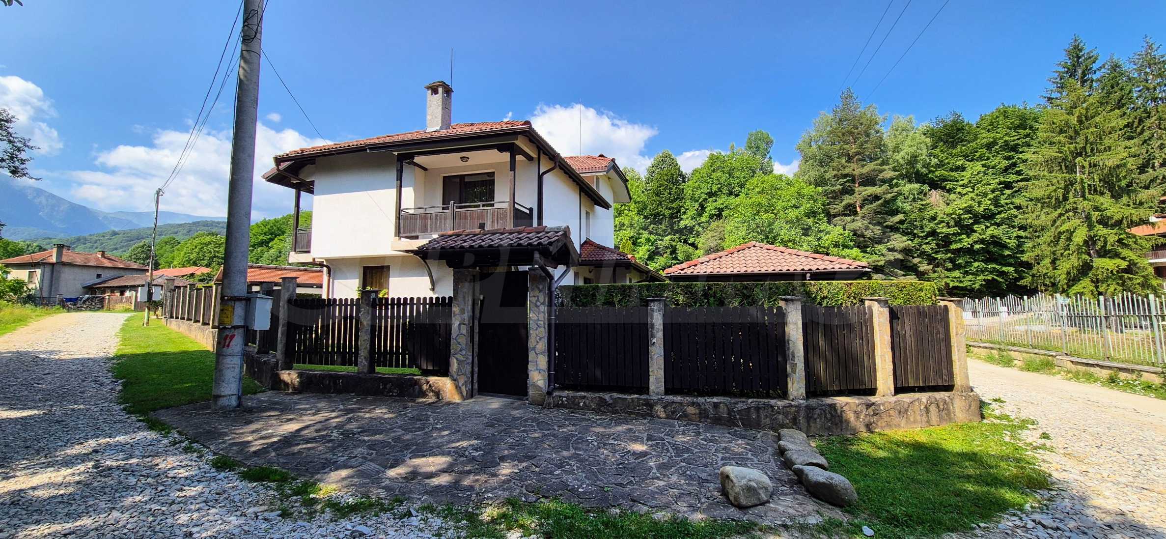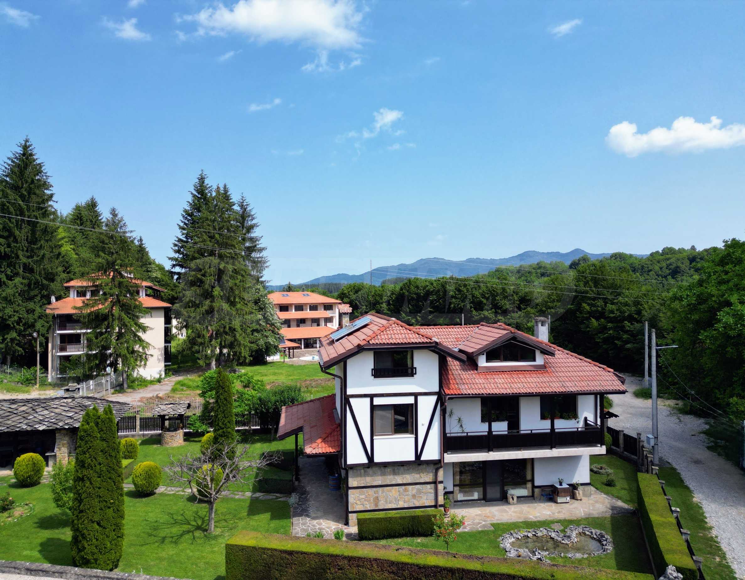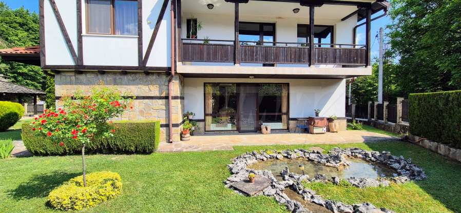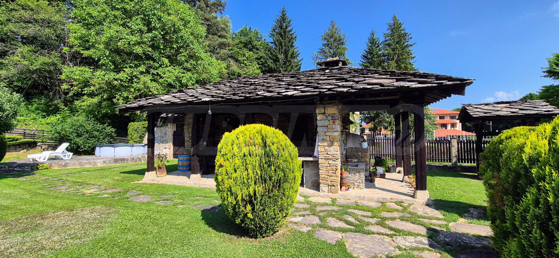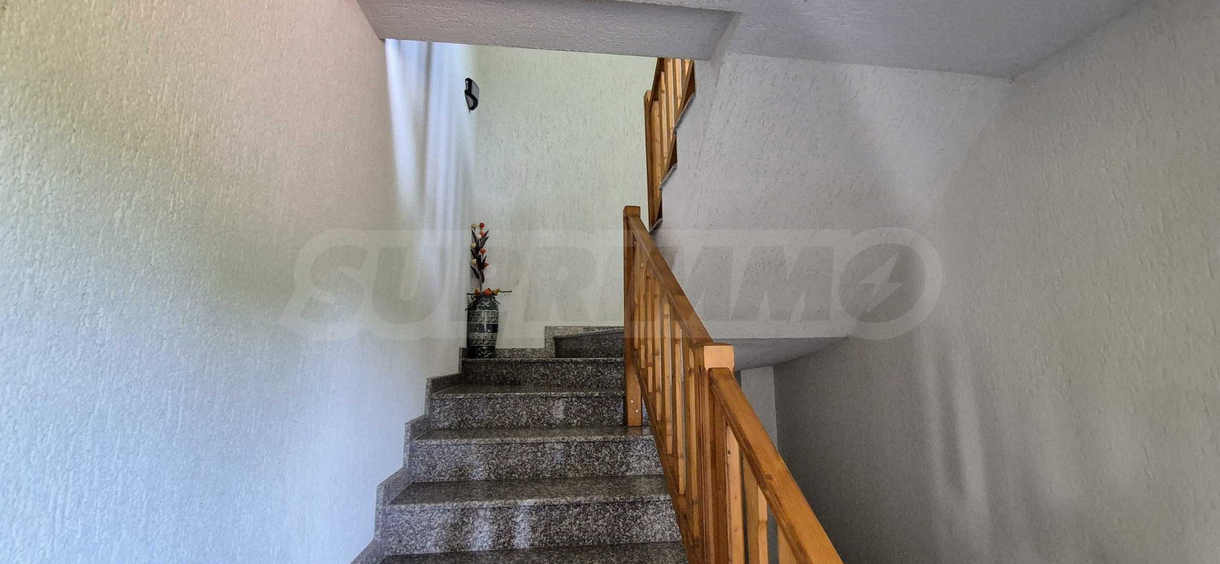 Dom posiada przestronny salon z bezpośrednim wyjściem na podwórko, kominek, jadalnię i aneks kuchenny, toaletę, kotłownię, 3 sypialnie i 2 studia z 5 łazienkami i toaletami z naturalną wentylacją, 2 panoramiczne tarasy z niesamowity widok, klatka schodowa i granitowe platformy. W salonie i kotłowni płytki granitowe, w sypialniach parkiet laminowany. Do sprzedania z całym umeblowaniem.