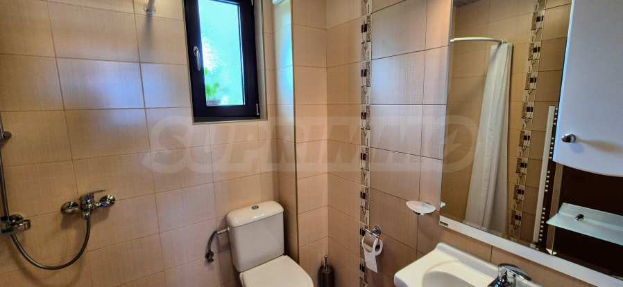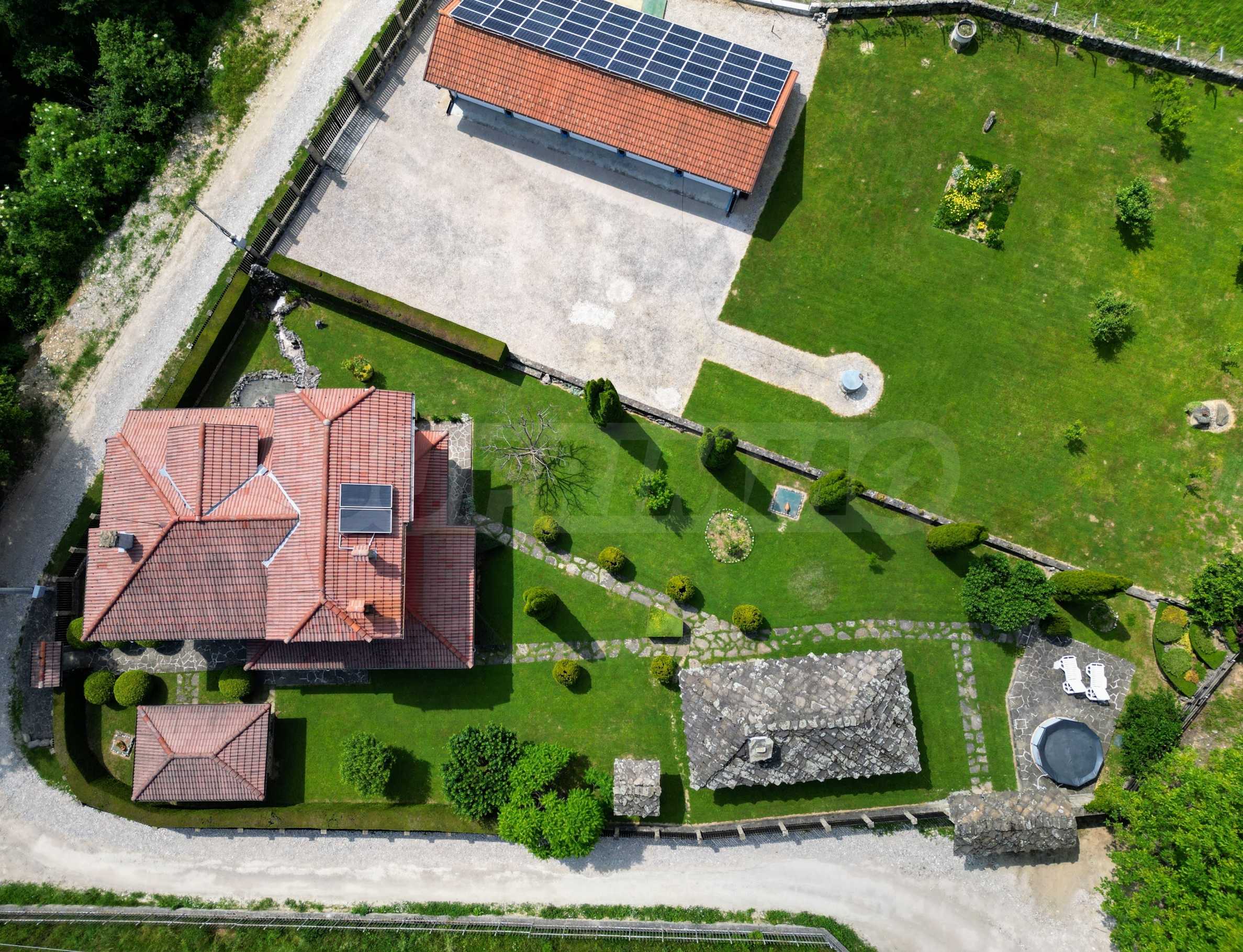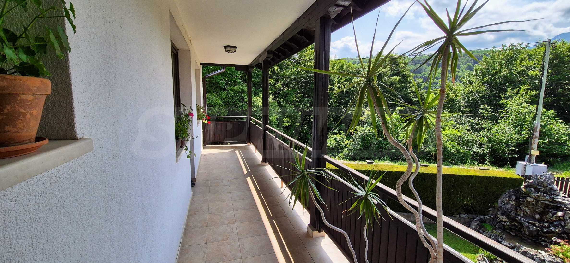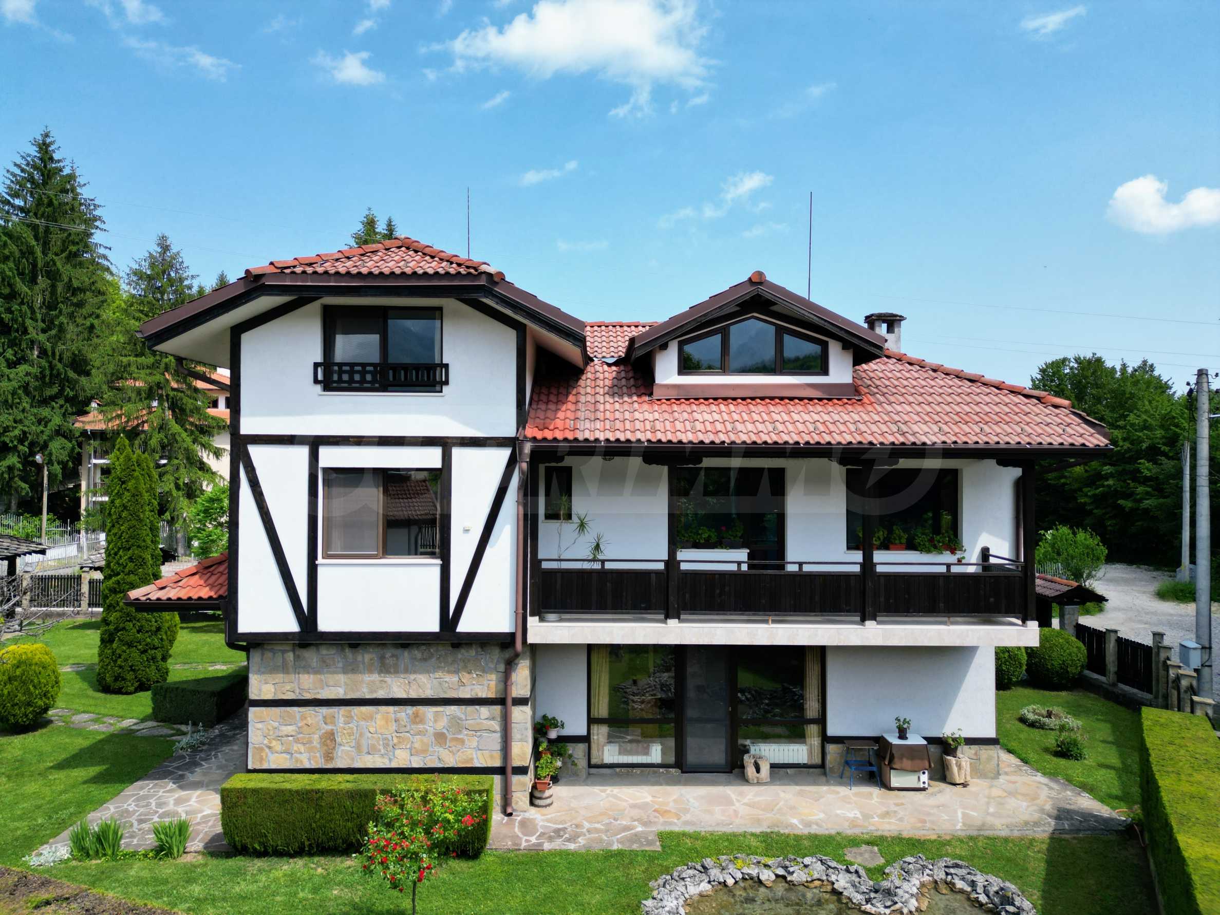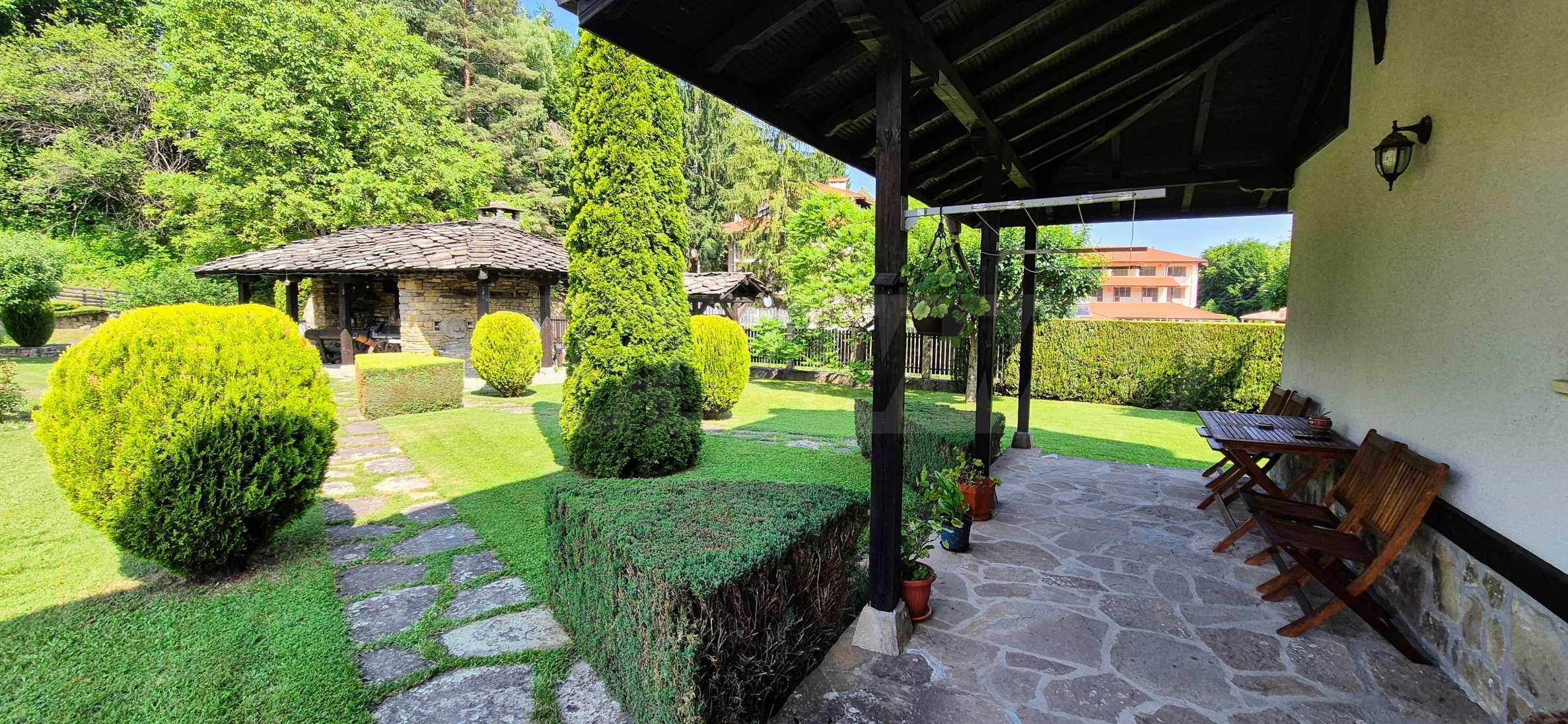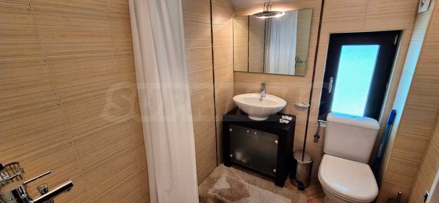 Dom posiada przestronny salon z bezpośrednim wyjściem na podwórko, kominek, jadalnię i aneks kuchenny, toaletę, kotłownię, 3 sypialnie i 2 studia z 5 łazienkami i toaletami z naturalną wentylacją, 2 panoramiczne tarasy z niesamowity widok, klatka schodowa i granitowe platformy. W salonie i kotłowni płytki granitowe, w sypialniach parkiet laminowany. Do sprzedania z całym umeblowaniem.