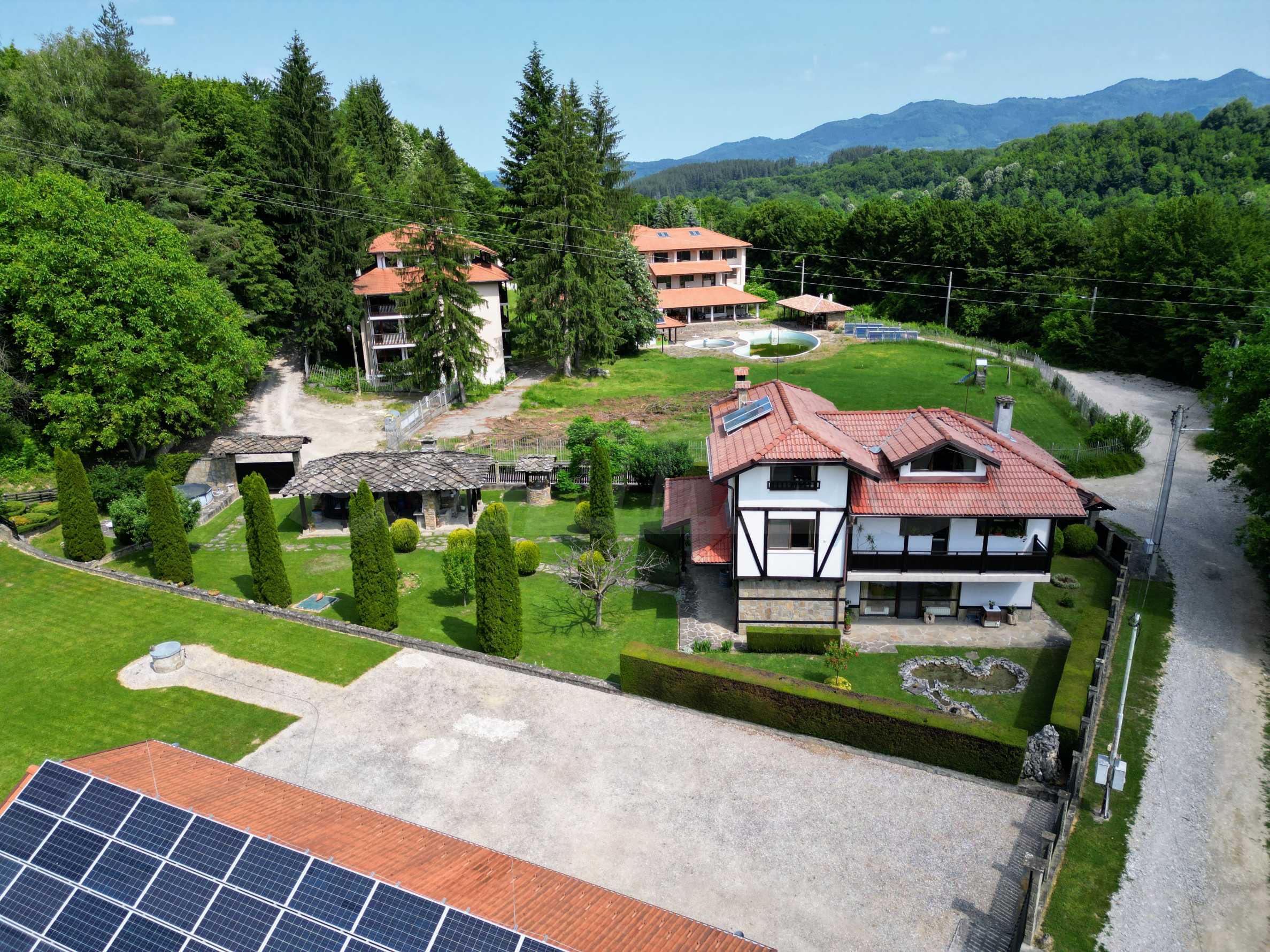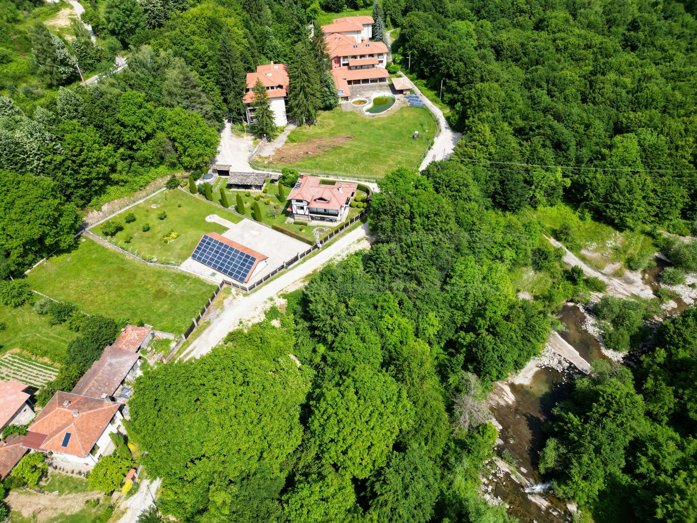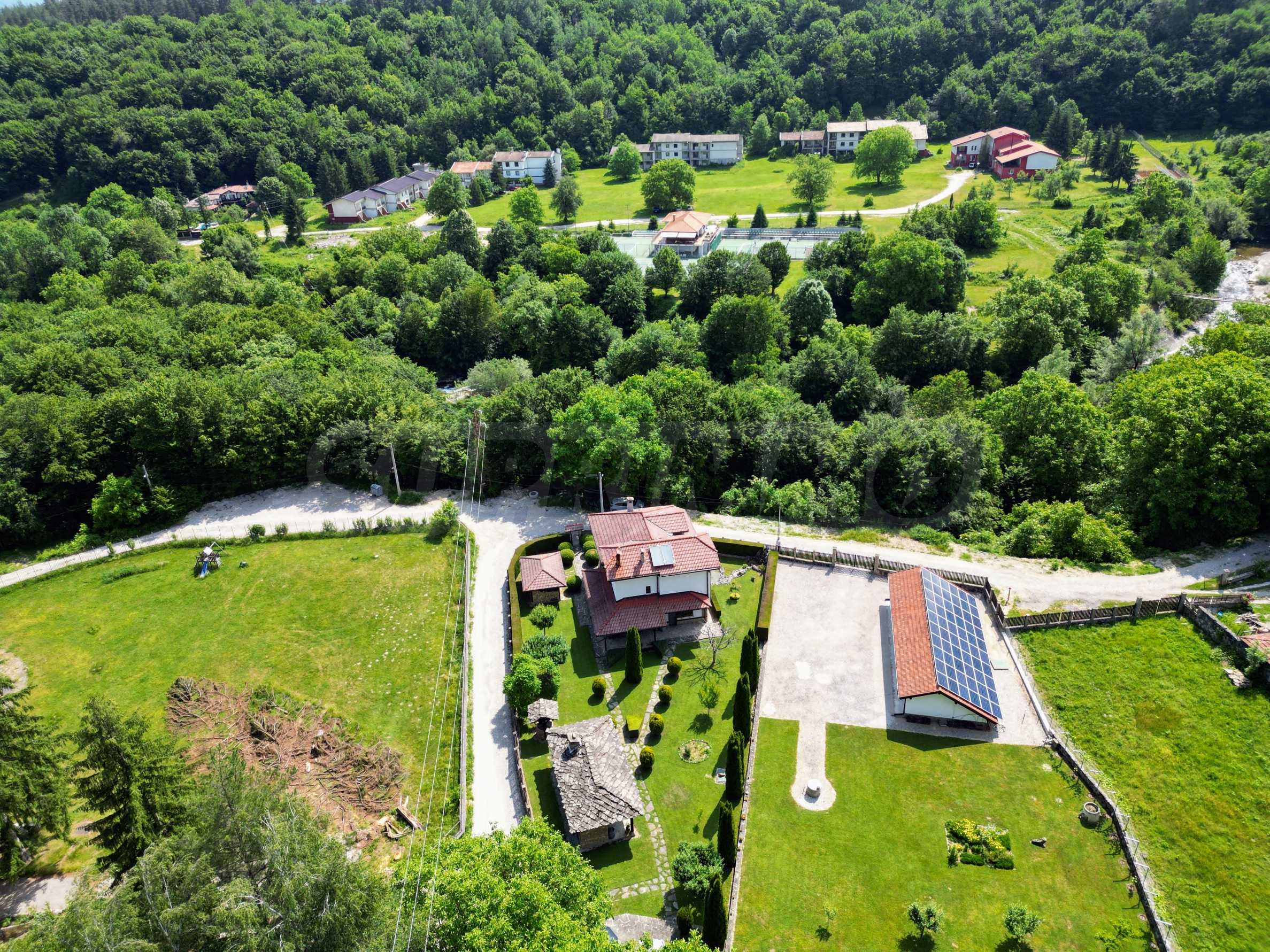 Zaprojektowany i zbudowany jako pensjonat. Nie jest zarejestrowany i obsługiwany jako taki. Dom jest zasilany z dwóch wodociągów, z których jeden jest główny. Kolektory słoneczne do ciepłej wody, ogrzewanie miejscowe na paliwa stałe z grzejnikami aluminiowymi. Izolacja zewnętrzna gr. 6 cm, stolarka PCV ze szkłem KA, tynk silikonowy.