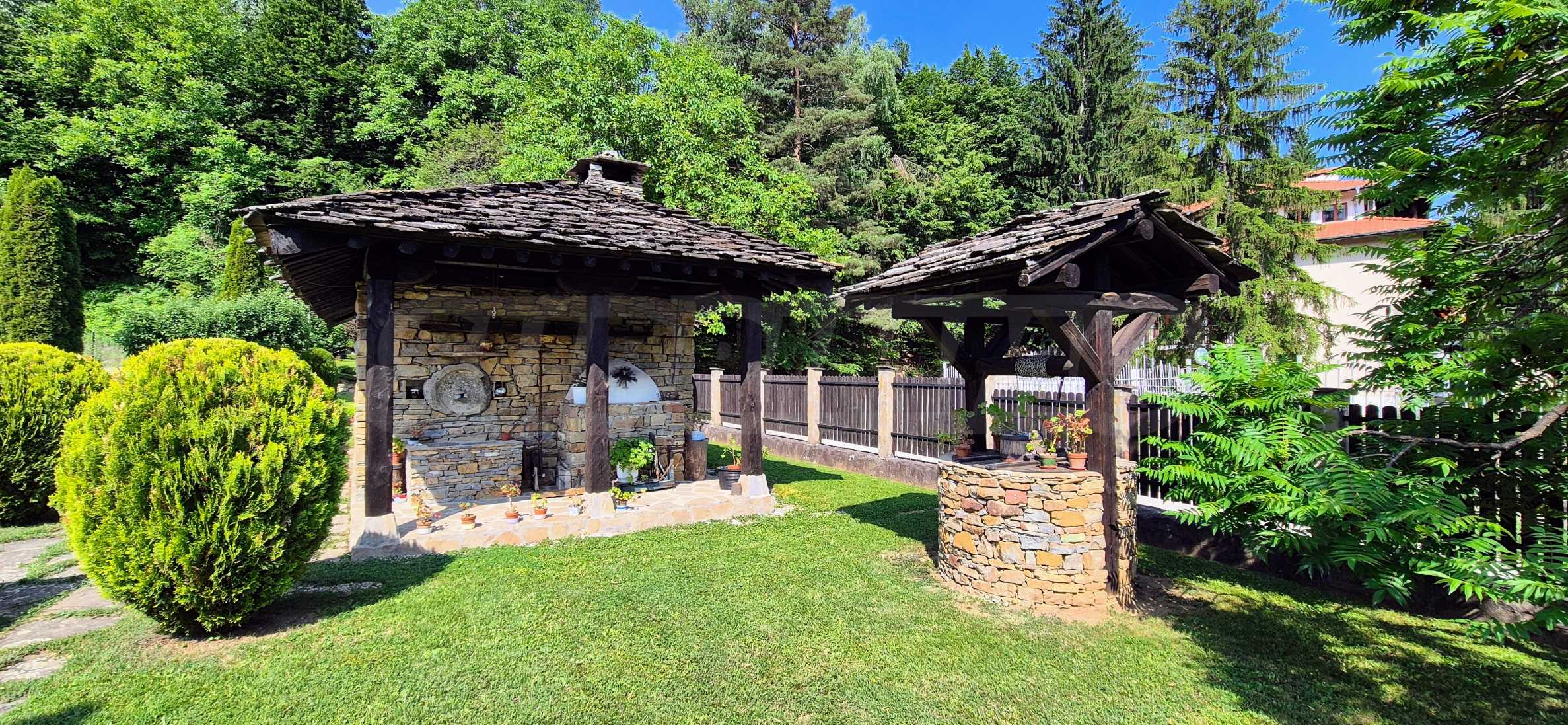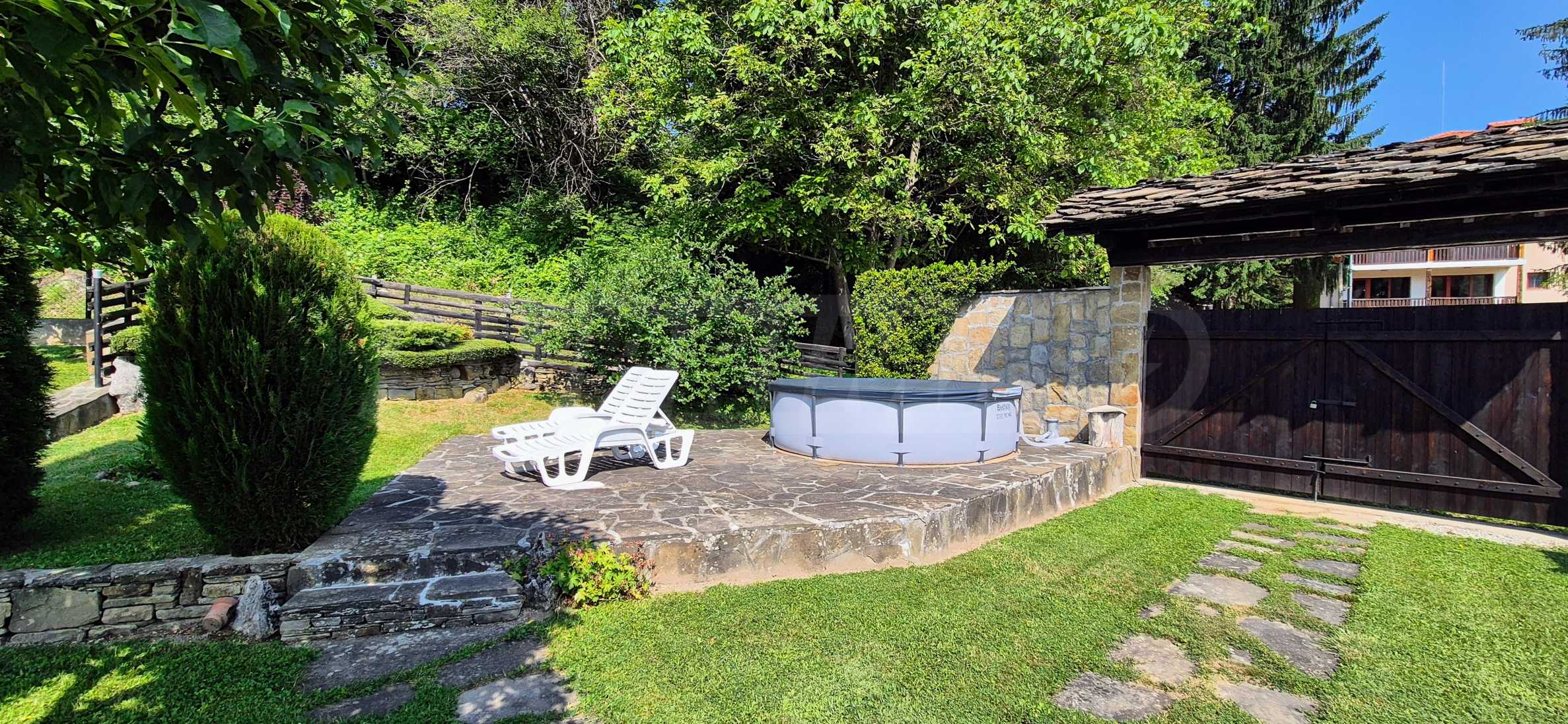 Na posesji znajduje się piękny grill 36m2 z piecem, budynek pomocniczy, suchy i ociekający ogród skalny, drzewa owocowe. Podwórko jest zagospodarowane i utrzymane. Pozwolenie na użytkowanie od 2010r. Na 30m. z posesji wypływa górska rzeka z naturalnymi basenami, zjeżdżalniami i plażami. Niesamowity widok gwarantowany na przyszłość.