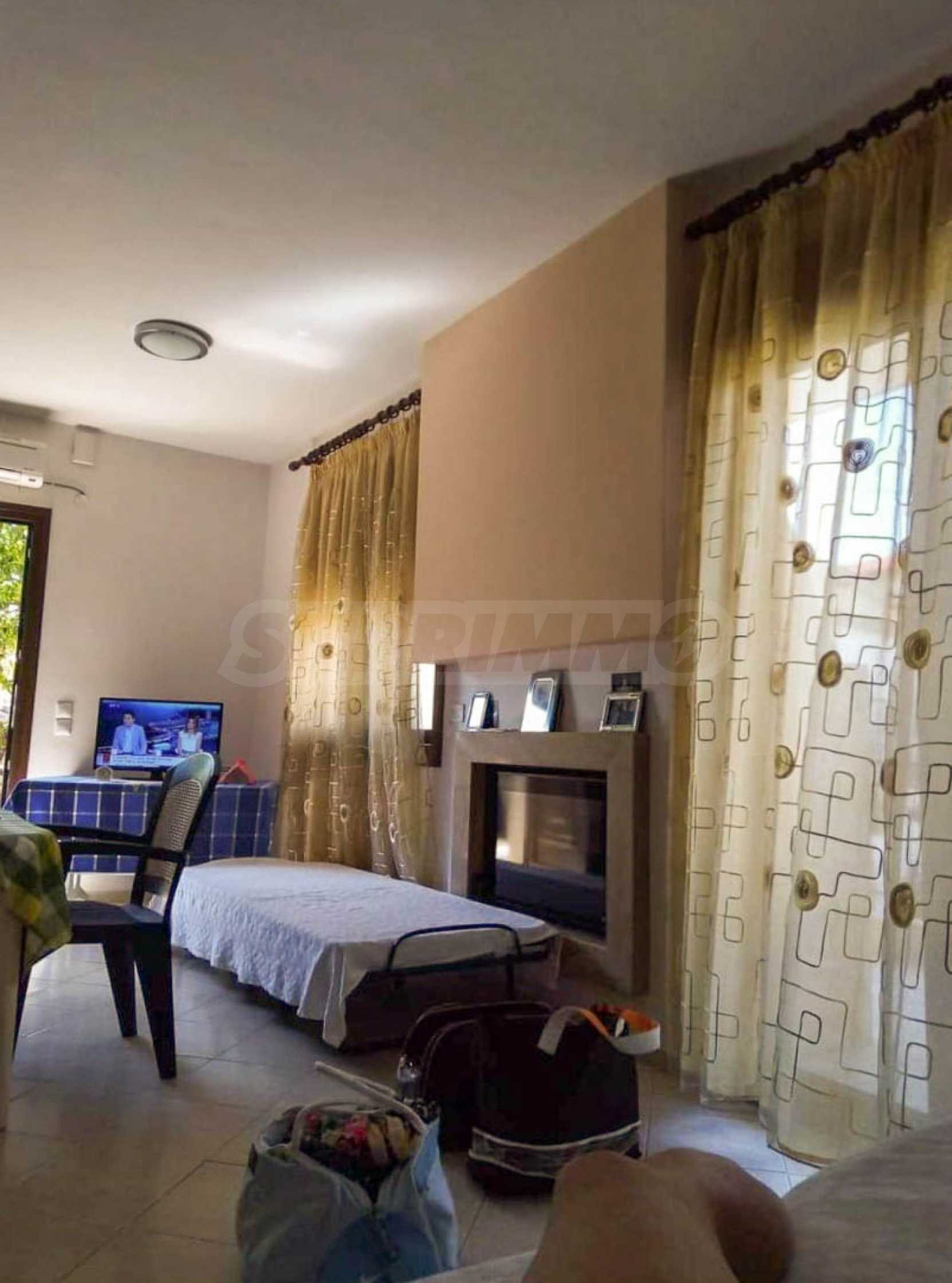 Dwupoziomowy apartament dwupoziomowy o powierzchni 78 m2 na Kassandrze na Półwyspie Chalcydyckim, z orientacją południowo-zachodnią i niezakłóconym stałym widokiem. Nieruchomość ma 150m. od plaży i 100 m od centrum miejscowości. Parter podzielony jest na dwa poziomy, składający się z salonu połączonego z kuchnią, dwóch sypialni, jednej łazienki i toalety. Nieruchomość posiada również duże tarasy, aluminiowe okna, drzwi pancerne oraz podłogi wyłożone kafelkami. Dwupoziomowy został wybudowany w 2013 roku.