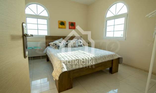 Odnowiony dom wolnostojący o powierzchni 200 m2 na Kassandrze na Półwyspie Chalcydyckim z niezakłóconym stałym widokiem na morze i orientacją wschodnią. Nieruchomość otoczona jest ogrodem o powierzchni 4000 m2. Dwupoziomowy apartament podzielony jest na trzy poziomy i składa się z salonu połączonego z kuchnią, czterech sypialni, jednej łazienki, jednej toalety i pomieszczenia gospodarczego. Nieruchomość posiada również duże balkony, okna PCV, podłogi wyłożone kafelkami, drzwi pancerne oraz ogrzewanie.
