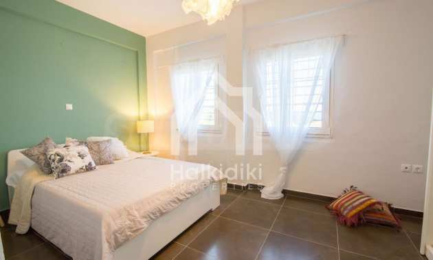 Odnowiony dom wolnostojący o powierzchni 200 m2 na Kassandrze na Półwyspie Chalcydyckim z niezakłóconym stałym widokiem na morze i orientacją wschodnią. Nieruchomość otoczona jest ogrodem o powierzchni 4000 m2. Dwupoziomowy apartament podzielony jest na trzy poziomy i składa się z salonu połączonego z kuchnią, czterech sypialni, jednej łazienki, jednej toalety i pomieszczenia gospodarczego. Nieruchomość posiada również duże balkony, okna PCV, podłogi wyłożone kafelkami, drzwi pancerne oraz ogrzewanie.
