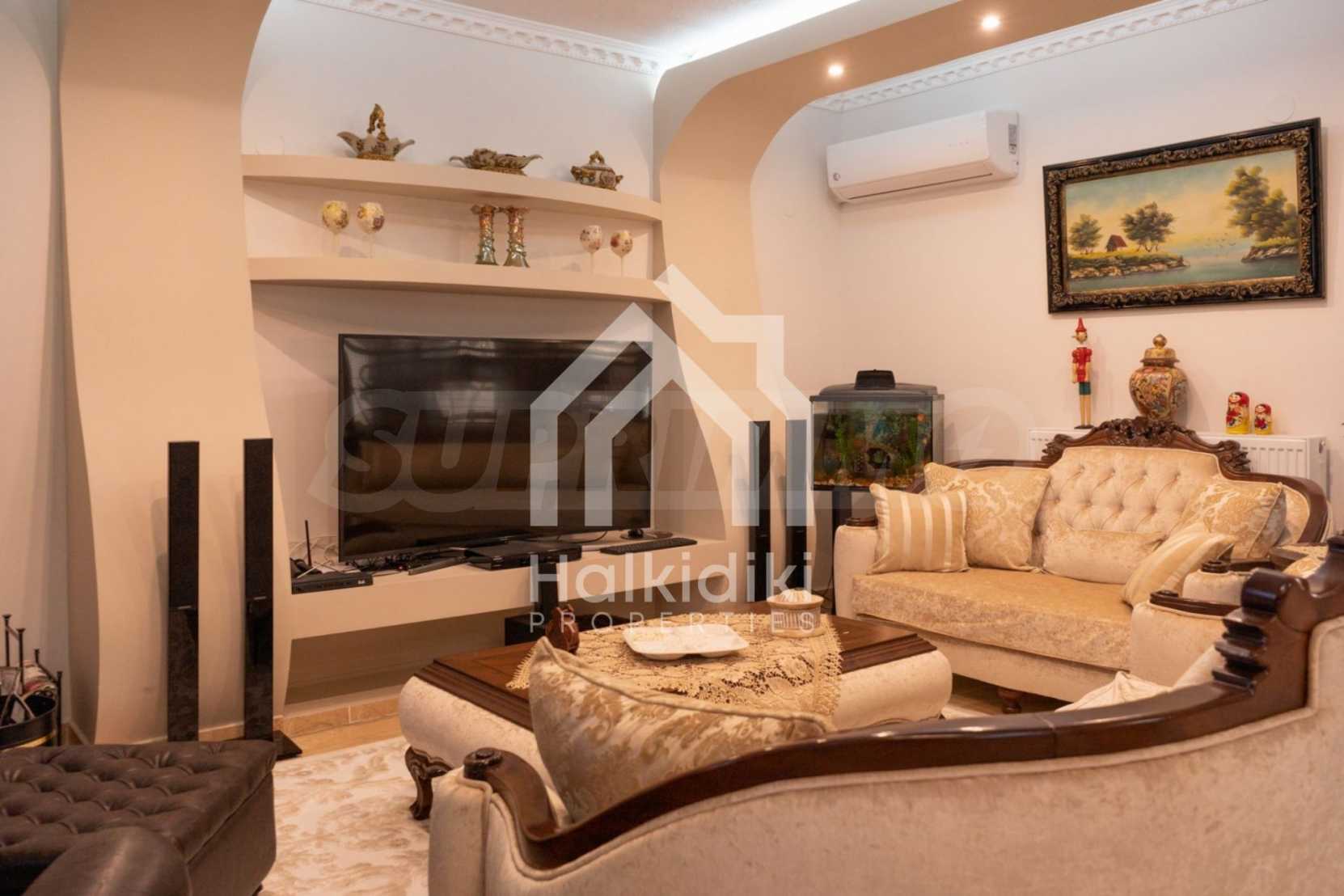Wolnostojąca willa o powierzchni 260 m2 na Kassandrze na Półwyspie Chalcydyckim z prywatnym ogrodem o powierzchni 650 m2 i niezakłóconym stałym widokiem na morze i zatokę Toronaios. Obiekt oddalony jest o 2,5 km. od plaży i centrum miejscowości. Dwupoziomowy apartament podzielony jest na trzy poziomy i składa się z dwóch salonów, pokoju dziecięcego, kuchni, czterech sypialni, trzech łazienek i dwóch pomieszczeń do przechowywania. Nieruchomość posiada również duże tarasy, okna aluminiowe, altanę, drzwi pancerne, grill, szafy wnękowe oraz kuchnię. Willa jest w pełni wyposażona i umeblowana.