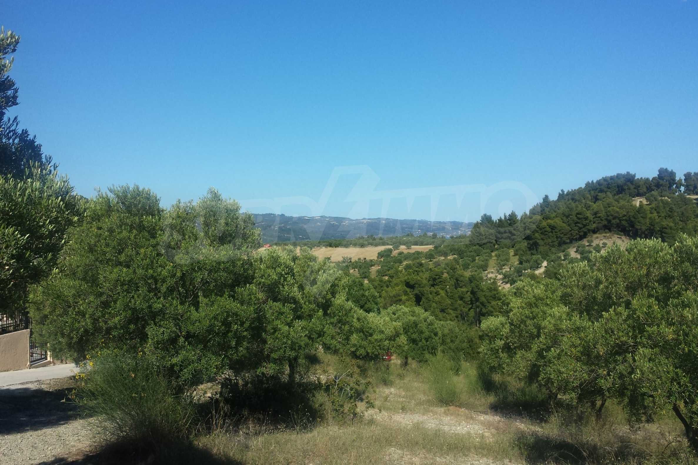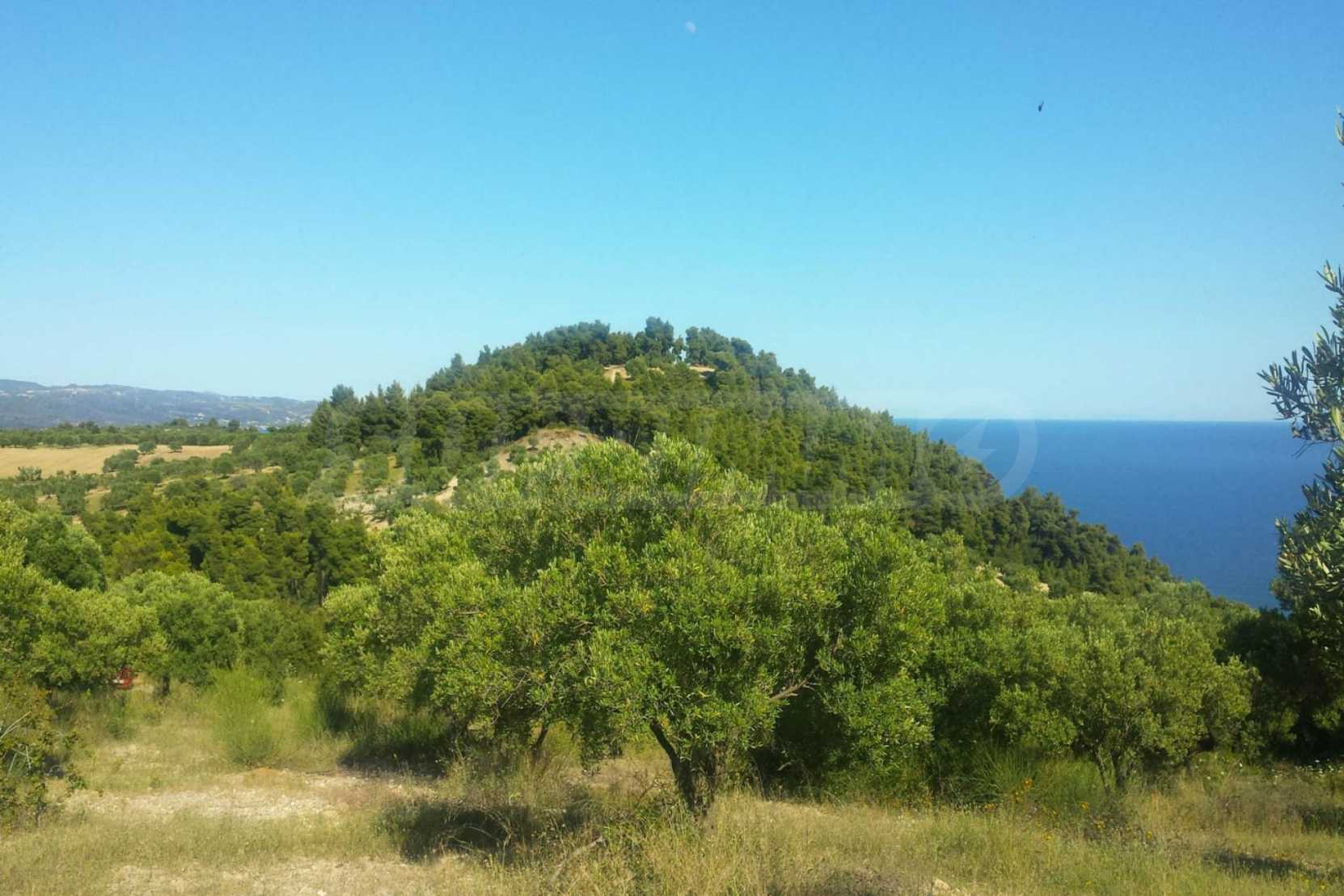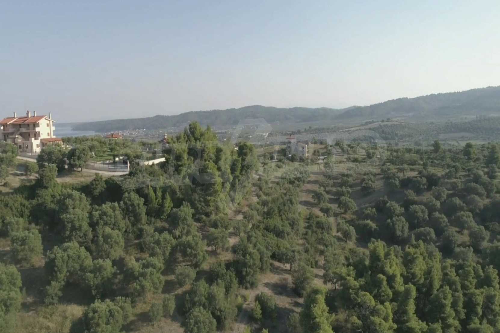 Doskonałe, panoramiczne pole, 9427 m2 na Kassandrze na Półwyspie Chalcydyckim. Ma dużą otwartą przestrzeń, jest amfiteatrem i ma niezakłócony widok na góry i morze. Znajduje się poza miejscowością, zaledwie 450 metrów od plaży i 700 metrów od centrum miejscowości. Jest również kompletny, można go zbudować i doskonale nadaje się do użytku profesjonalnego oraz do budowy domku. Ponadto pole ma wewnątrz duży gaj oliwny.