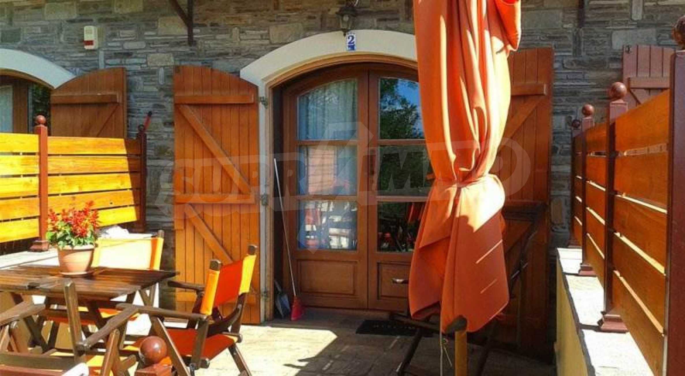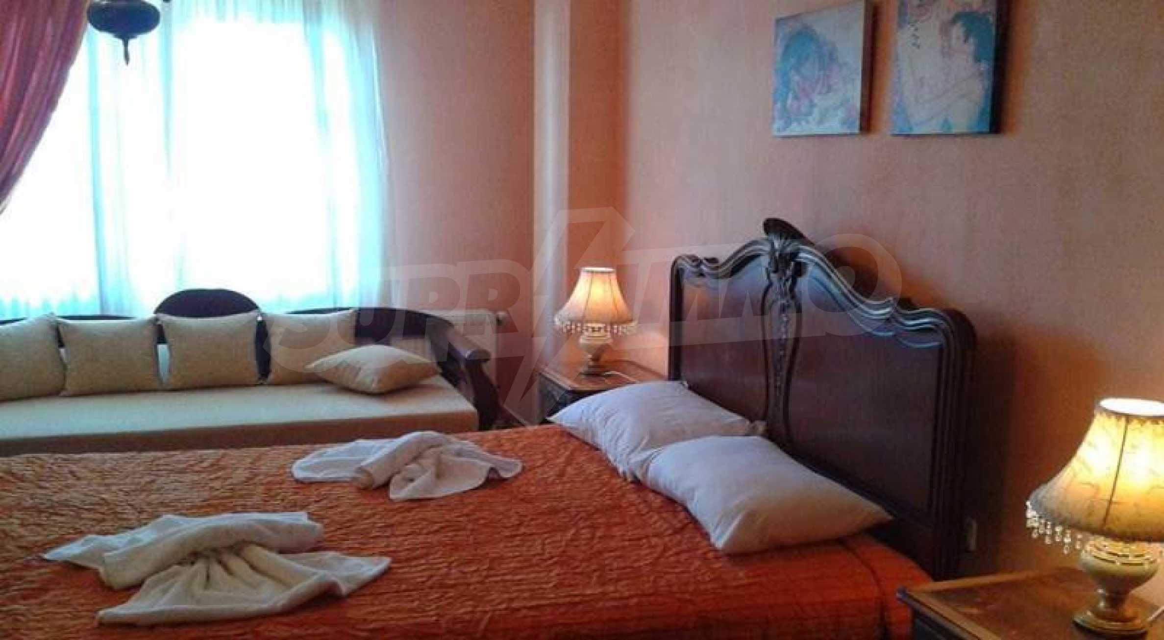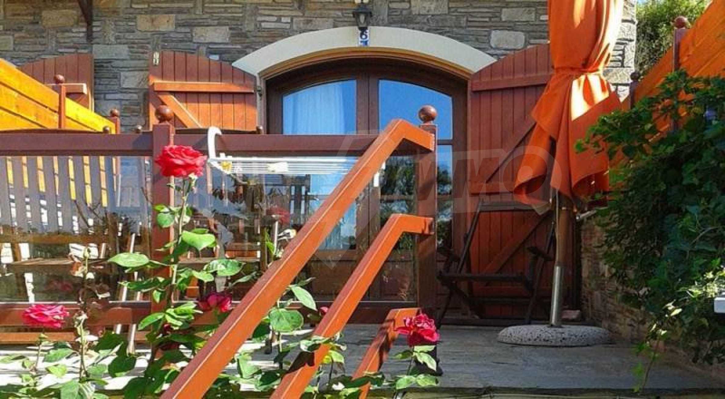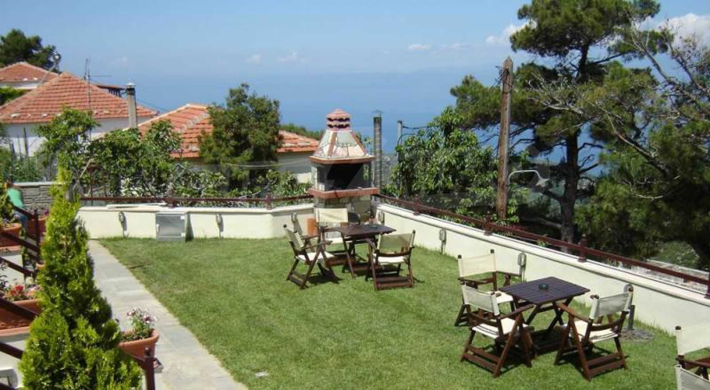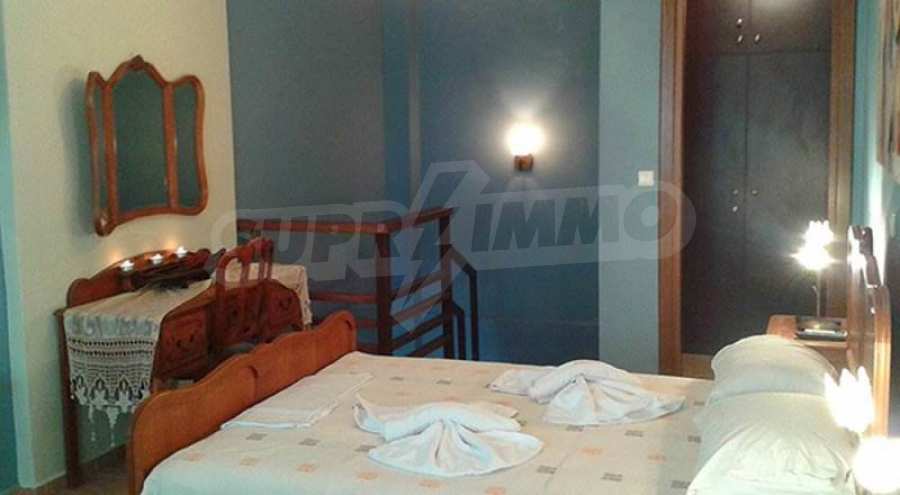 Tradycyjny pensjonat o powierzchni 380 mkw. z działką o powierzchni 422 mkw. oraz garaż 90 mkw. w Sotirze na Thassos. Doskonała propozycja inwestycyjna w nieruchomości, ponieważ może pełnić funkcję zarówno firmy, jak i stałego domu rodzinnego. Składa się z 4 apartamentów dwupoziomowych o powierzchni 58 m2, idealnych na przyjęcie dla trzech osób oraz 2 apartamentów dwupoziomowych o powierzchni 62 m2. idealny dla czterech osób. Jego lokalizacja łączy w sobie bujną zieleń krajobrazu z widokiem na błękitne morze. Dwupoziomowe apartamenty składają się zw pełni wyposażonej kuchni, klimatyzacji, centralnego ogrzewania, telewizora LCD (na obu piętrach), odtwarzacza DVD, sejfu i prywatnego balkonu o powierzchni 12 metrów kwadratowych. Z panoramicznym widokiem na Morze Egejskie. Elementy kamienia i drewna we wnętrzu i na zewnątrz budynku harmonijnie łączą się, emanując odrobiną szlachetności i przystępnego cenowo luksusu. Na podwórku znajduje się grill. W skład hostelu wchodzi dodatkowa recepcja, łaźnia parowa, sauna, pomieszczenie gospodarcze oraz kuchnia usytuowana w piwnicy.