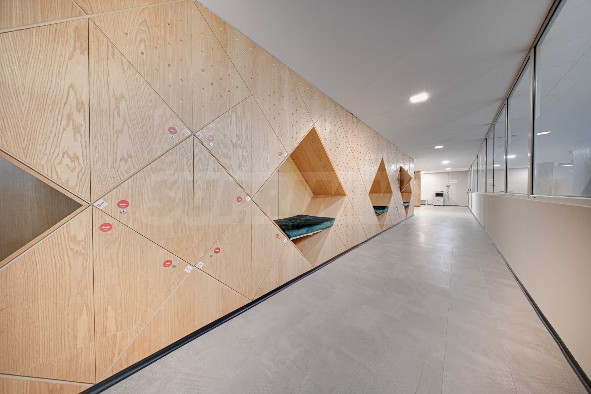 - Główna sala z pokojami roboczymi;