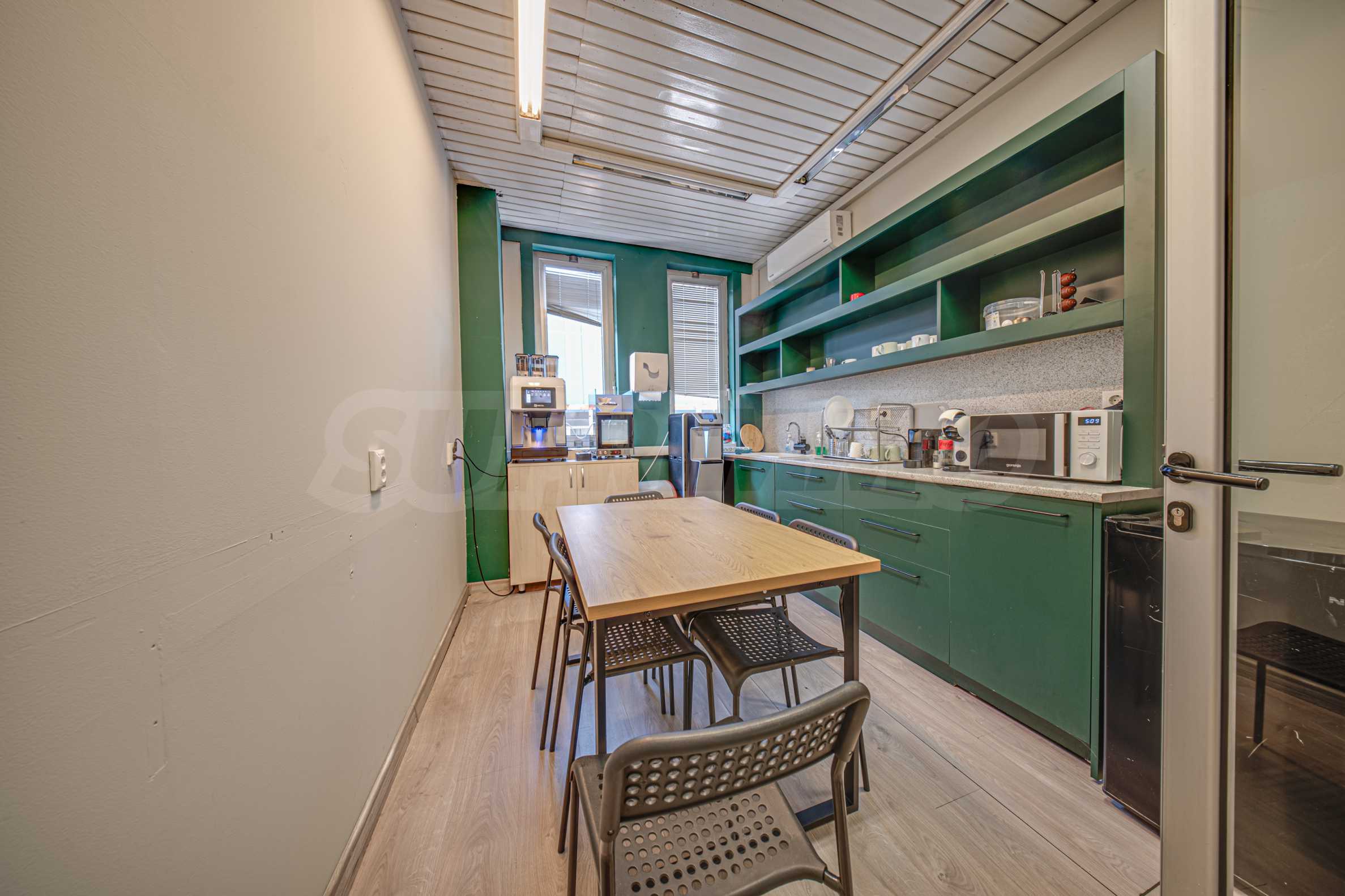 Piętro budynku biurowego z możliwością utworzenia około 80 miejsc pracy. Budynek znajduje się przy ulicy Tintyava w dzielnicy Izgrev i posiada pozwolenie na użytkowanie od 2003 roku. Lokalizacja jest dogodna pod względem komunikacyjnym, ponieważ w pobliżu znajduje się stacja metra „Joliot Curie”, skąd można szybko i wygodnie dojechać do ważnych punktów stolicy.