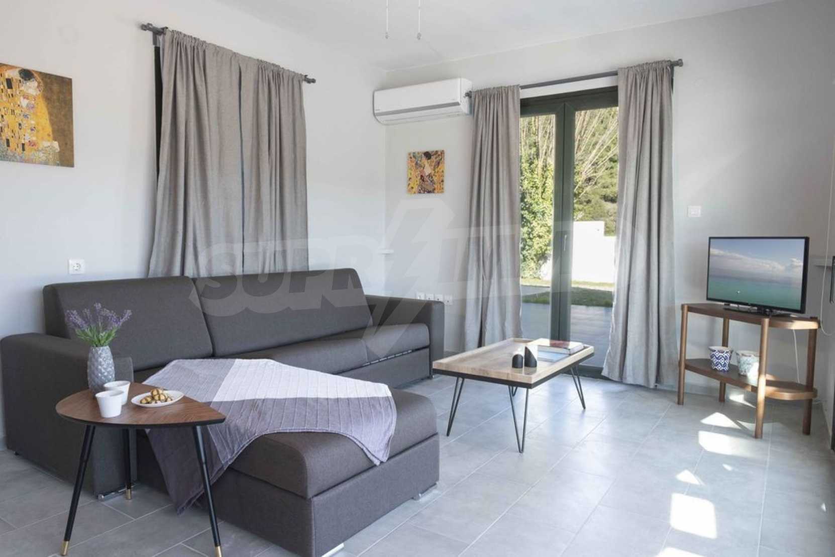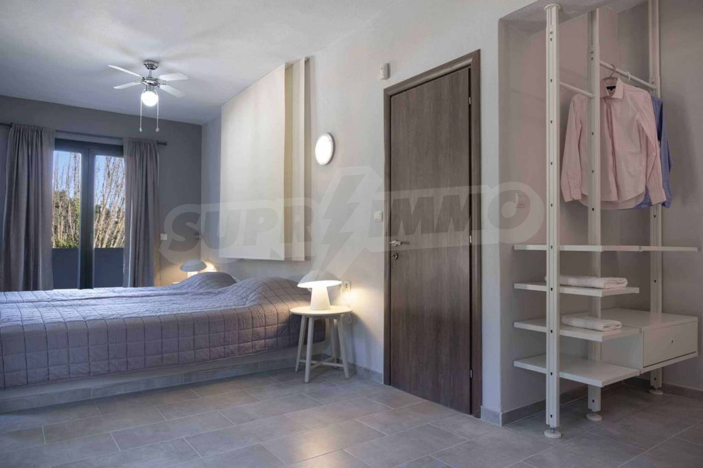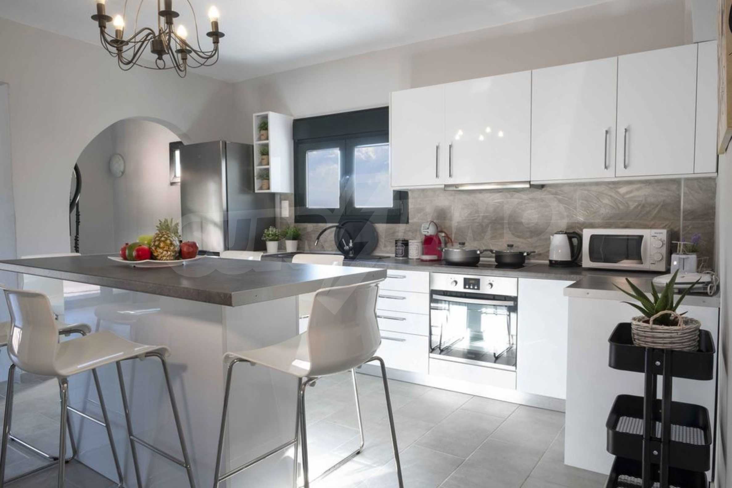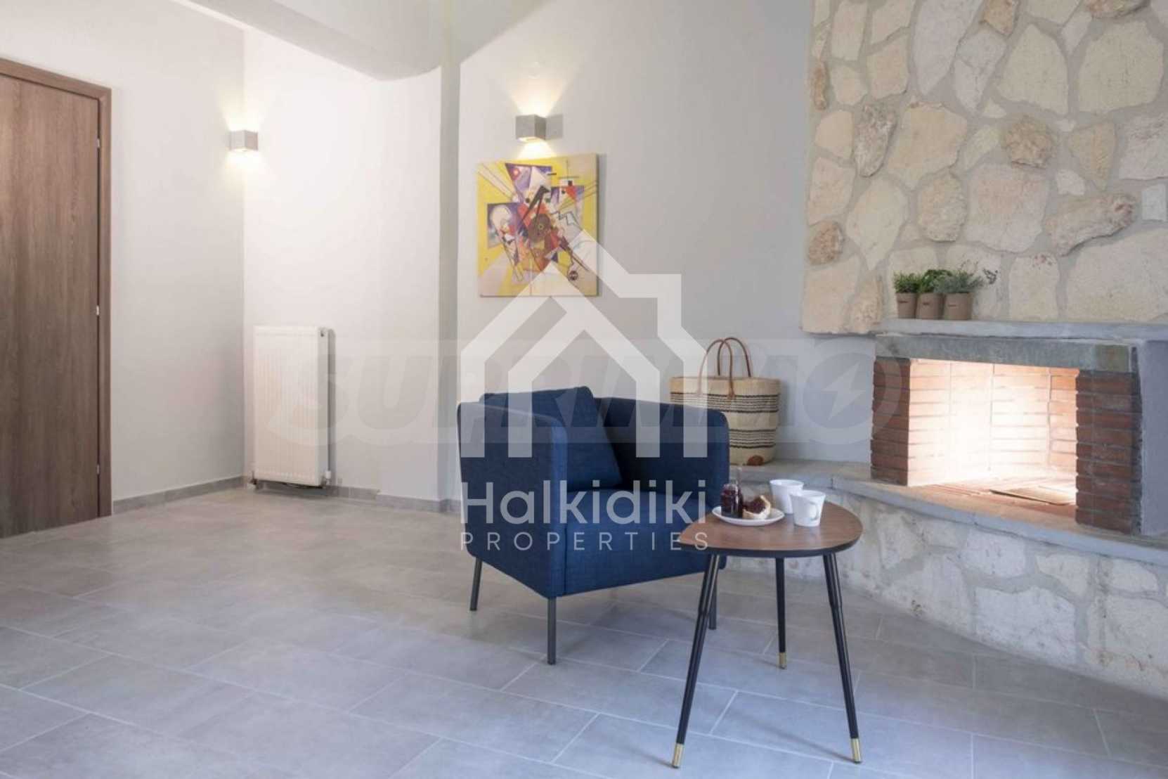 Luksusowa willa o powierzchni 220 m2 na Kasandrze na Półwyspie Chalcydyckim, w sosnowej okolicy, pięć minut od plaży. Podzielone jest na dwa poziomy, składające się z salonu połączonego z kuchnią, czterech sypialni, trzech łazienek oraz garderoby. Posiada ogród o powierzchni 5000 m2 z automatycznym nawadnianiem, aluminiową stolarką, kotłownią, pawilonem, odkrytym basenem i anteną satelitarną. Nieruchomość idealnie nadaje się pod inwestycję, jest w pełni umeblowana.
