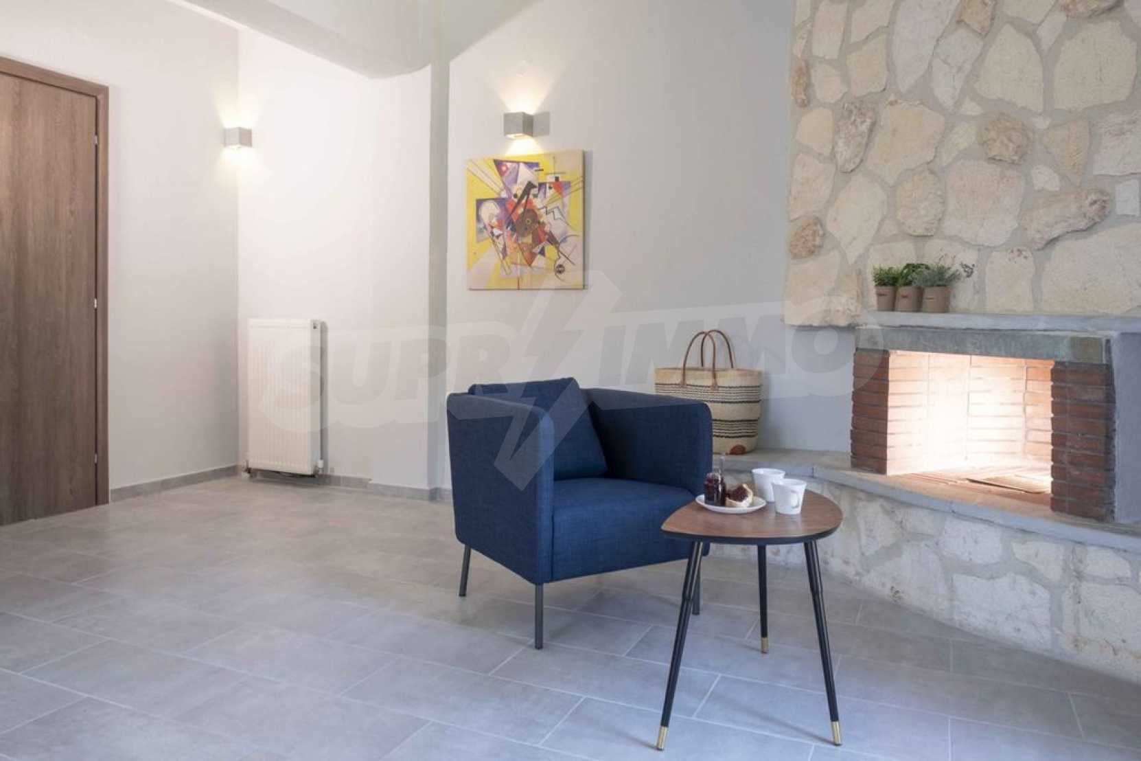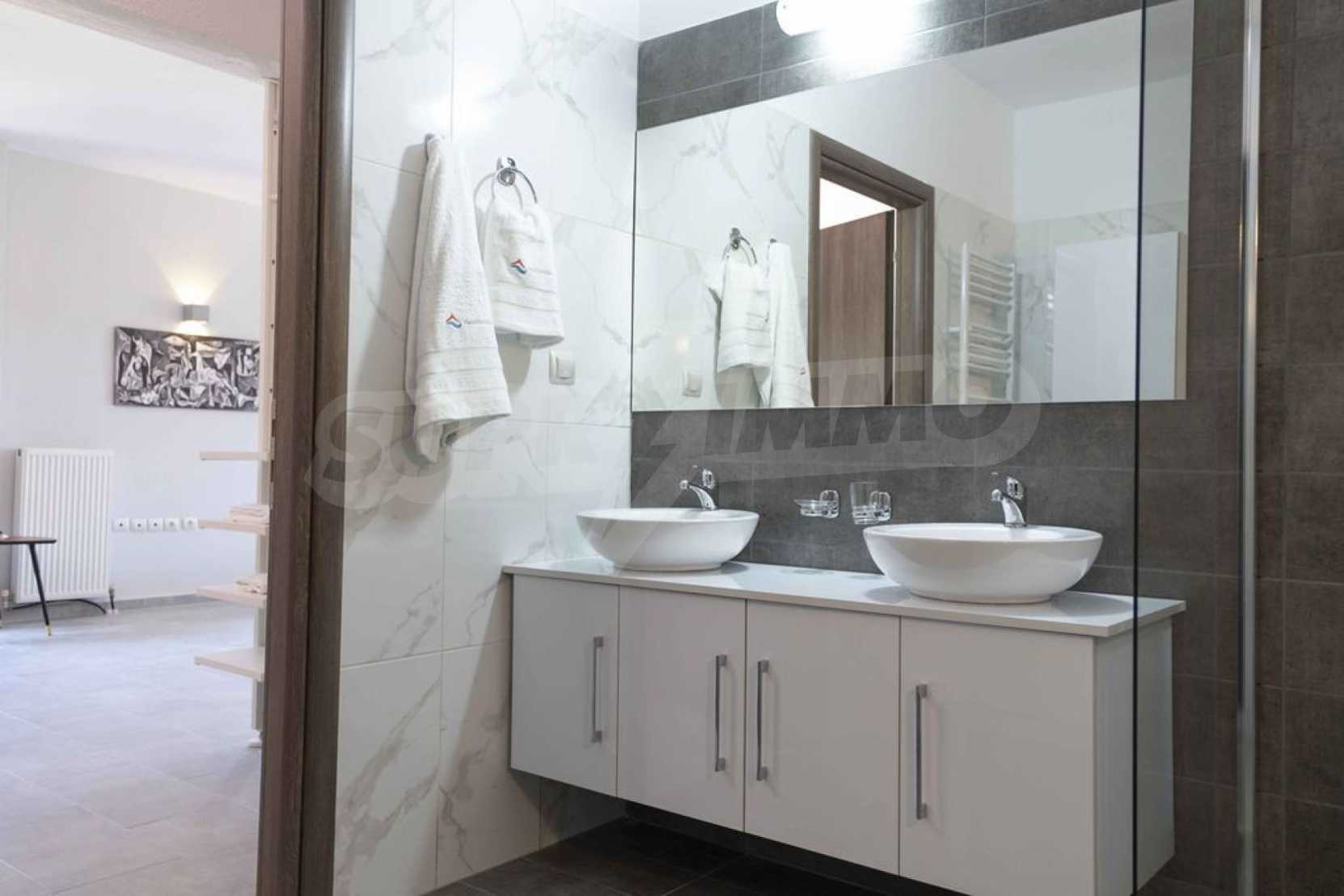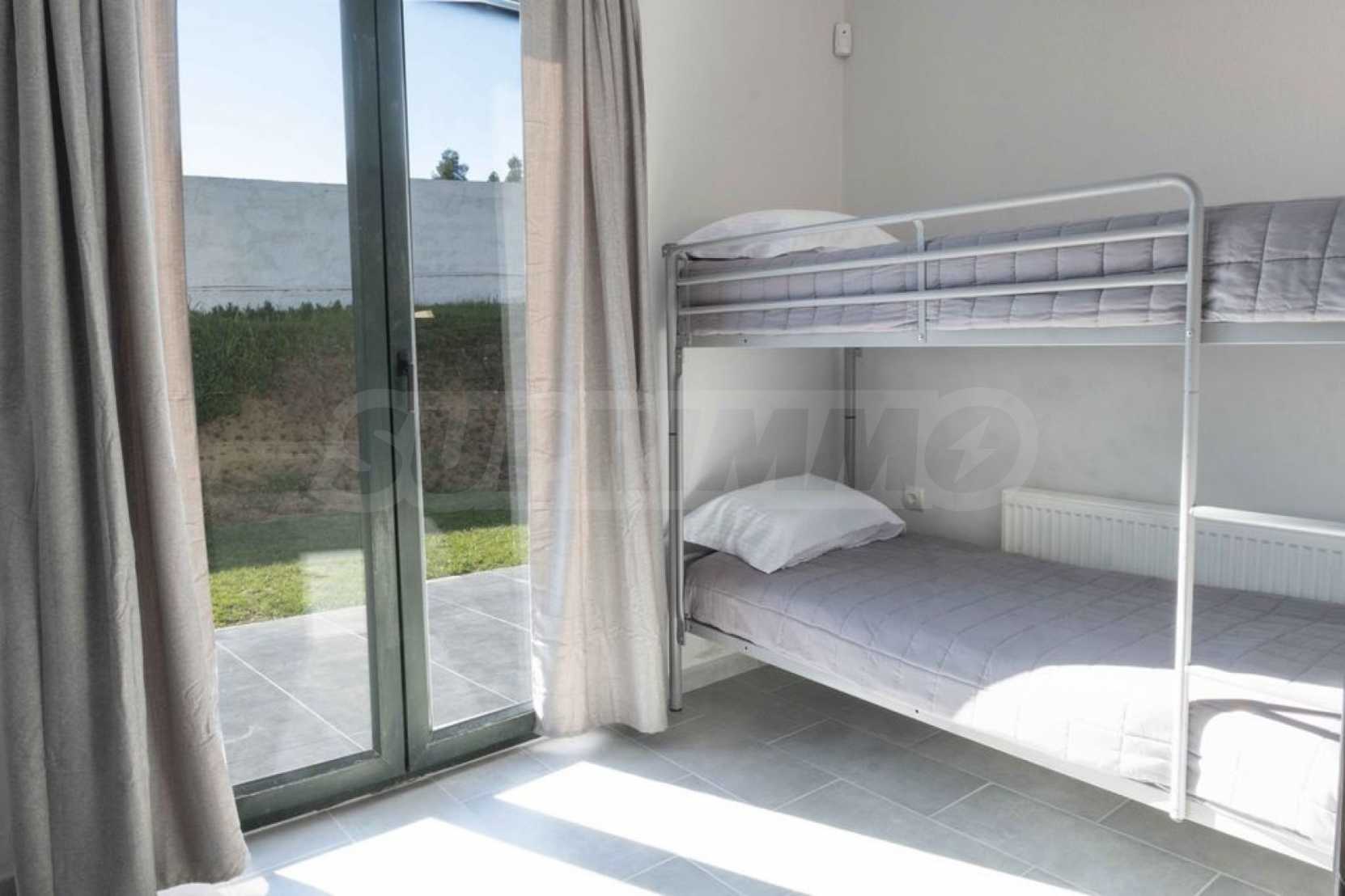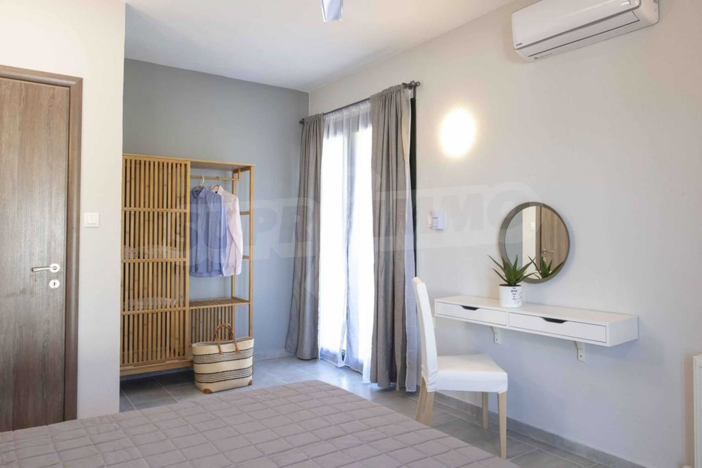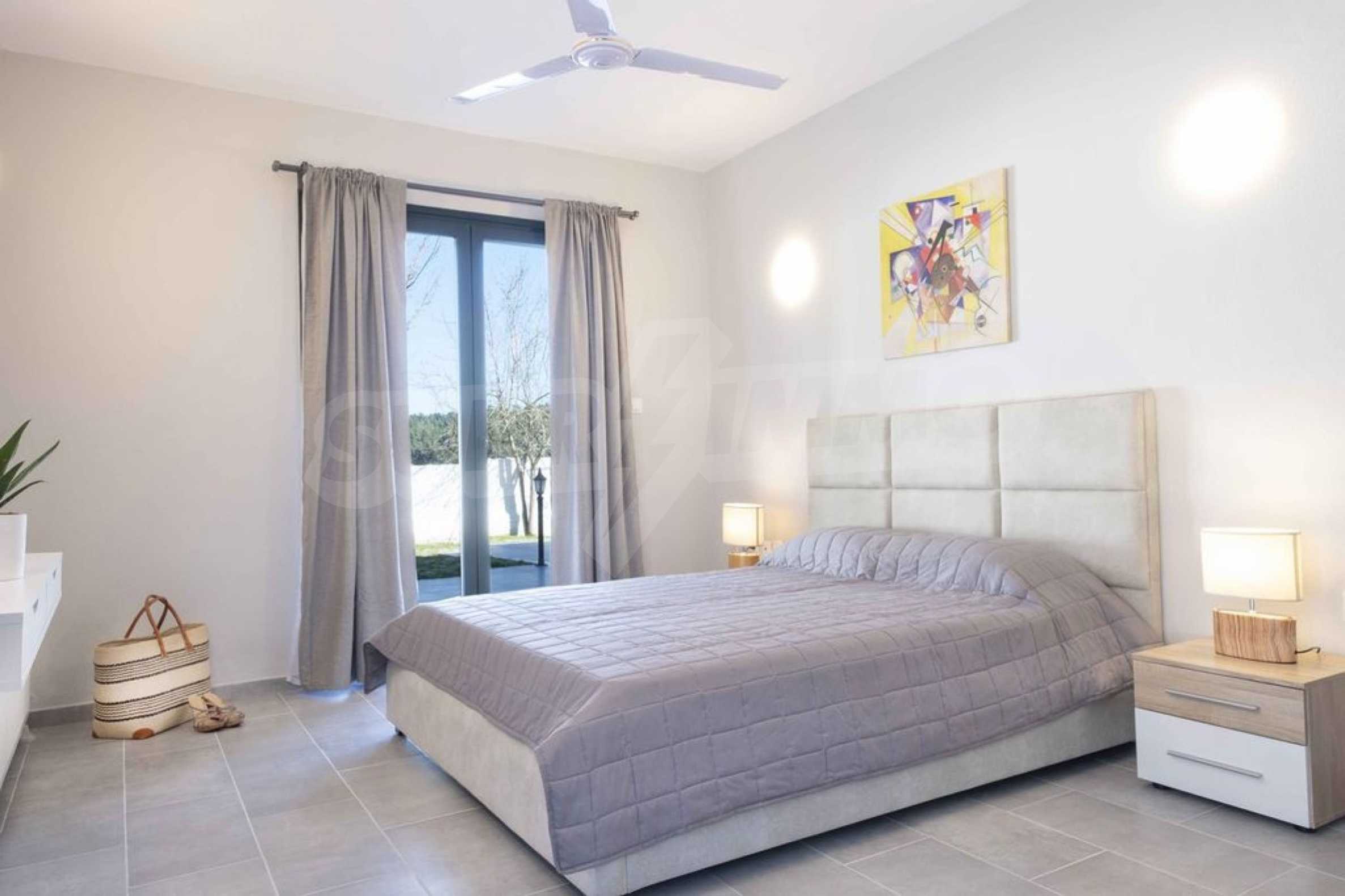 Luksusowa willa o powierzchni 220 m2 na Kasandrze na Półwyspie Chalcydyckim, w sosnowej okolicy, pięć minut od plaży. Podzielone jest na dwa poziomy, składające się z salonu połączonego z kuchnią, czterech sypialni, trzech łazienek oraz garderoby. Posiada ogród o powierzchni 5000 m2 z automatycznym nawadnianiem, aluminiową stolarką, kotłownią, pawilonem, odkrytym basenem i anteną satelitarną. Nieruchomość idealnie nadaje się pod inwestycję, jest w pełni umeblowana.