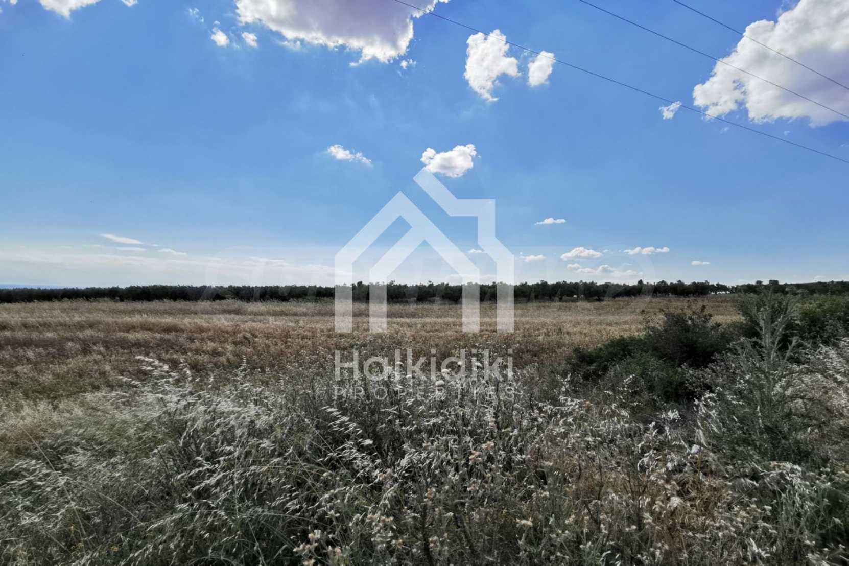 Płaskie pole, 8750 m2, w Nea Moudania, Półwysep Chalcydycki z orientacją południowo-wschodnią. Znajduje się 1000 metrów od centrum wioski, 5500 metrów od plaży i wychodzi na drogę. Jest kompletny i nadaje się do zabudowy, idealnie nadaje się do budowy domów jednorodzinnych oraz do użytku profesjonalnego.