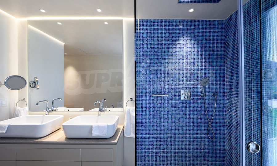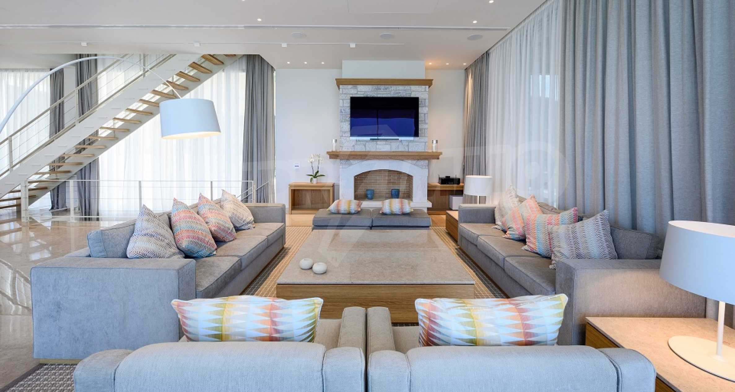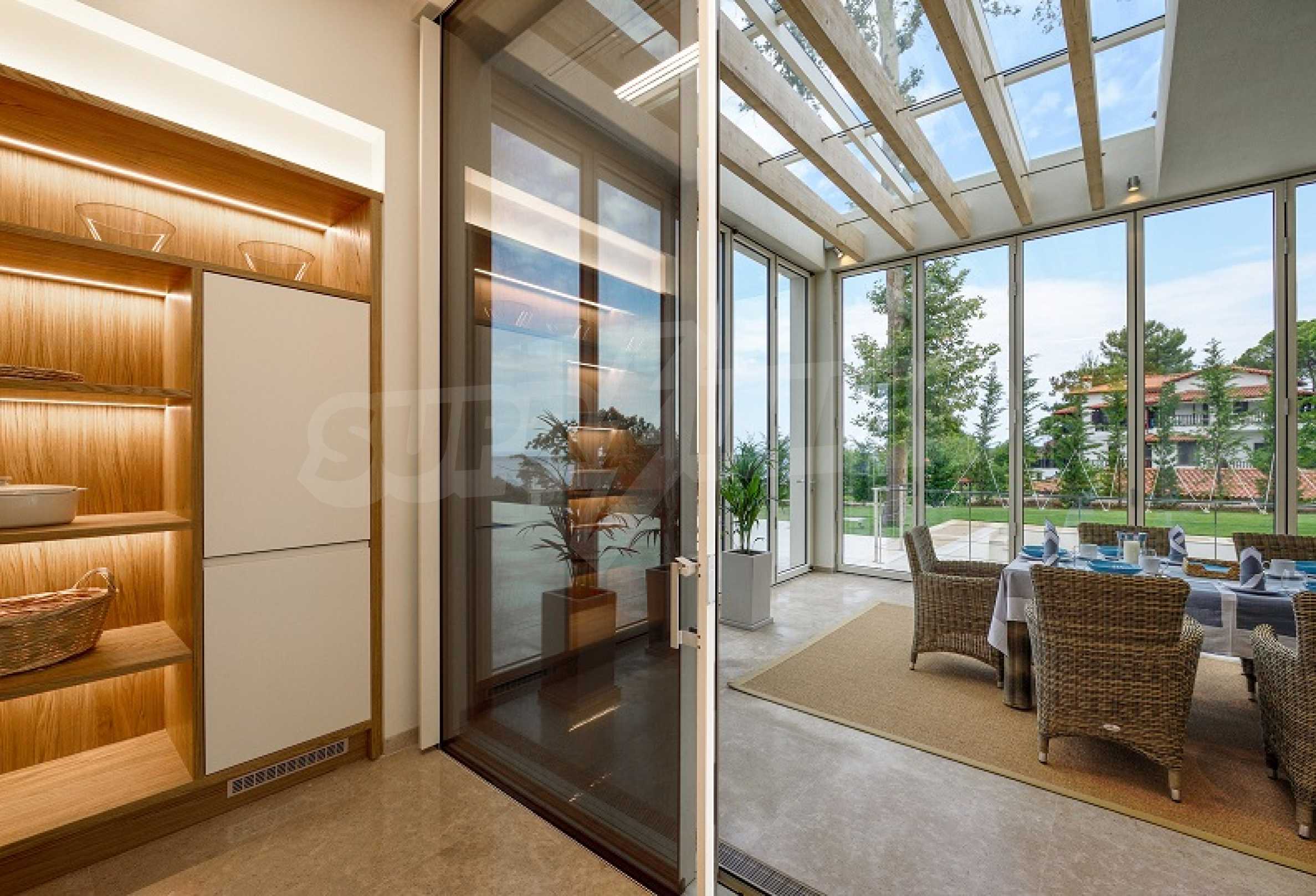 Villa Natalia obejmuje pełną gamę nowoczesnych udogodnień oferowanych za pomocą znajdującego się w willi iPada sterującego innowacyjnym oprogramowaniem automatyki systemu inteligentnego domu KNX, łączącym luksus i najnowocześniejszą technologię. Jednym dotknięciem sterujesz temperaturą, wilgotnością, muzyką, oświetleniem, telewizorem, przyciemnianiem, roletami i nie tylko. Wszystkie osiem sypialni posiada łazienki, obszary dzienne zostały zaprojektowane tak, aby pomieścić całą firmę, ale jest też kilka dobrze określonych małych zakątków, które w razie potrzeby z łatwością zapewniają prywatność. Oszałamiający widok na morze, góry i wyspę Diaporos z Villi Natalii nie ma sobie równych. Taras willi, usiany zapierającymi dech w piersiach widokami na morze, zaprasza na inspirujące dni i wieczory pod greckim niebem.