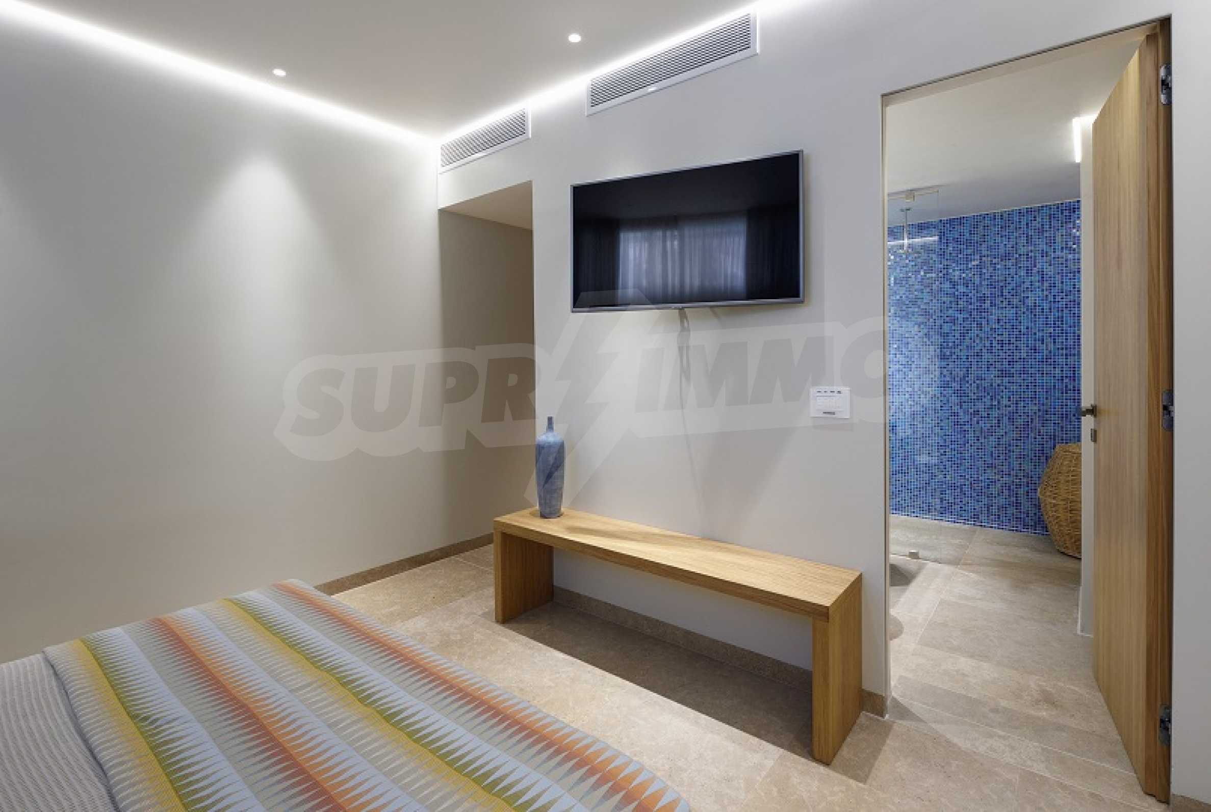 Villa Natalia obejmuje pełną gamę nowoczesnych udogodnień oferowanych za pomocą znajdującego się w willi iPada sterującego innowacyjnym oprogramowaniem automatyki systemu inteligentnego domu KNX, łączącym luksus i najnowocześniejszą technologię. Jednym dotknięciem sterujesz temperaturą, wilgotnością, muzyką, oświetleniem, telewizorem, przyciemnianiem, roletami i nie tylko. Wszystkie osiem sypialni posiada łazienki, obszary dzienne zostały zaprojektowane tak, aby pomieścić całą firmę, ale jest też kilka dobrze określonych małych zakątków, które w razie potrzeby z łatwością zapewniają prywatność. Oszałamiający widok na morze, góry i wyspę Diaporos z Villi Natalii nie ma sobie równych. Taras willi, usiany zapierającymi dech w piersiach widokami na morze, zaprasza na inspirujące dni i wieczory pod greckim niebem.