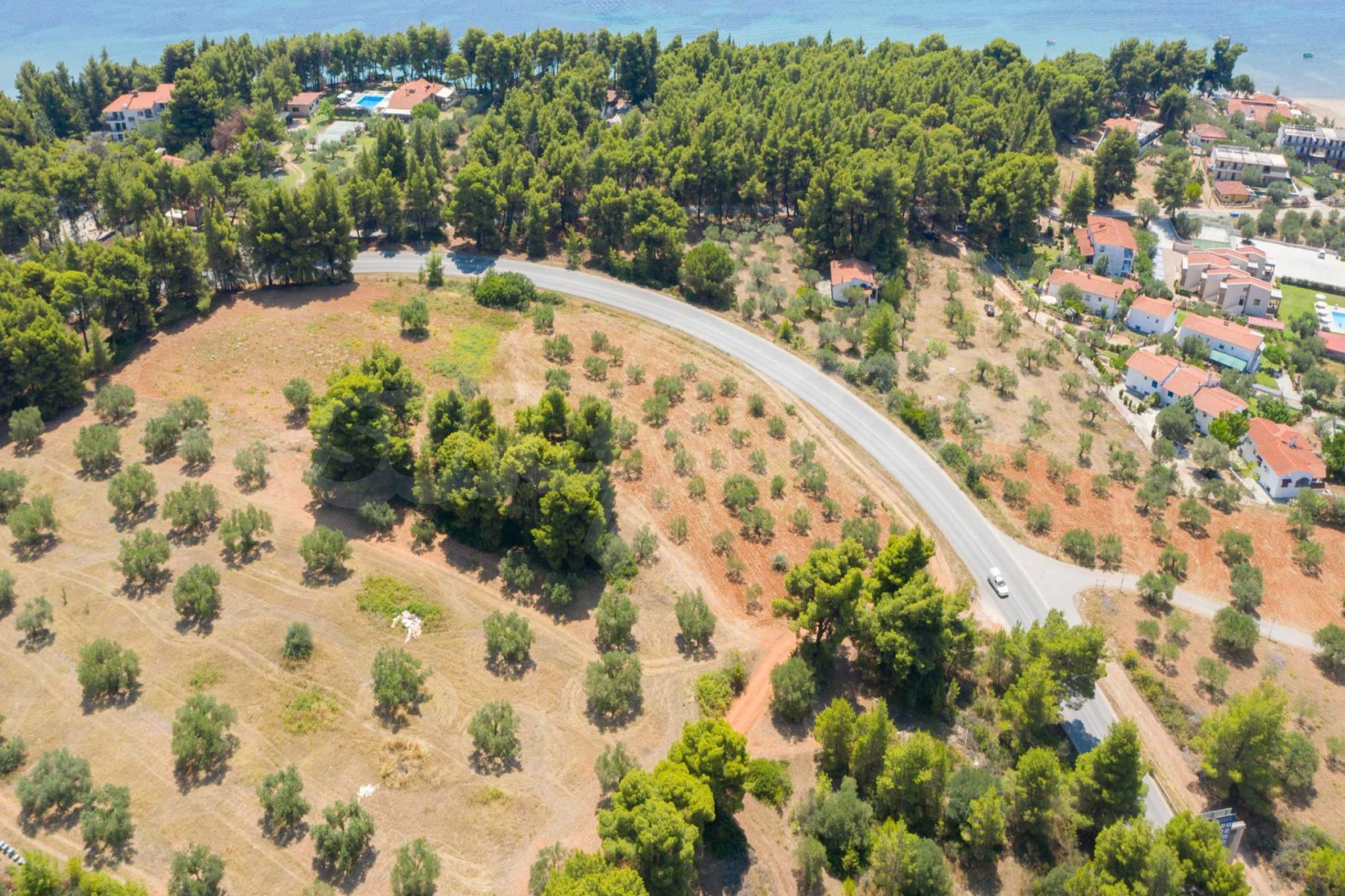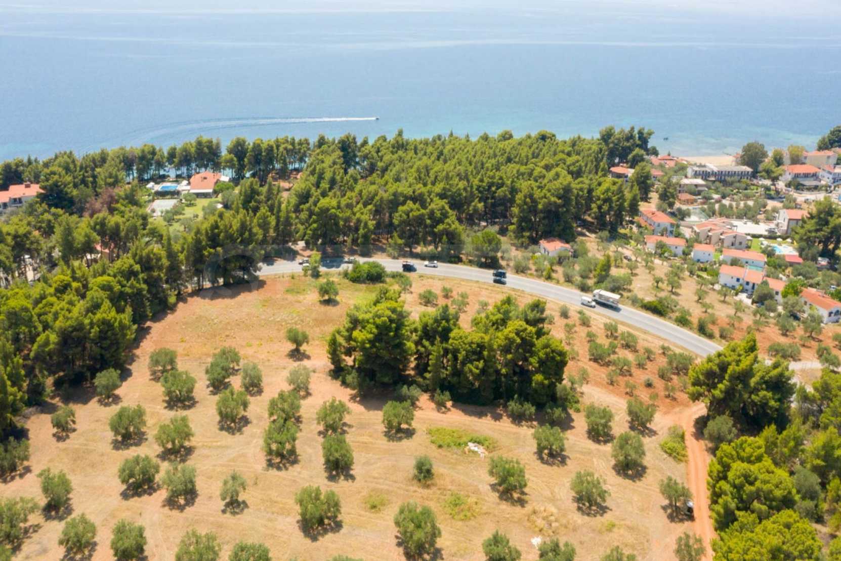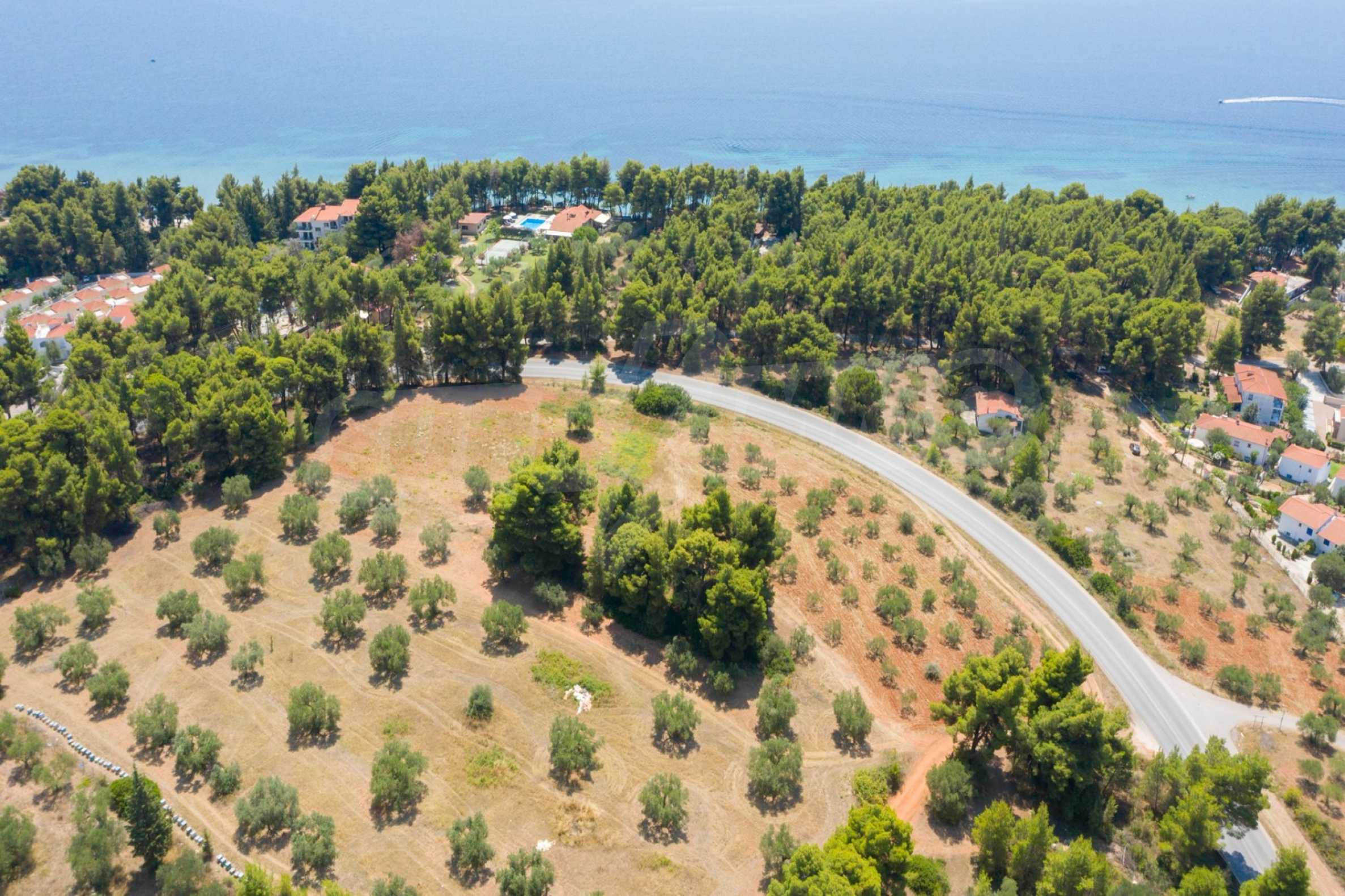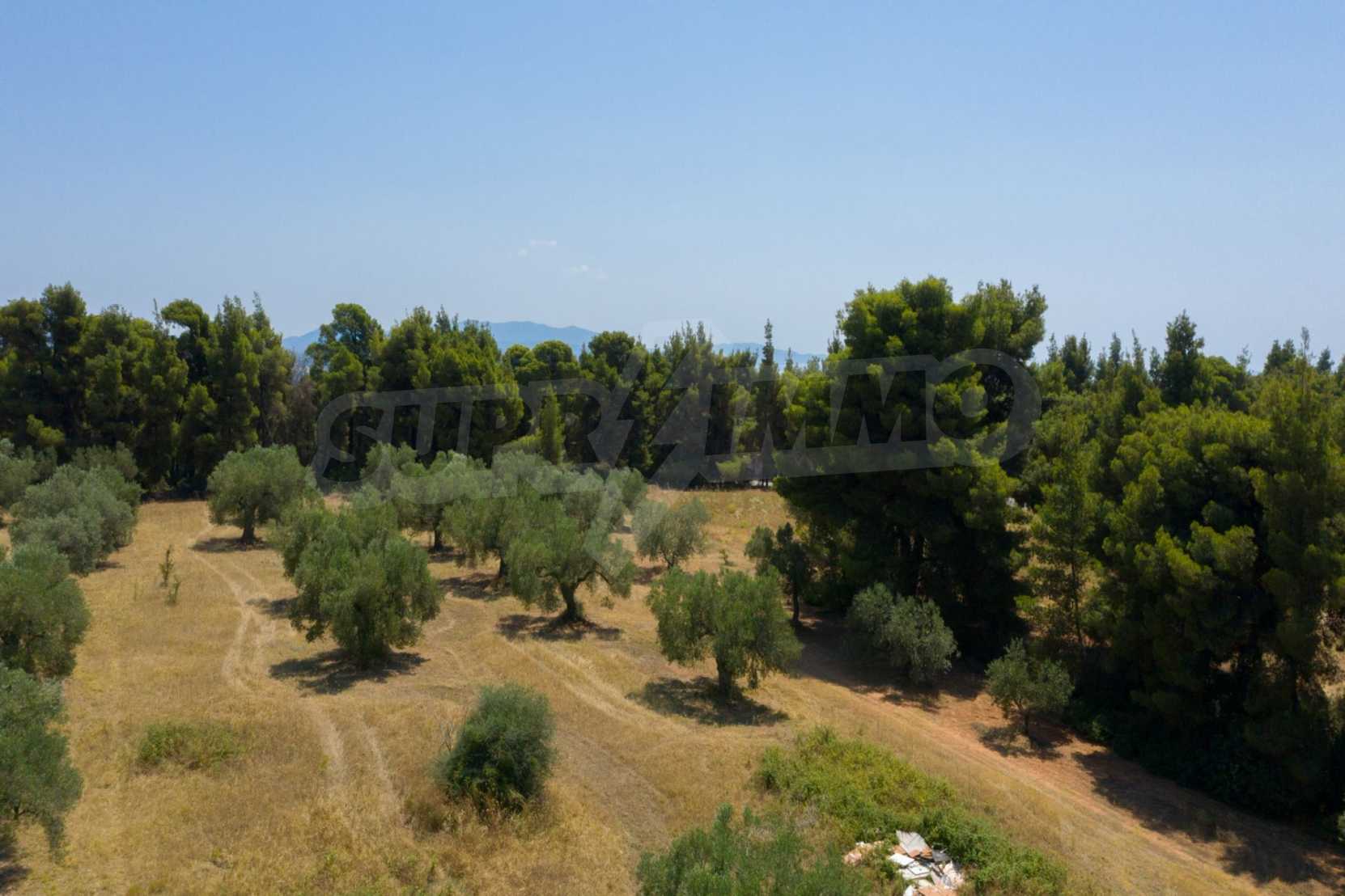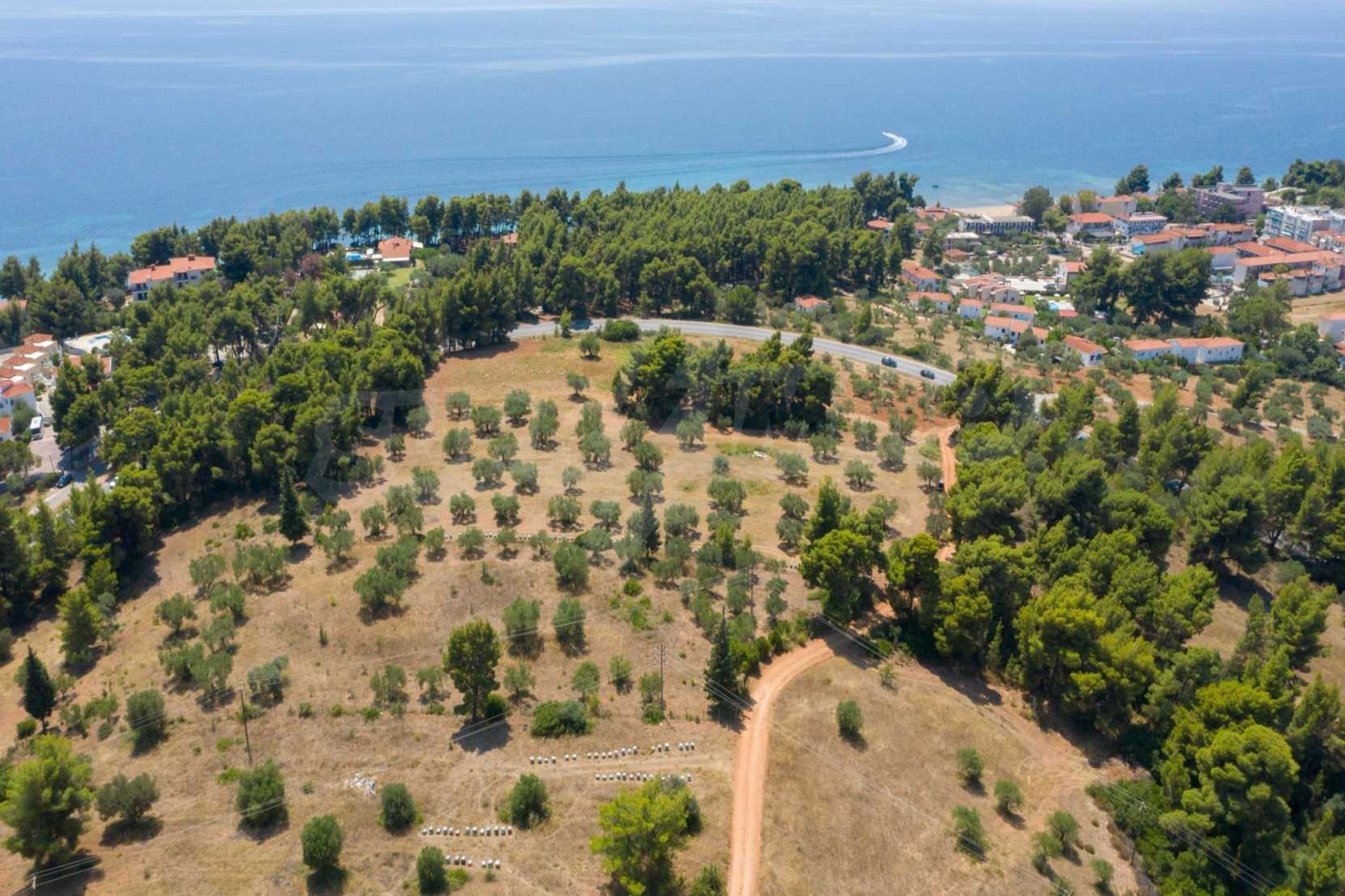 Doskonałe, płaskie pole, 9.000 m2, na Sithonii na Półwyspie Chalcydyckim. Znajduje się poza wioską i oferuje wspaniałe naturalne piękno i widoki na morze. Znajduje się 250 metrów od plaży i 400 metrów od centrum miejscowości. Ma niezakłócony stały widok, południową orientację i duży gaj oliwny w środku. Jest kompletna i budowlana, ze względu na swoje gabaryty idealnie nadaje się do budowy domów jednorodzinnych, do profesjonalnej eksploatacji, ale również do budowy willi.