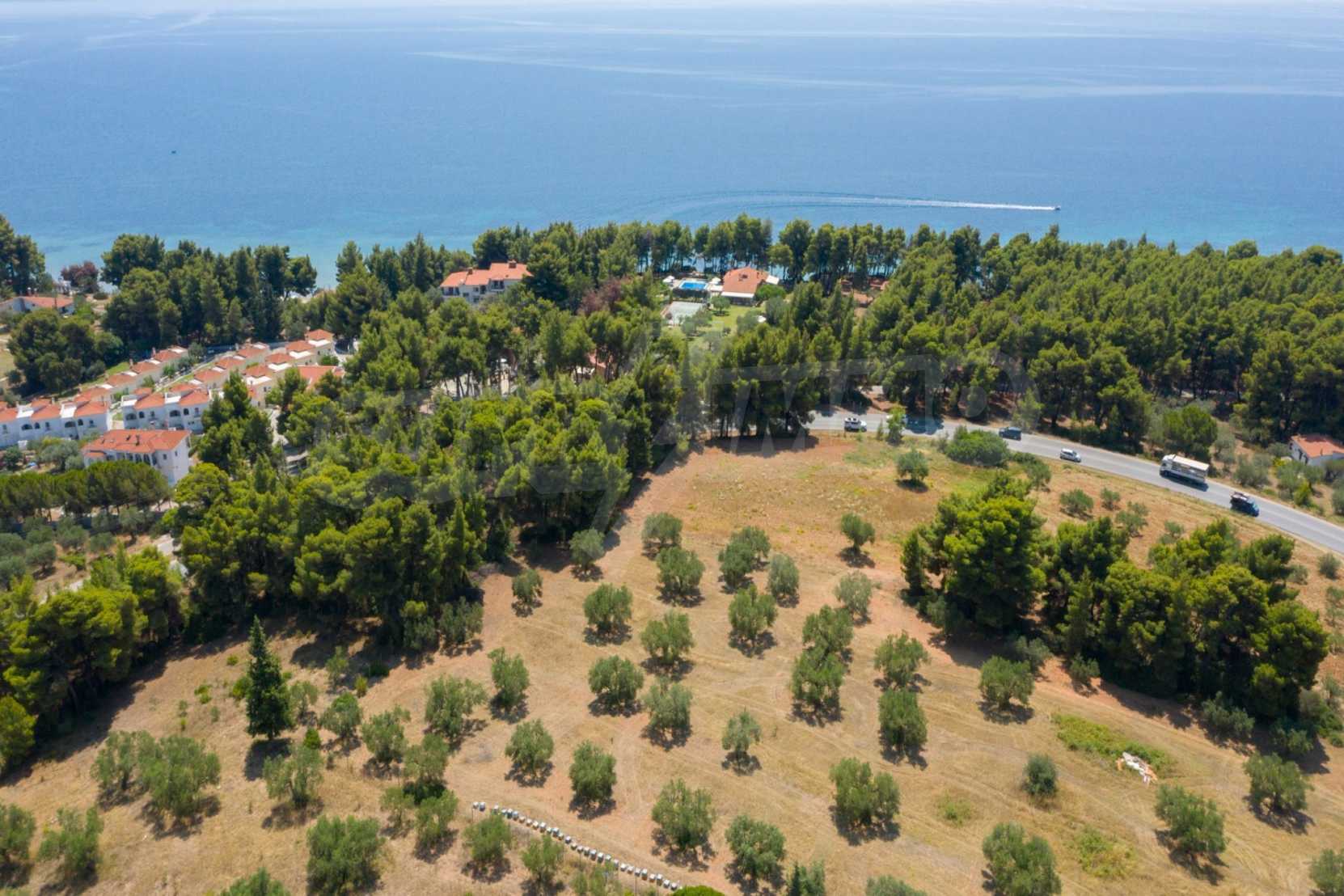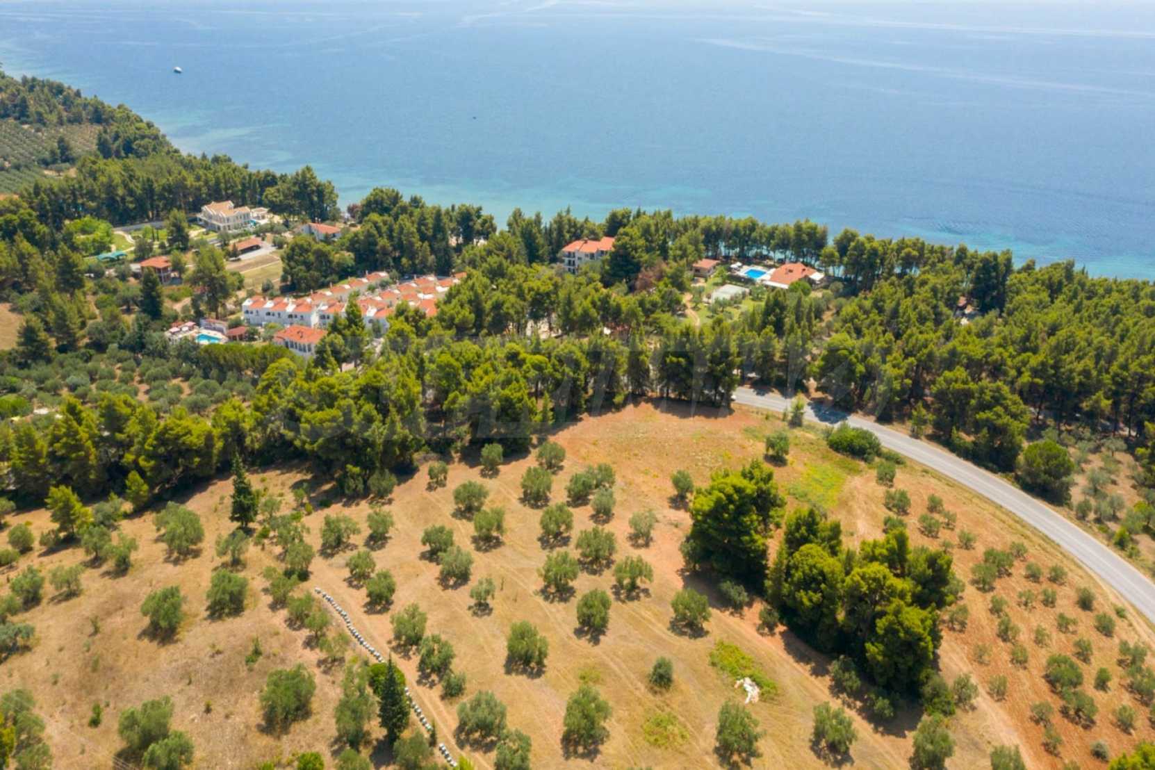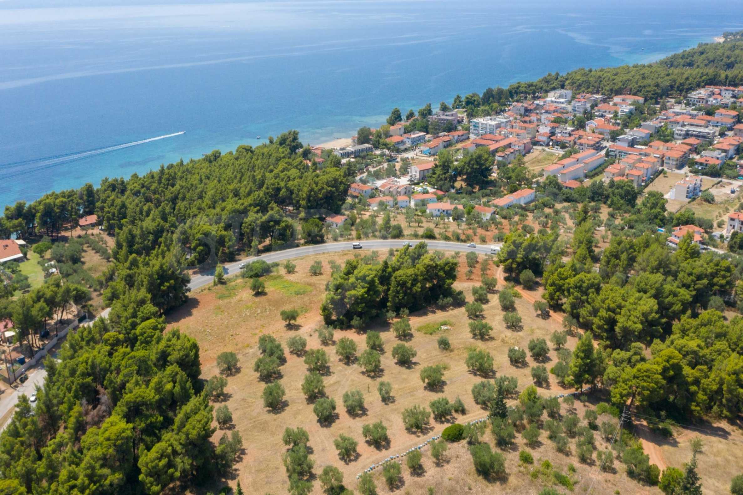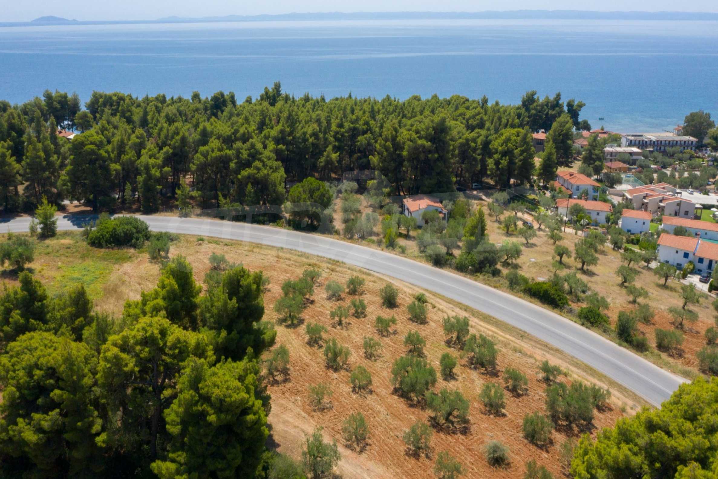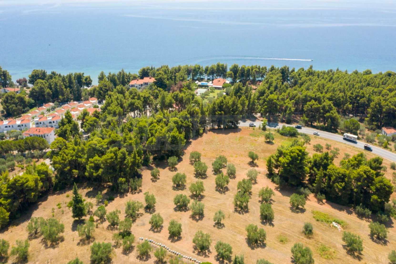 Doskonałe, płaskie pole, 9.000 m2, na Sithonii na Półwyspie Chalcydyckim. Znajduje się poza wioską i oferuje wspaniałe naturalne piękno i widoki na morze. Znajduje się 250 metrów od plaży i 400 metrów od centrum miejscowości. Ma niezakłócony stały widok, południową orientację i duży gaj oliwny w środku. Jest kompletna i budowlana, ze względu na swoje gabaryty idealnie nadaje się do budowy domów jednorodzinnych, do profesjonalnej eksploatacji, ale również do budowy willi.