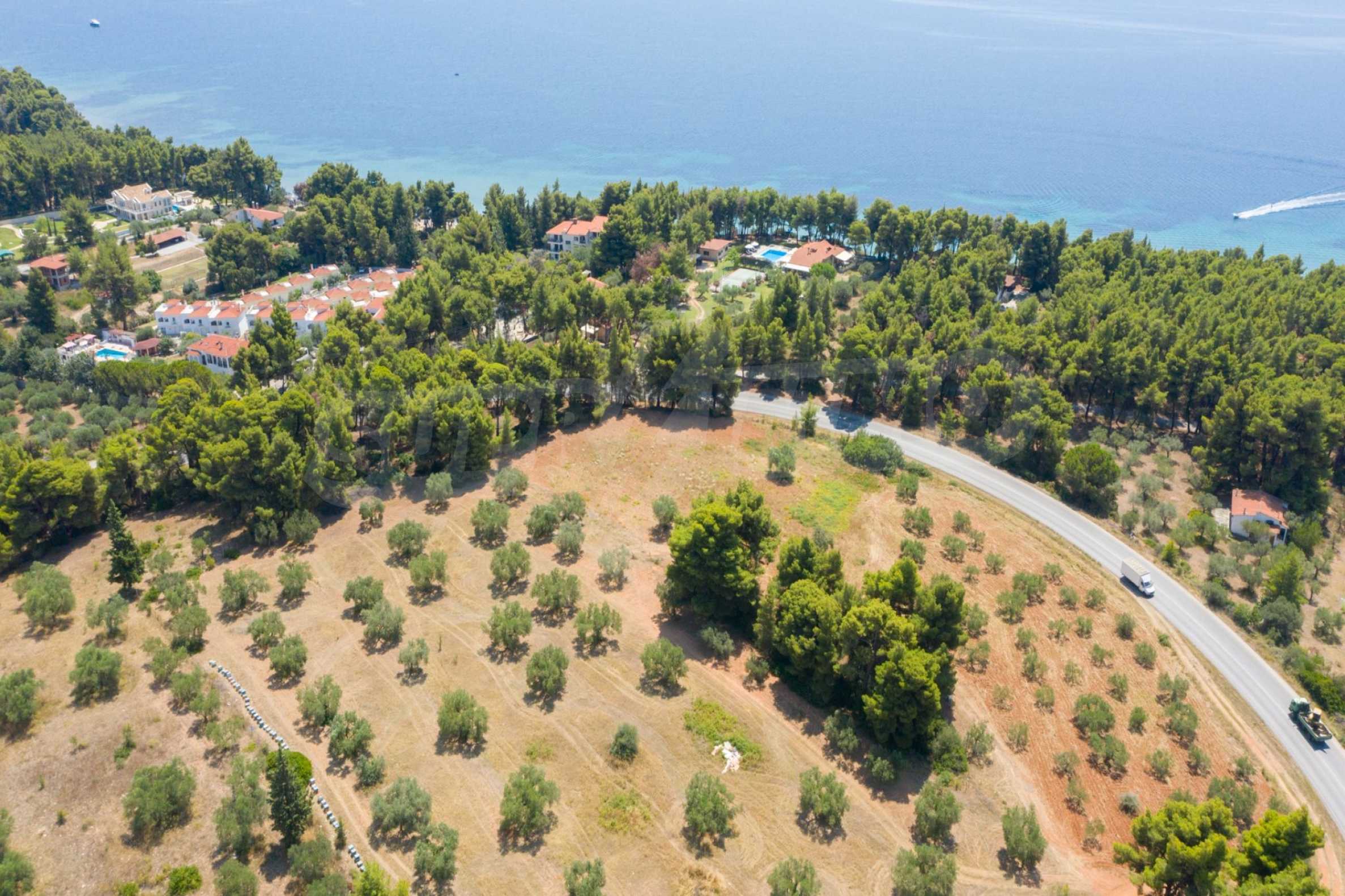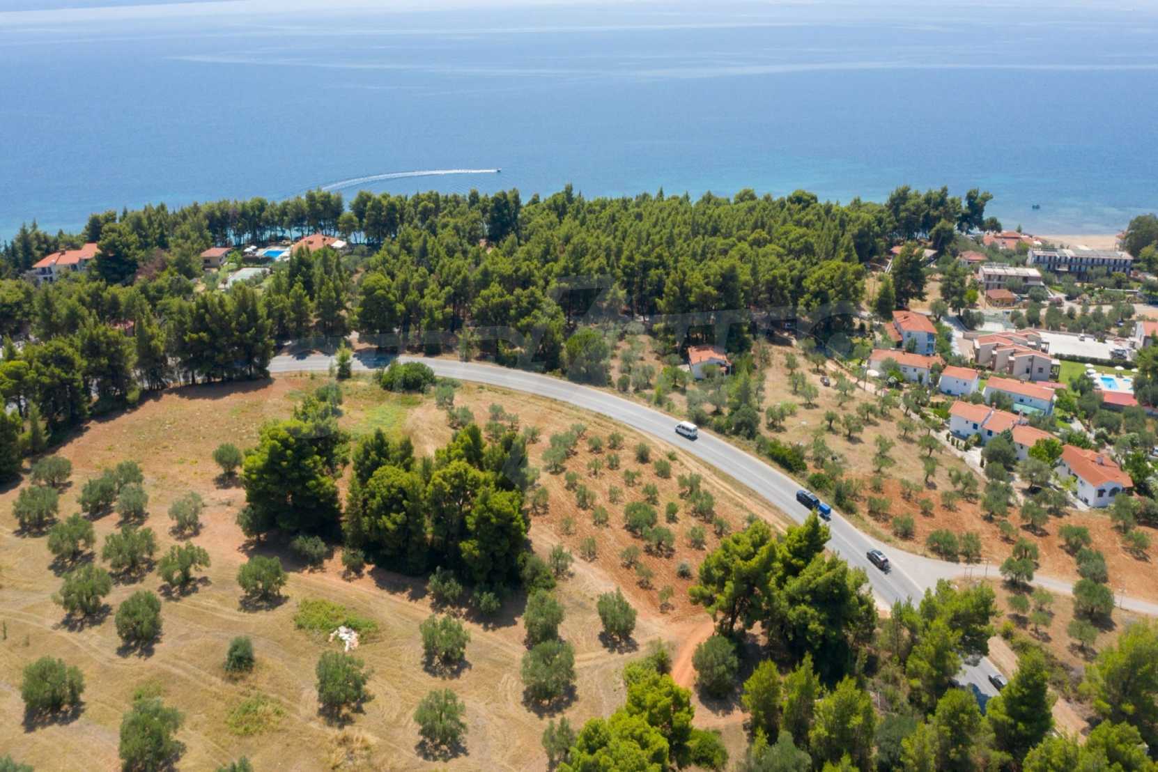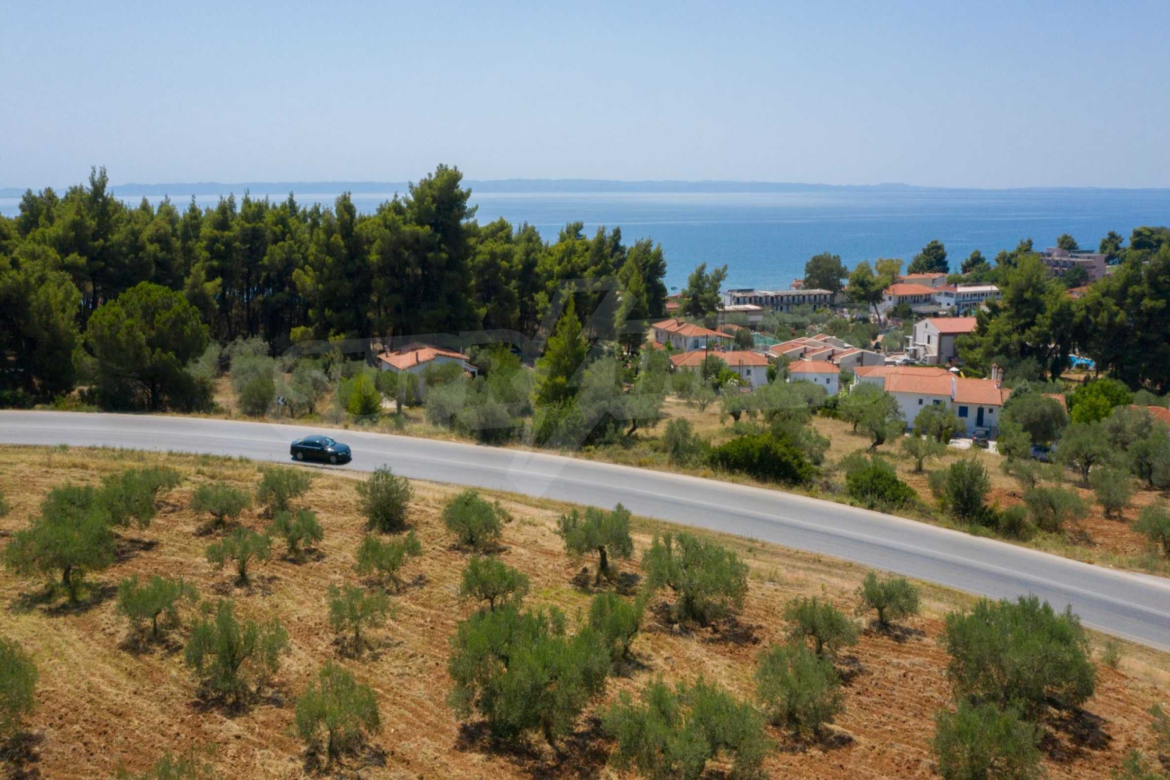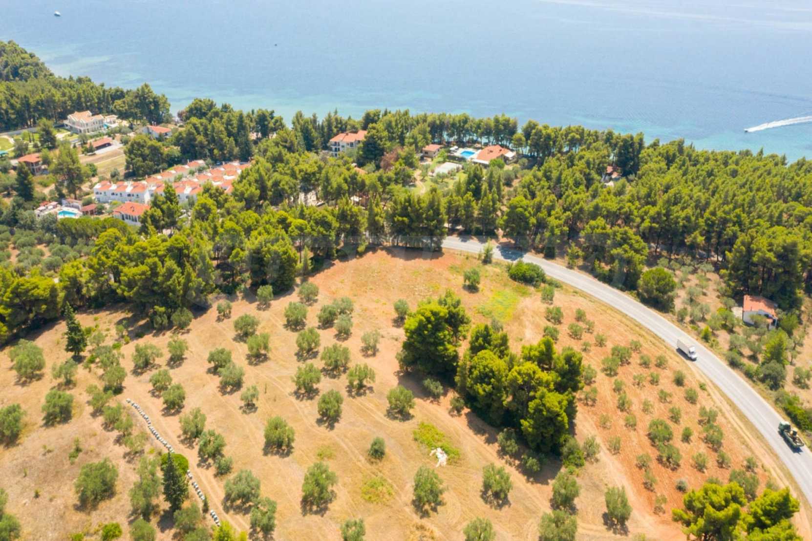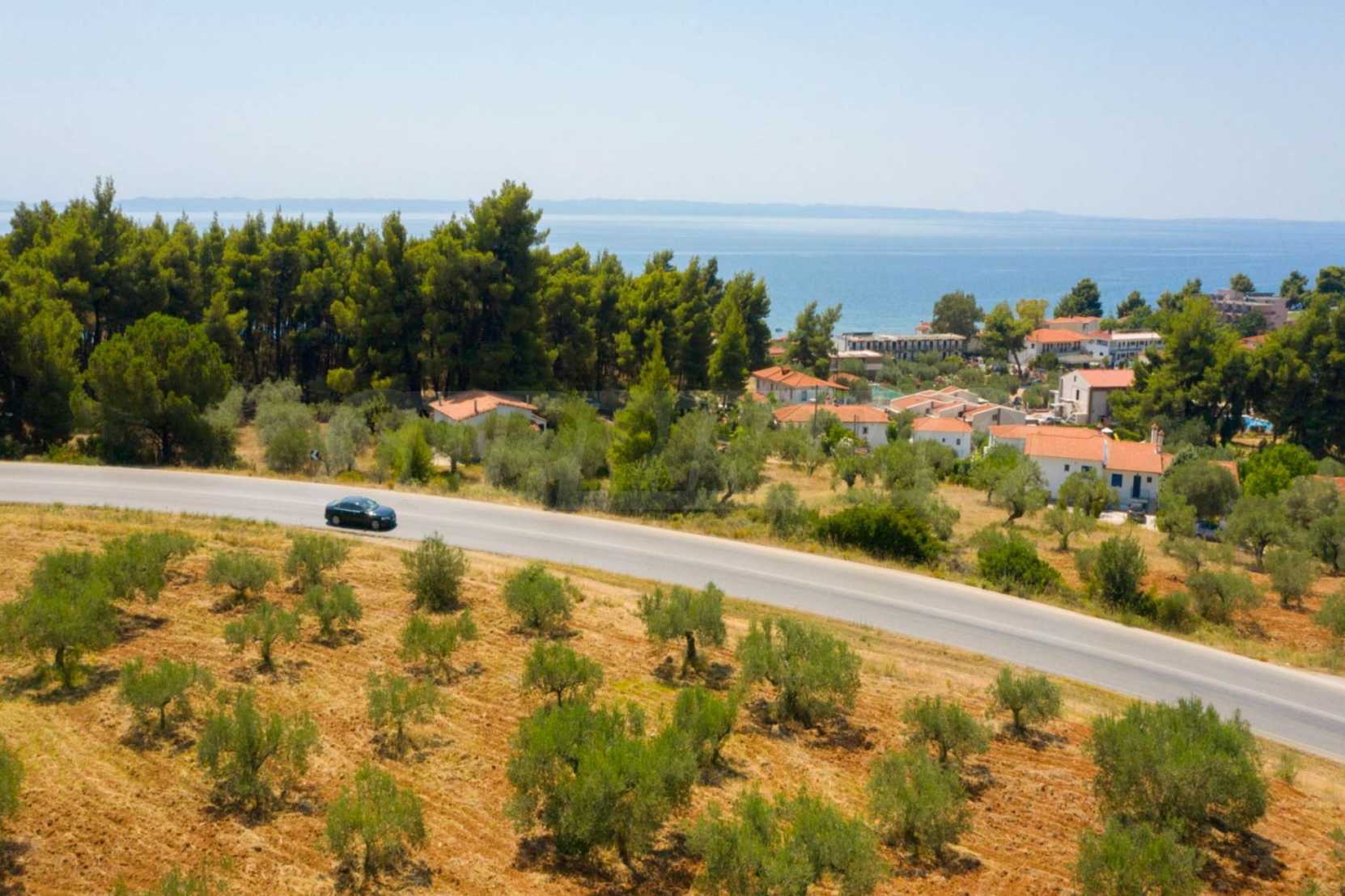 Doskonałe, płaskie pole, 9.000 m2, na Sithonii na Półwyspie Chalcydyckim. Znajduje się poza wioską i oferuje wspaniałe naturalne piękno i widoki na morze. Znajduje się 250 metrów od plaży i 400 metrów od centrum miejscowości. Ma niezakłócony stały widok, południową orientację i duży gaj oliwny w środku. Jest kompletna i budowlana, ze względu na swoje gabaryty idealnie nadaje się do budowy domów jednorodzinnych, do profesjonalnej eksploatacji, ale również do budowy willi.