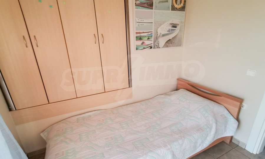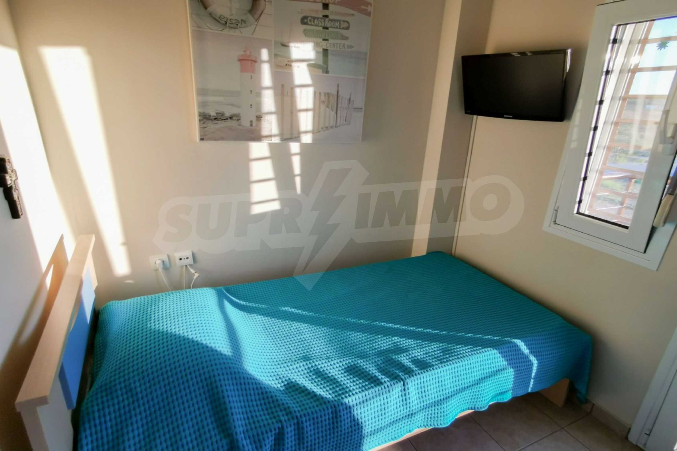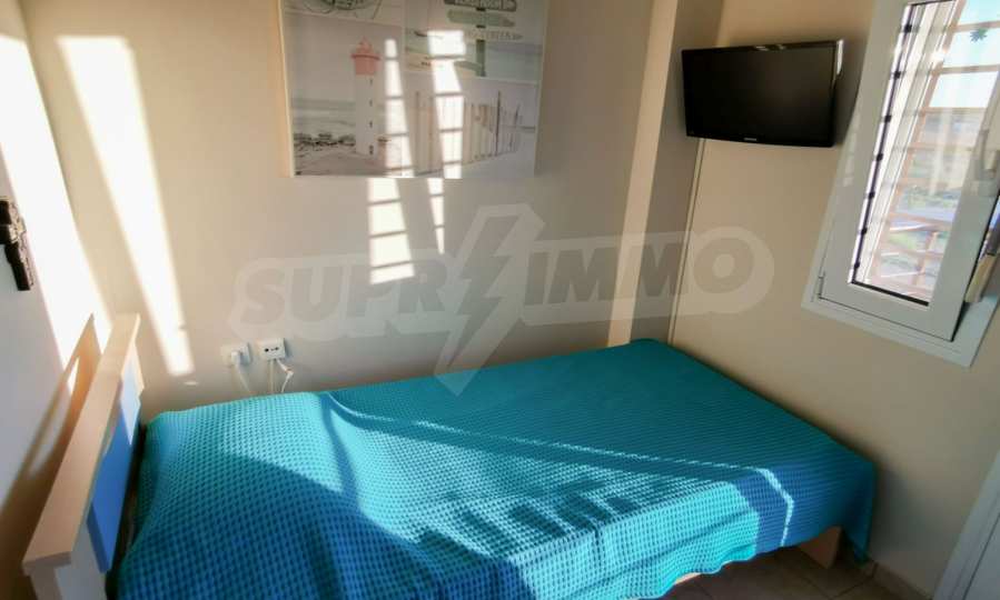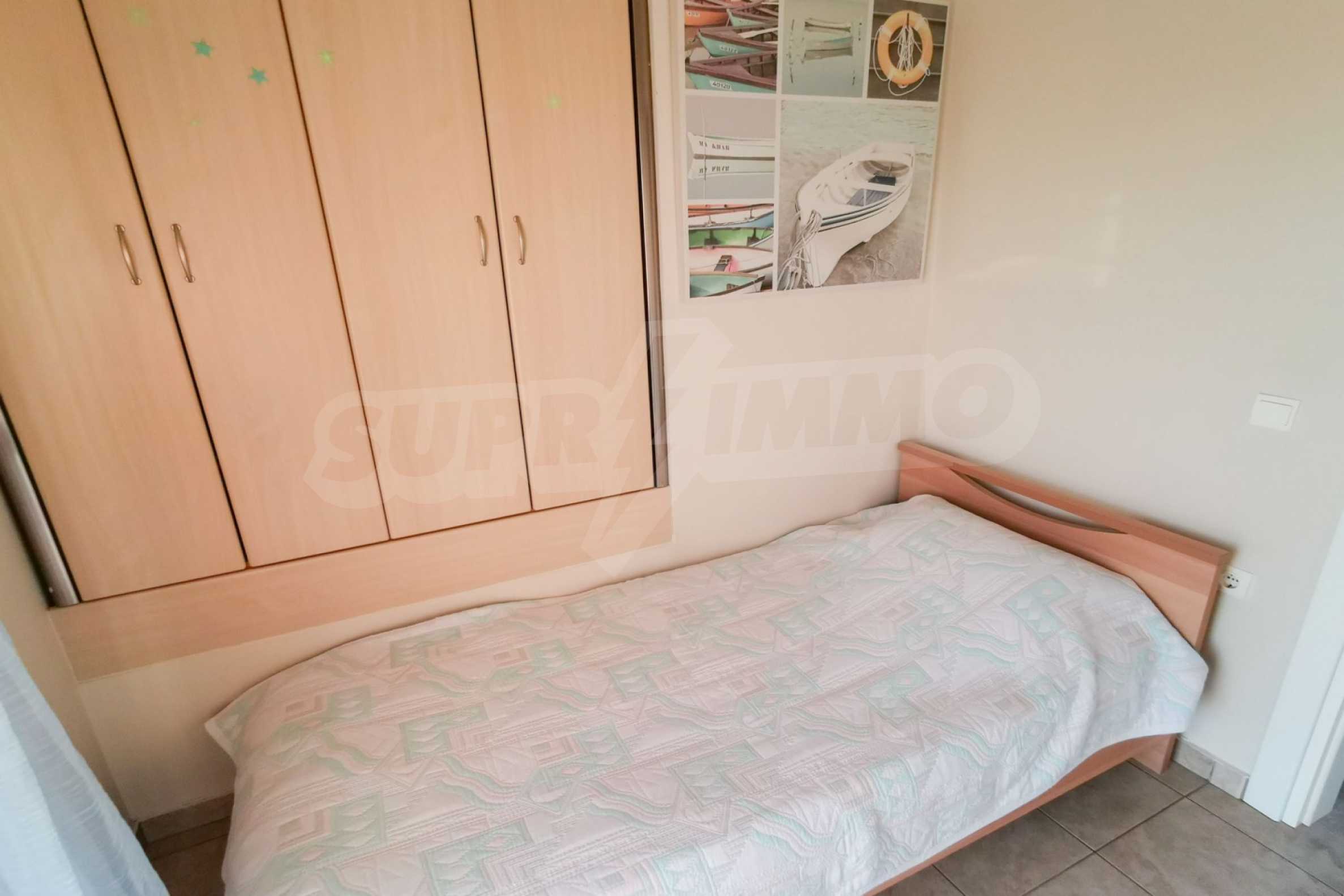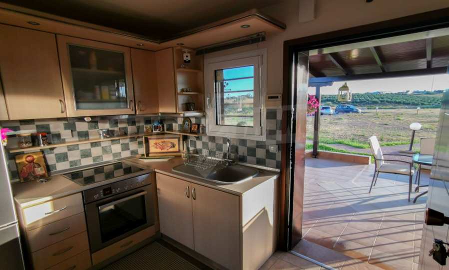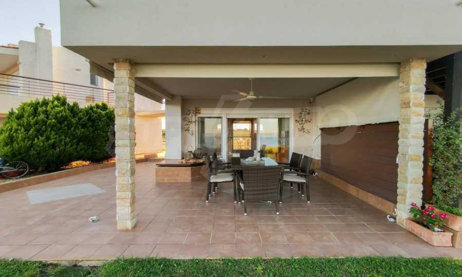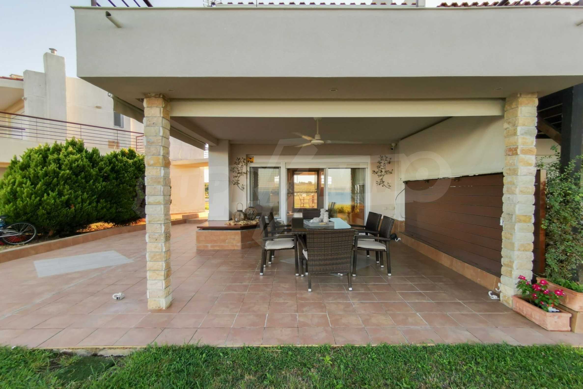 Apartament dwupoziomowy o powierzchni 90 m², pierwszy nad morzem, zbudowany na wzgórzu, z magicznym widokiem na zatokę Toronaios i zorientowany na wschód. Obiekt ma łatwy dostęp do plaży i znajduje się 1500 metrów od centrum wioski. Dwupoziomowy apartament położony jest w kompleksie sześciu domów, na 12-hektarowej działce ze wspólnym basenem. Składa się z salonu połączonego z kuchnią, trzech sypialni, dwóch łazienek i dwóch schowków. Posiada duży balkon, okna aluminiowe, podłogi z terakoty, drzwi pancerne, instalację alarmową oraz pawilon ogólnodostępny.