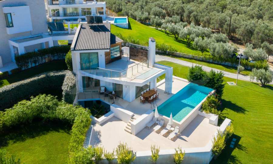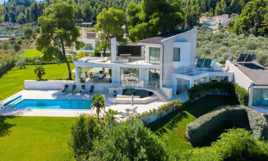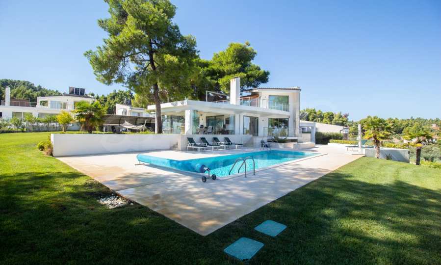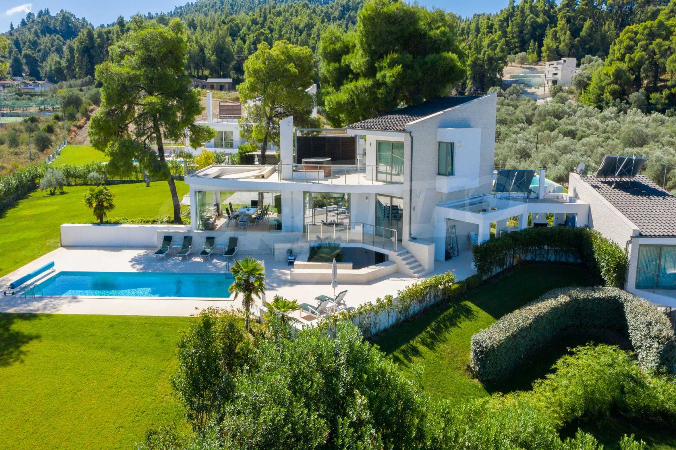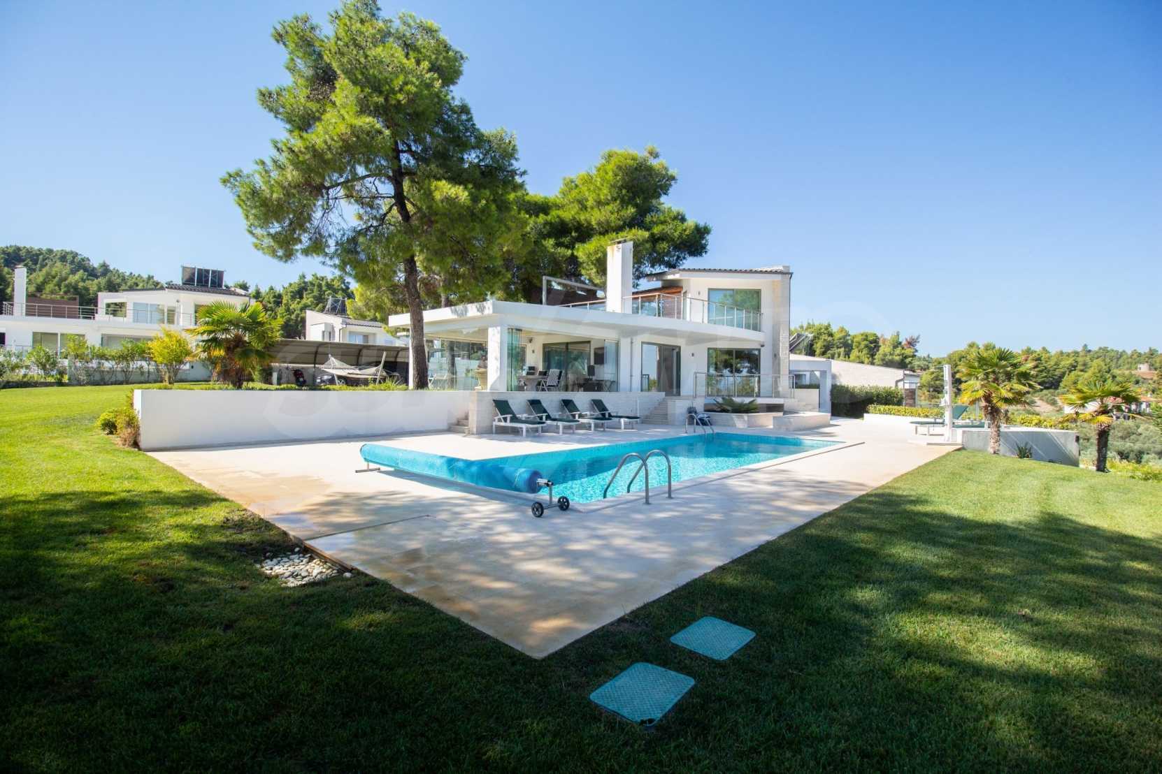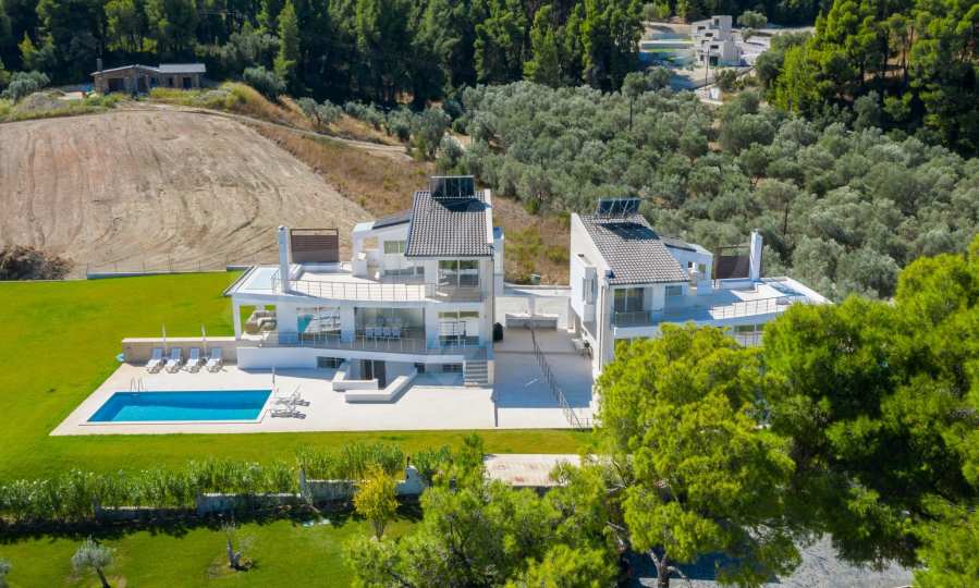 Nowo wybudowany kompleks 4 luksusowych willi na Kassandrze na Półwyspie Chalcydyckim ze wspaniałym widokiem na zatokę Toronaios. Kompleks składa się z 4 salonów połączonych z jadalniami z kuchnią, 19 sypialni, 14 łazienek, 4 toalet i 4 pomieszczeń gospodarczych. Działka ma 8 akrów, a każda willa ma własny basen i trzy miejsca parkingowe. Jest idealny do użytku profesjonalnego.