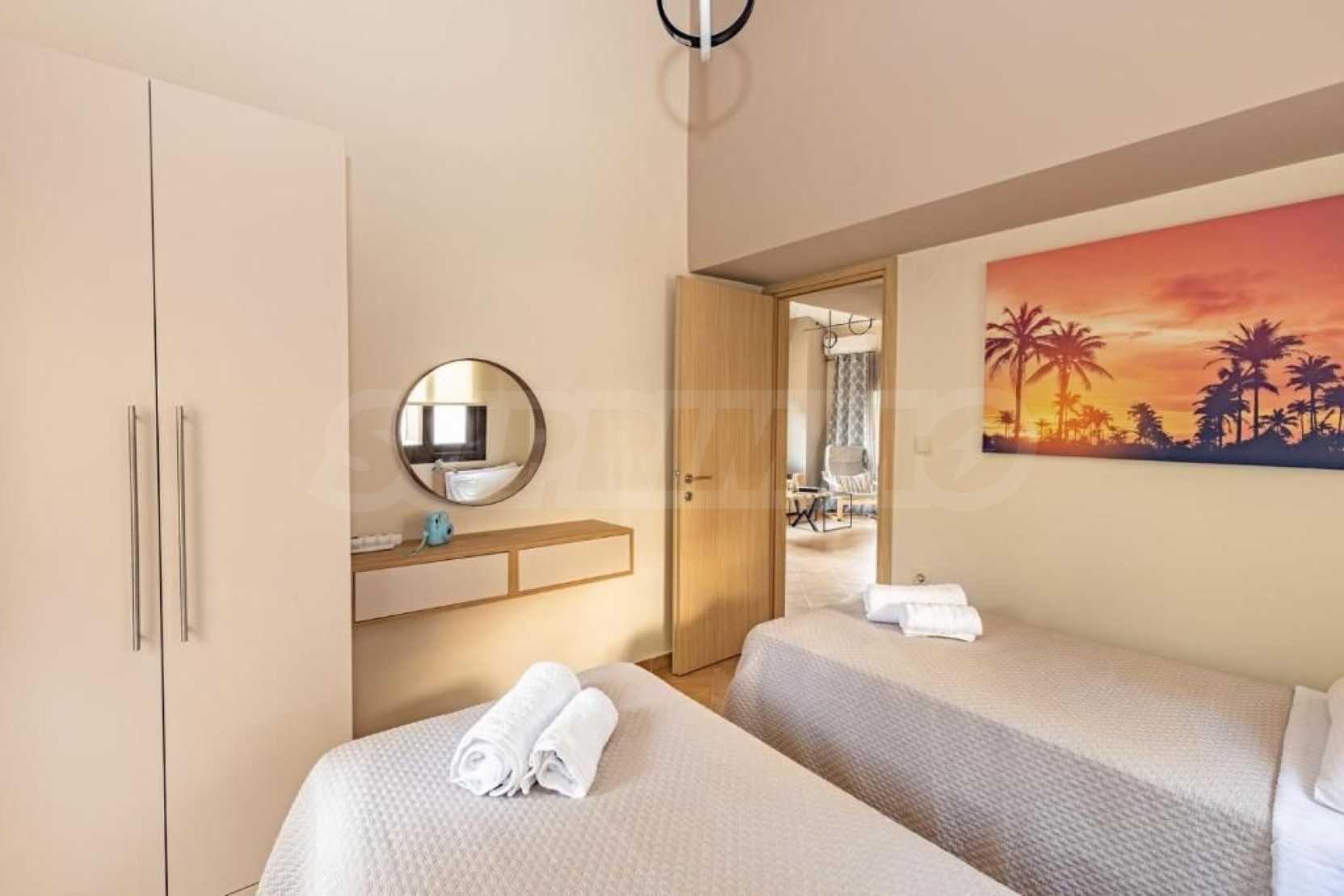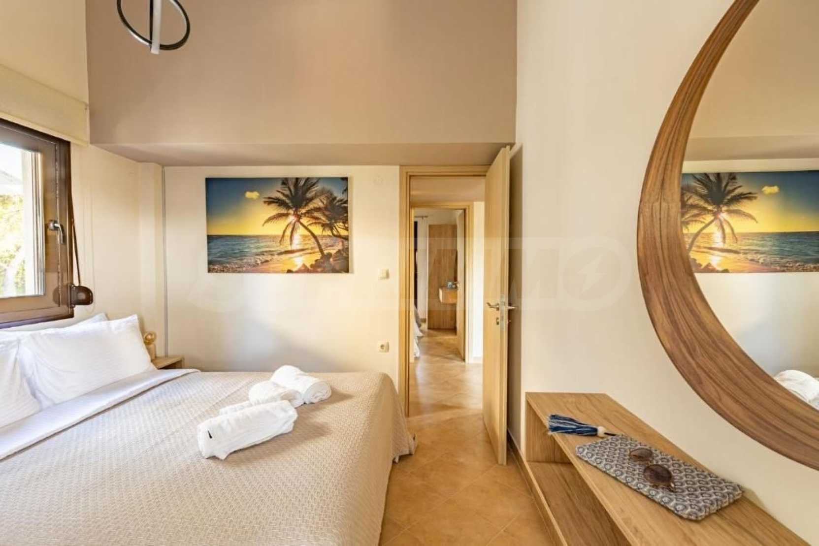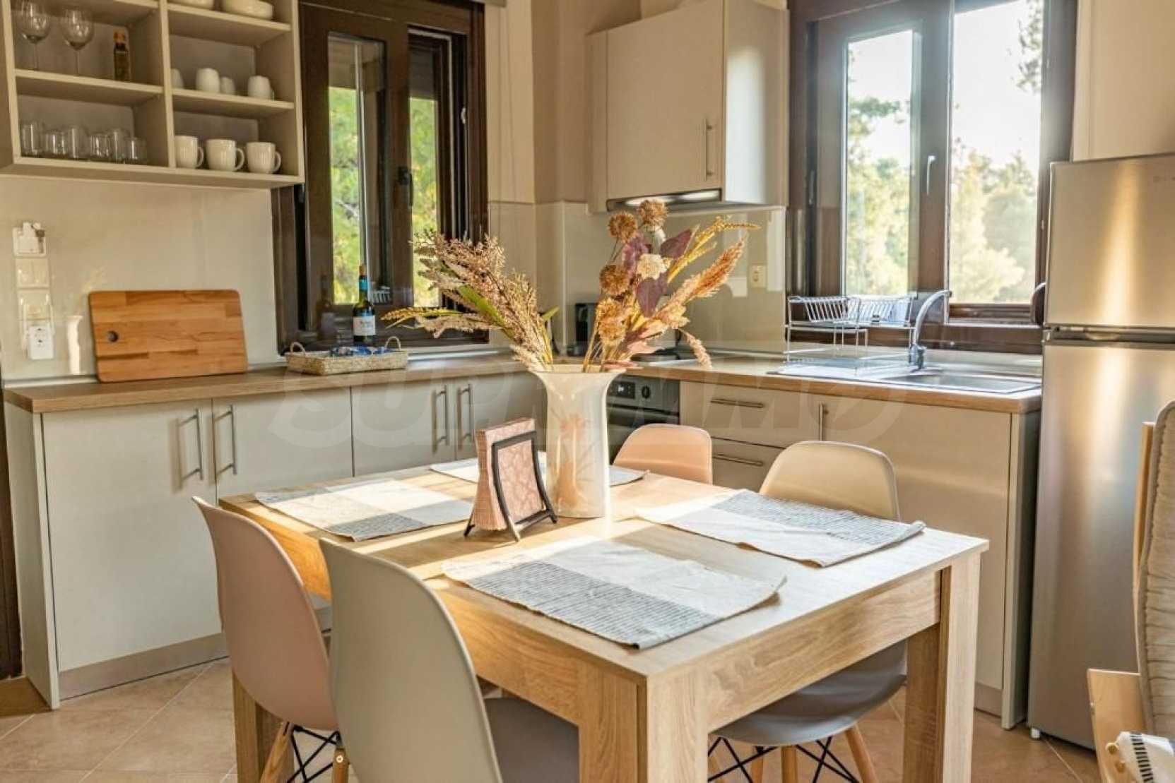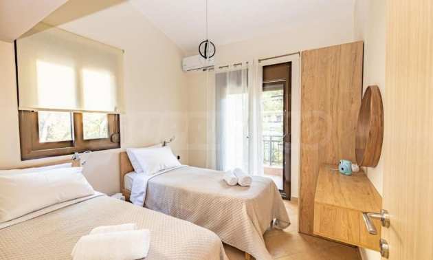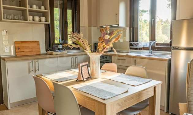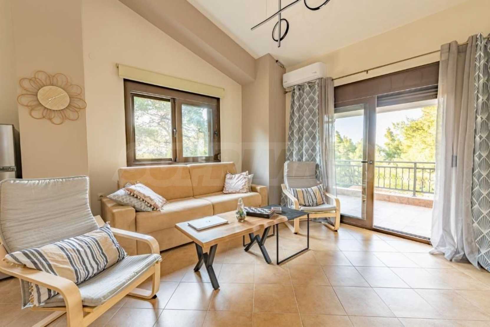 Doskonały, jasny dom wolnostojący o powierzchni 170 m² na Sithonii na Półwyspie Chalcydyckim. Położony poza miejscowością, z południową orientacją i widokiem na ogród. Znajduje się zaledwie 440 metrów od plaży i 1300 metrów od centrum miejscowości. Jest w dobrym stanie. Posiada parking, duże tarasy, drzwi antywłamaniowe, kominek, okna PCV i wspaniały, prywatny ogród o powierzchni 950 m². Dom jest trzypoziomowy, składający się z trzech salonów, sześciu sypialni i trzech łazienek. Jedną z zalet nieruchomości jest możliwość podziału na dwa niezależne domy.