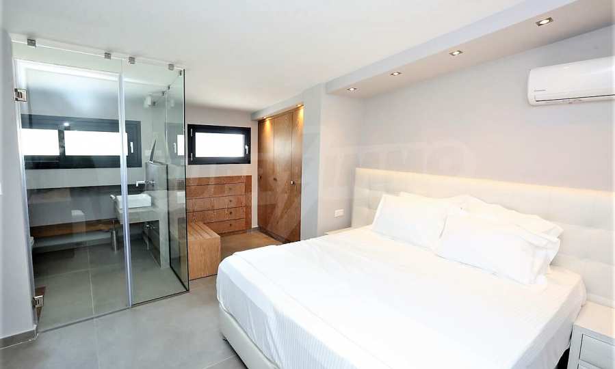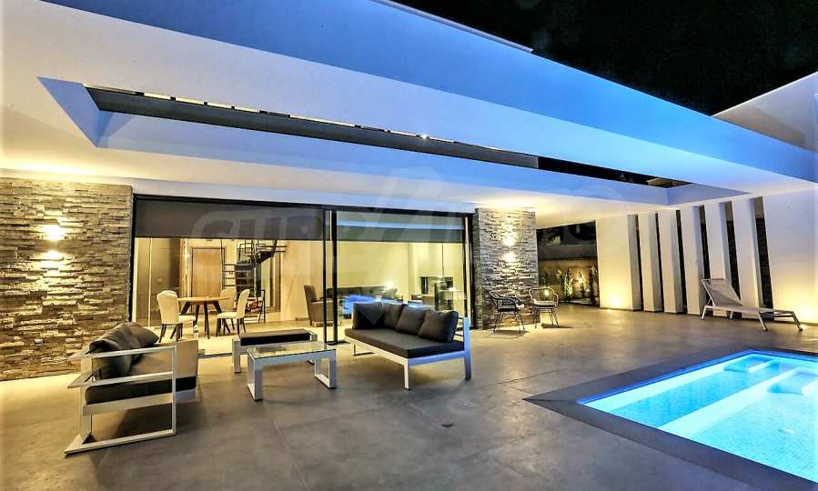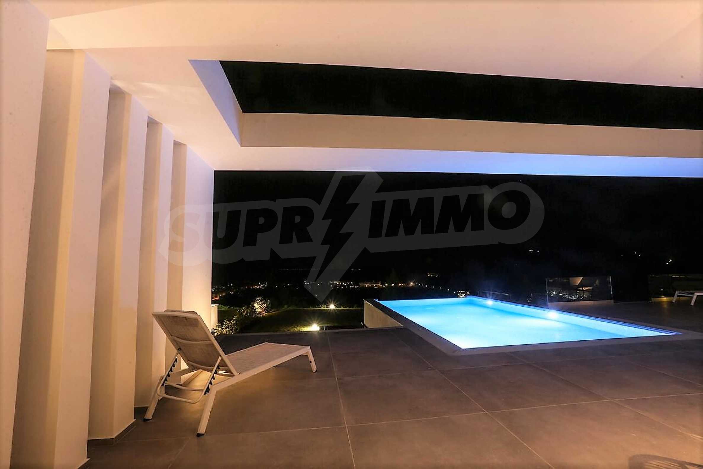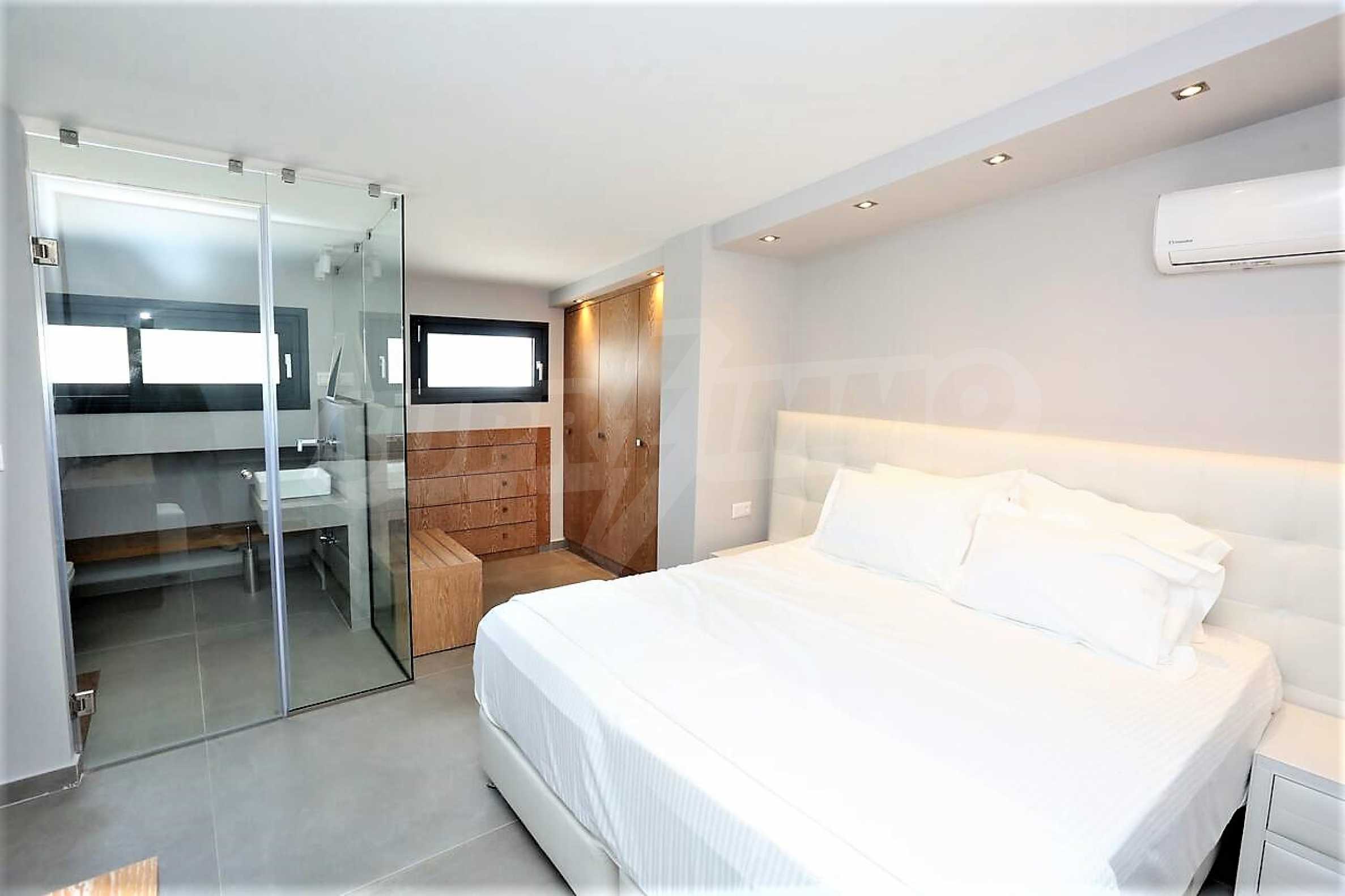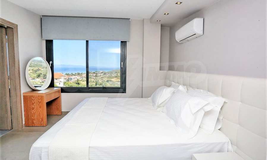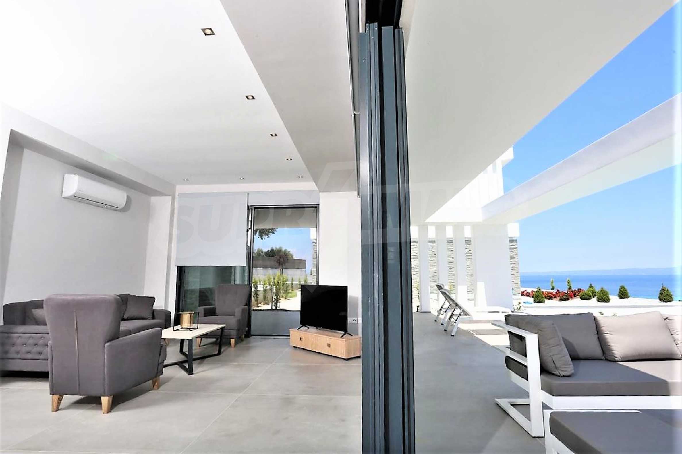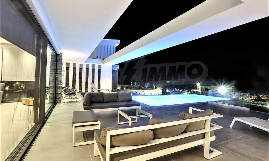 Willa jest częścią małego zamkniętego kompleksu składającego się z 3 niezależnych willi, z których każda ma własny basen i dziedziniec. Nieruchomość wyróżnia się współczesną i nowoczesną architekturą, lokalizacją, a przede wszystkim niezakłóconym, panoramicznym widokiem na turkusowe wody Morza Egejskiego.