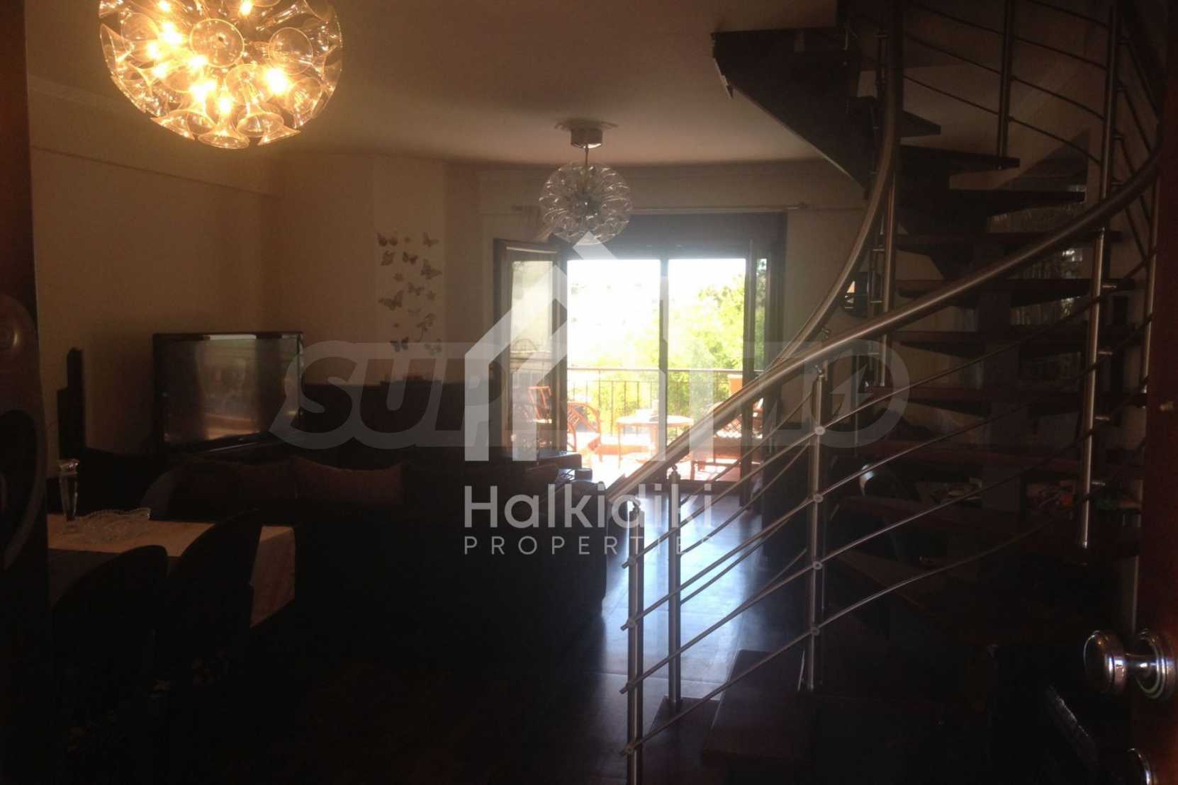 Dwupoziomowy dom dwupoziomowy, 160 m², pierwsze i drugie piętro, w Kassandra, Halkidiki, w centrum wioski, z pięknym widokiem i garażem na parterze. Pierwsze piętro składa się z salonu połączonego z kuchnią, dwóch sypialni i łazienki, drugie piętro składa się z dwóch sypialni, łazienki i pomieszczenia gospodarczego. Nieruchomość została wybudowana w 2004 roku i posiada okna PCV, podłogi z granitu i płytek, duże tarasy, kominek energetyczny, jacuzzi oraz drzwi pancerne