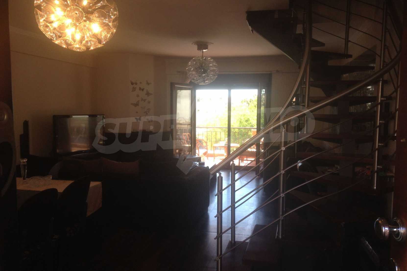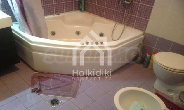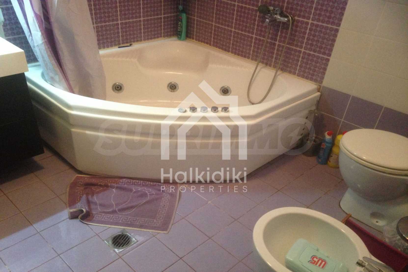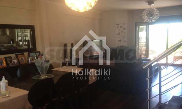 Dwupoziomowy dom dwupoziomowy, 160 m², pierwsze i drugie piętro, w Kassandra, Halkidiki, w centrum wioski, z pięknym widokiem i garażem na parterze. Pierwsze piętro składa się z salonu połączonego z kuchnią, dwóch sypialni i łazienki, drugie piętro składa się z dwóch sypialni, łazienki i pomieszczenia gospodarczego. Nieruchomość została wybudowana w 2004 roku i posiada okna PCV, podłogi z granitu i płytek, duże tarasy, kominek energetyczny, jacuzzi oraz drzwi pancerne