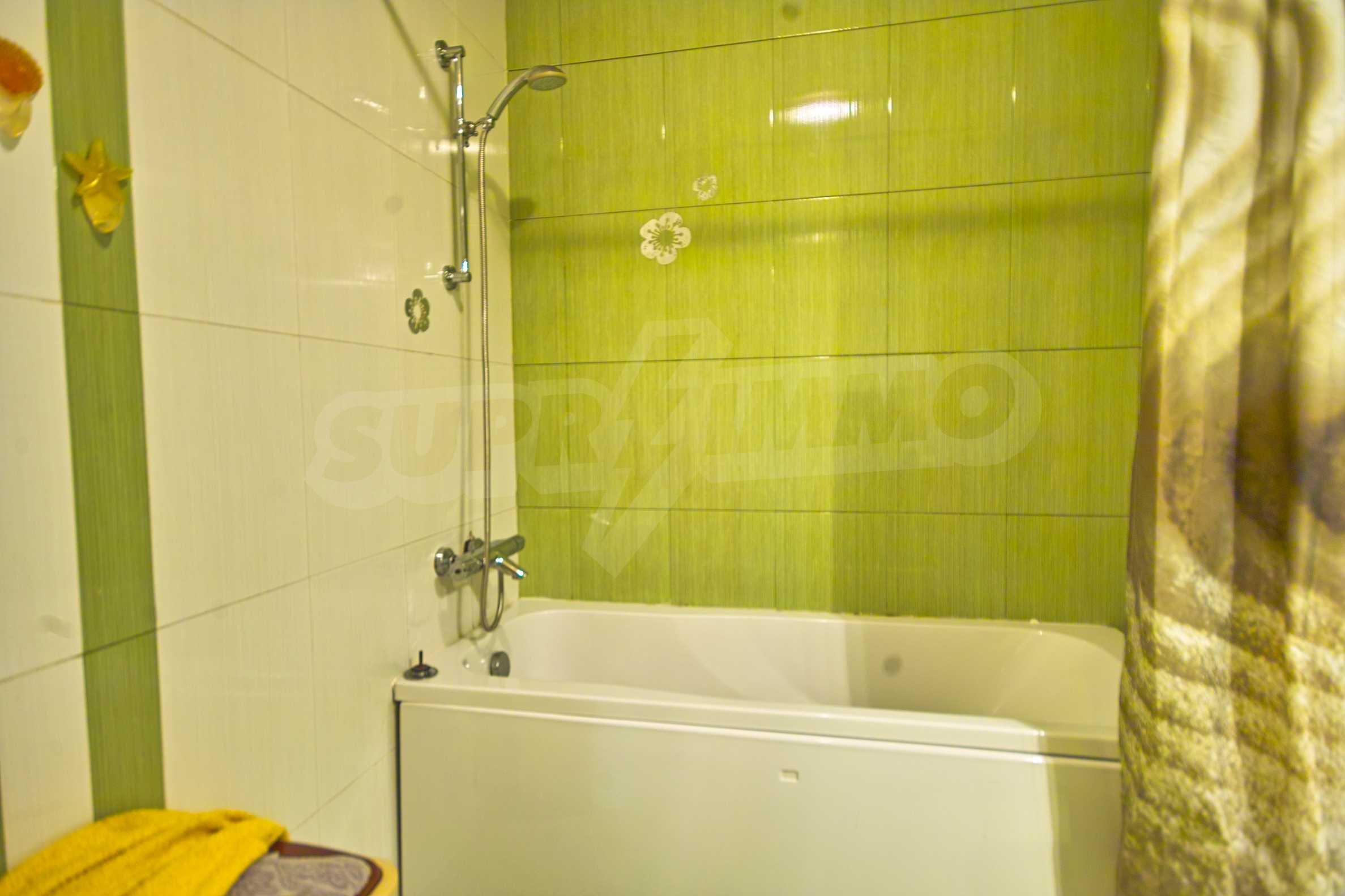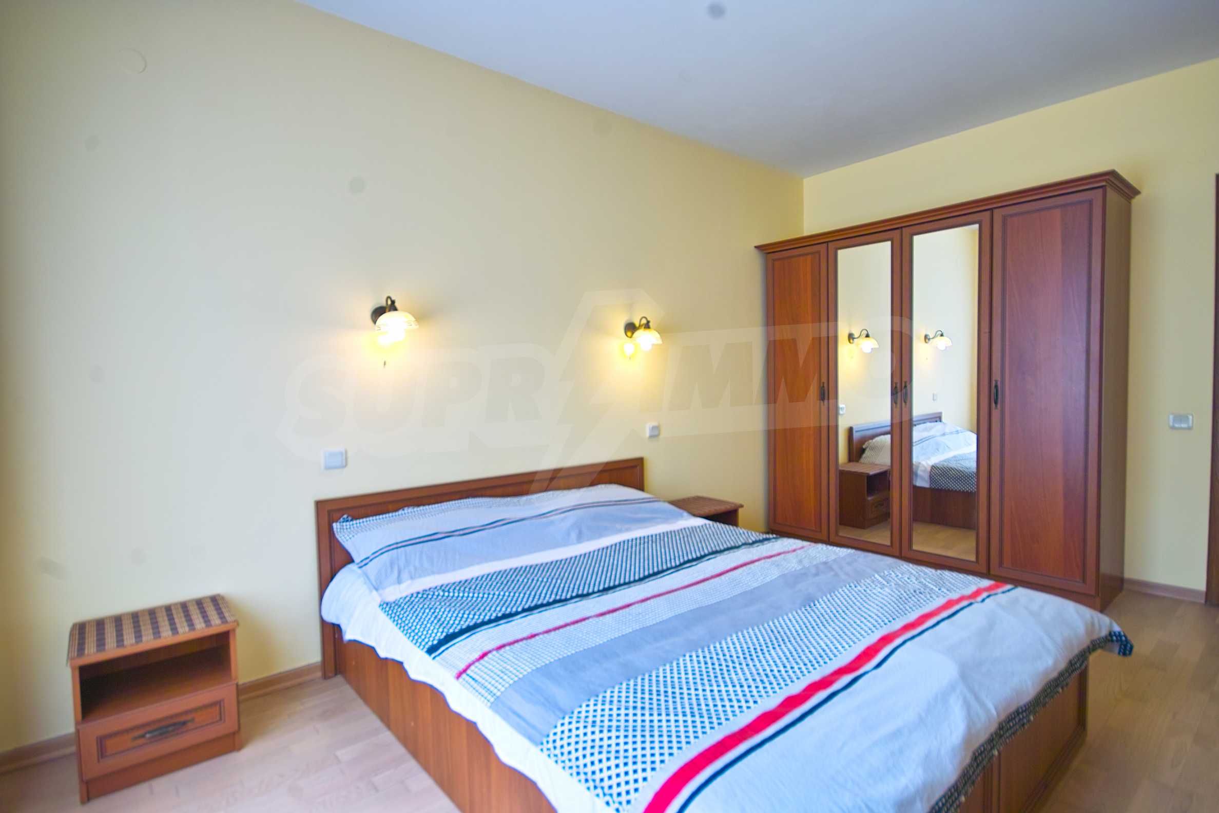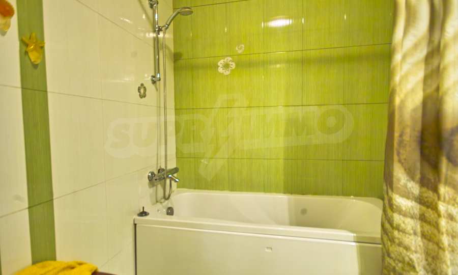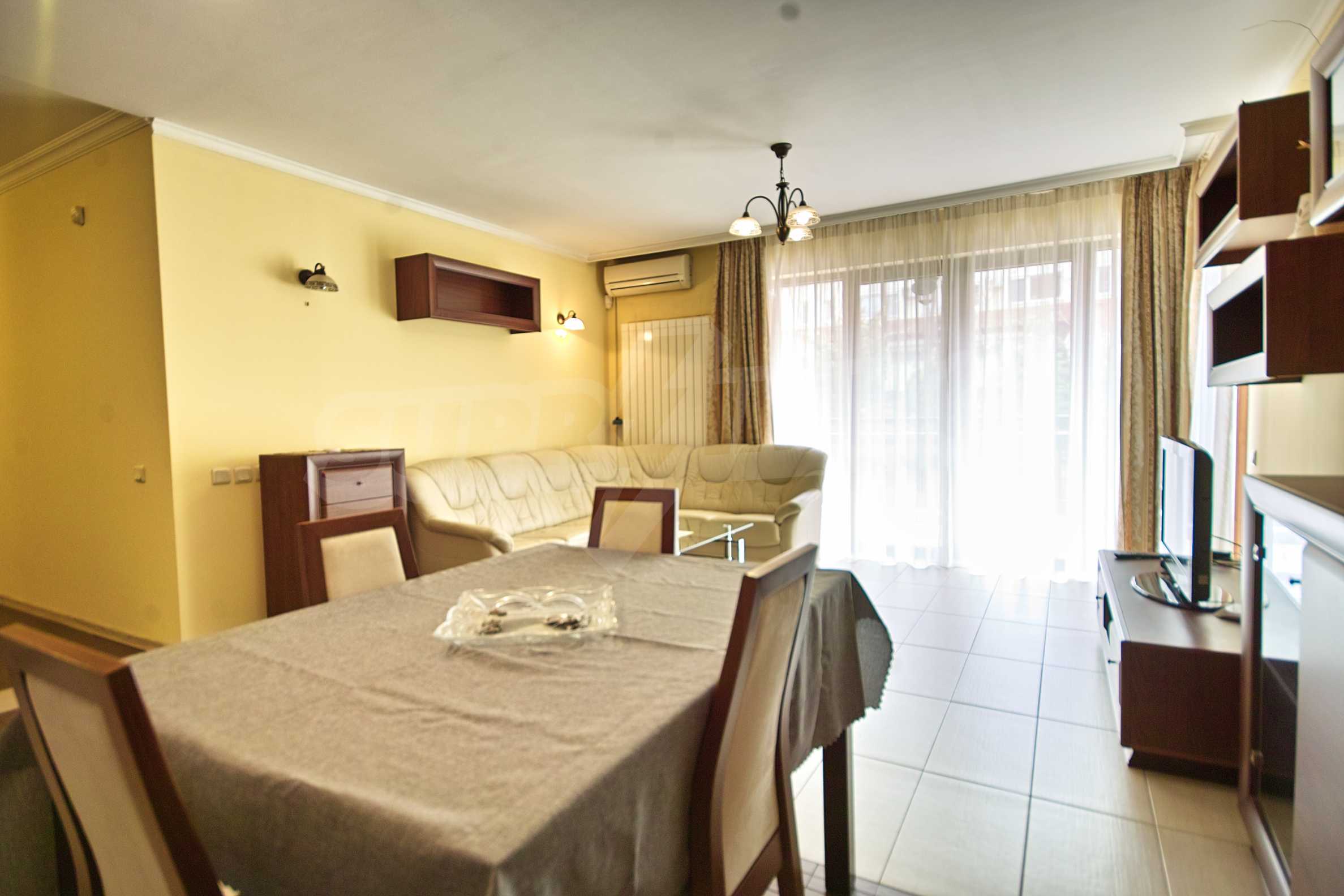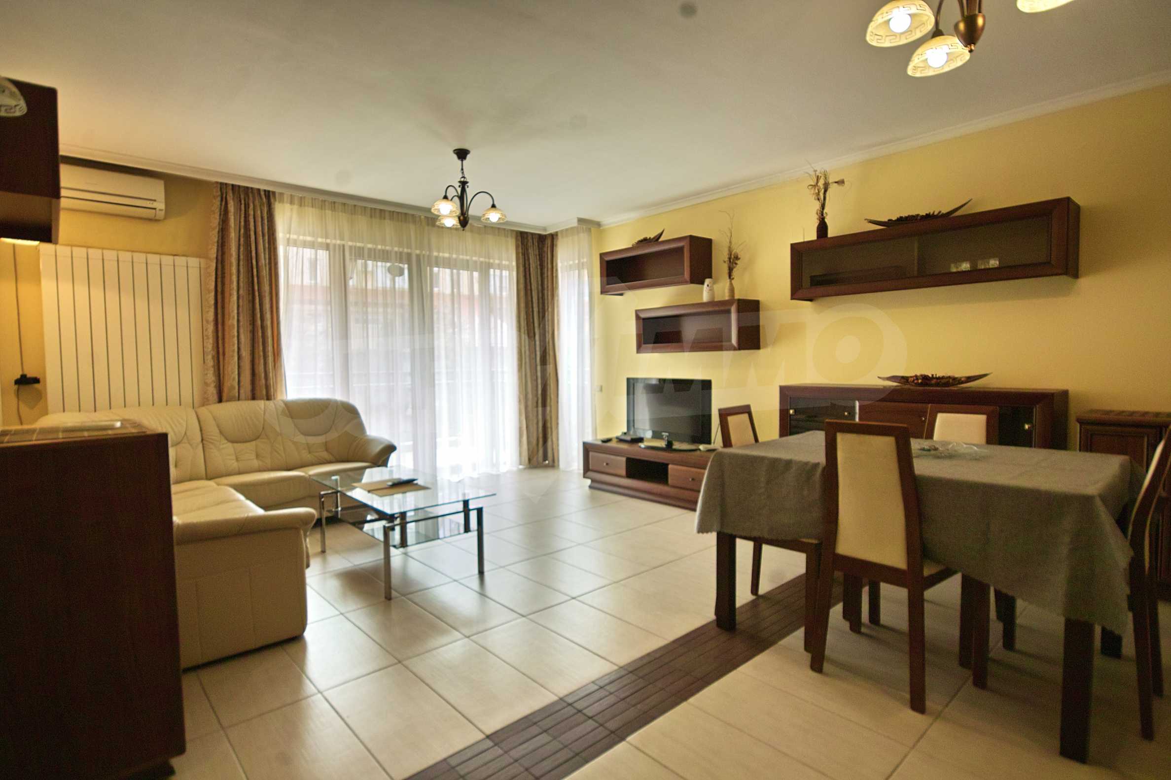 Mieszkanie znajduje się na drugim piętrze i jest w całości skierowane na południe. Ogrzewanie gazowe z indywidualnym licznikiem. Dla wygody lokatorów w miesiącach letnich w salonie zainstalowano klimatyzację. Podłoga wykonana jest z wysokiej jakości płytek granitowych i parkietu. Wszystkie szafki, łóżka i garderoby wykonane są z wysokiej jakości importowanego drewna. Mieszkanie oferowane jest w pełni umeblowane, wyposażone we wszystkie meble i sprzęty niezbędne do komfortowego życia. W cenę wynajmu wliczone jest korzystanie z garażu naziemnego.