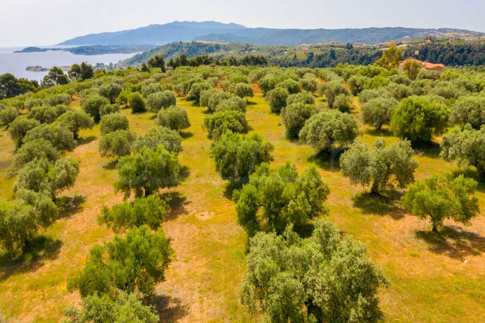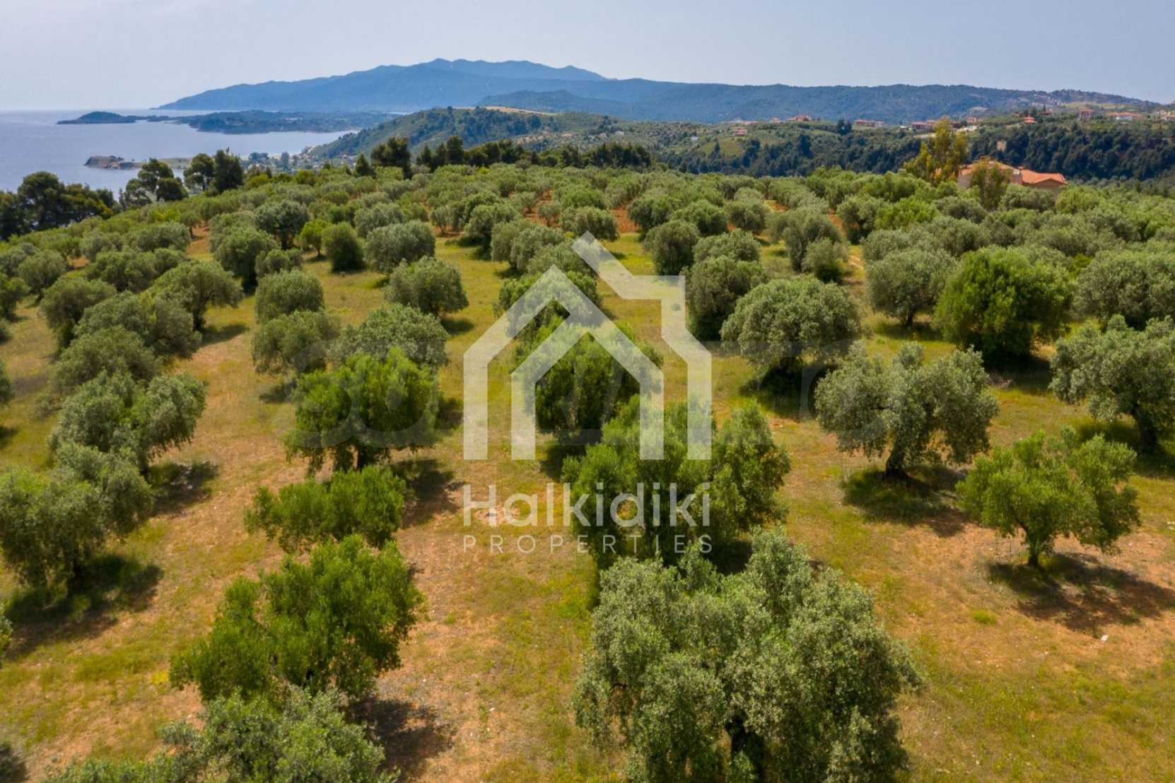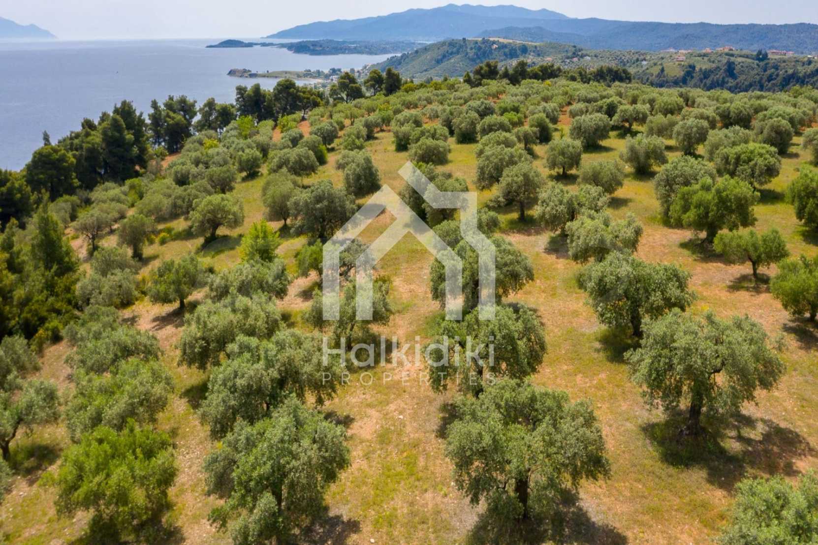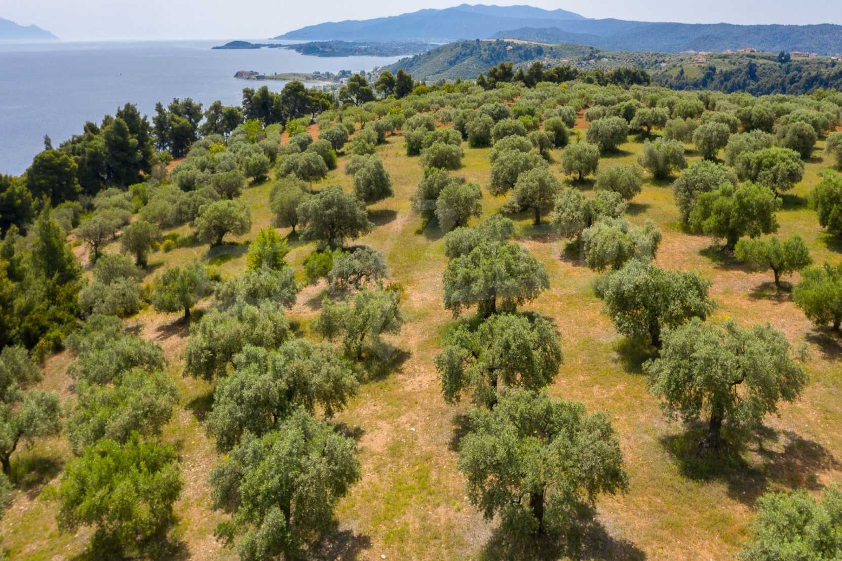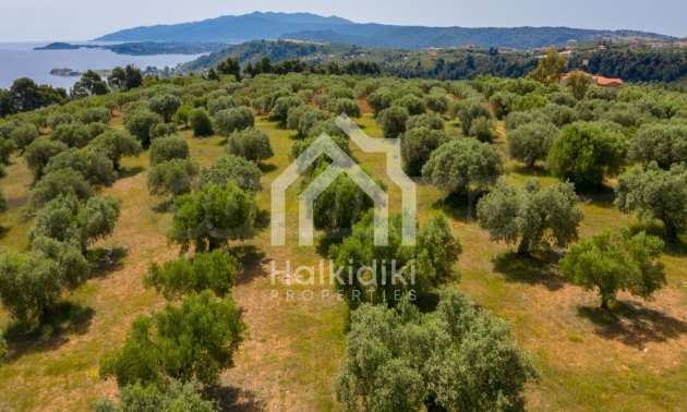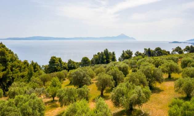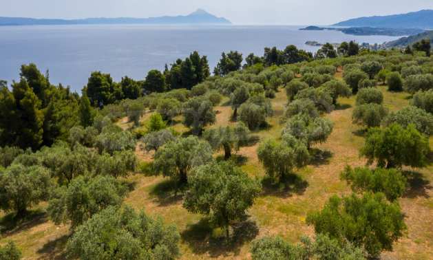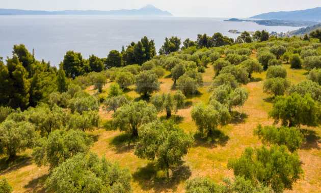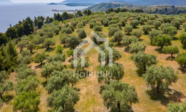 Pole, Sithonia, 9312 m², widok na morze, otwarty widok, orientacja wschodnia, poza miastem, pochyły, blisko morza, panorama, główne drogi, pole oliwne w środku, nadaje się do systemów fotowoltaicznych, kompletny - budynek, idealny do domu , Idealny do użytku komercyjnego, Idealny pod zabudowę domków letniskowych