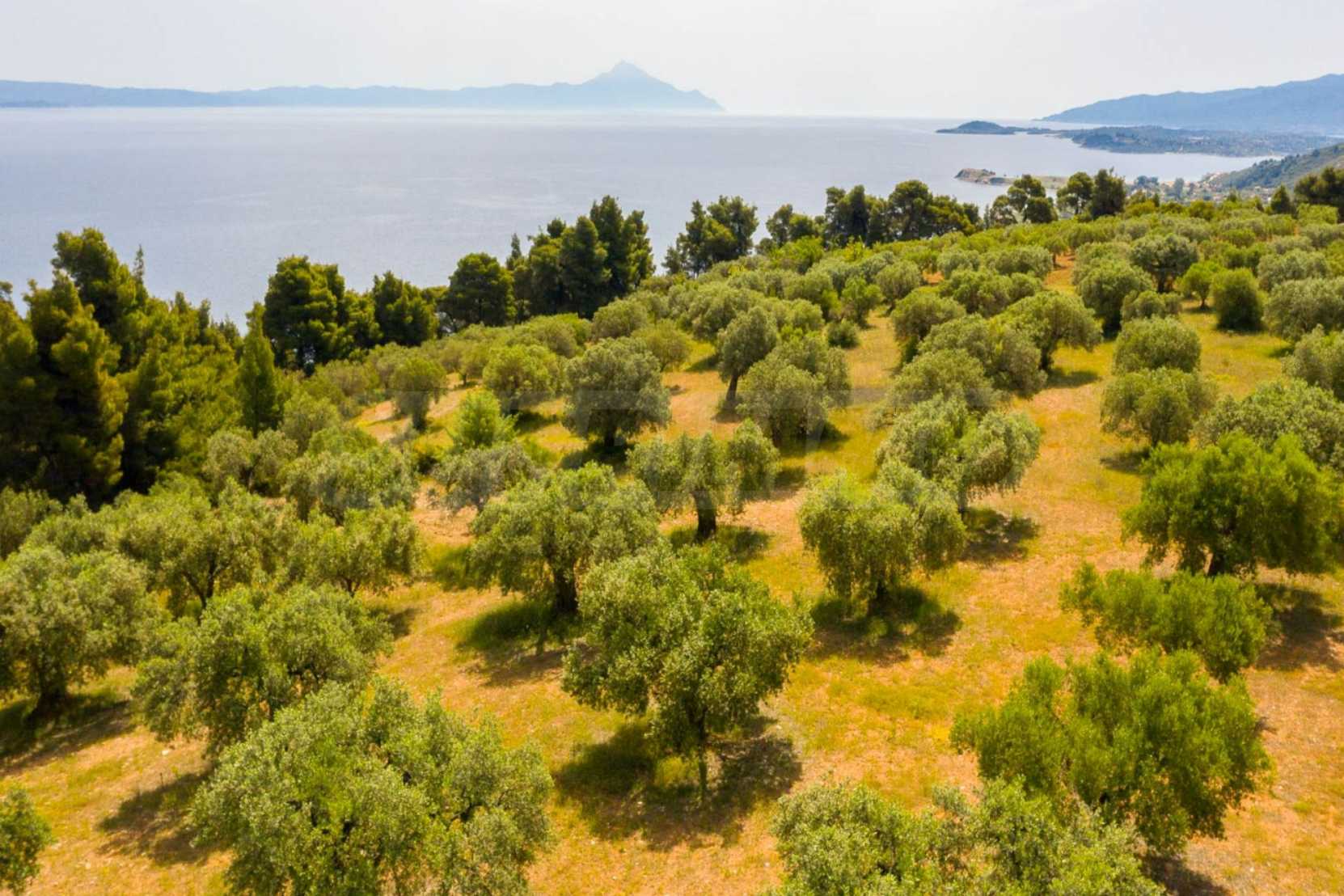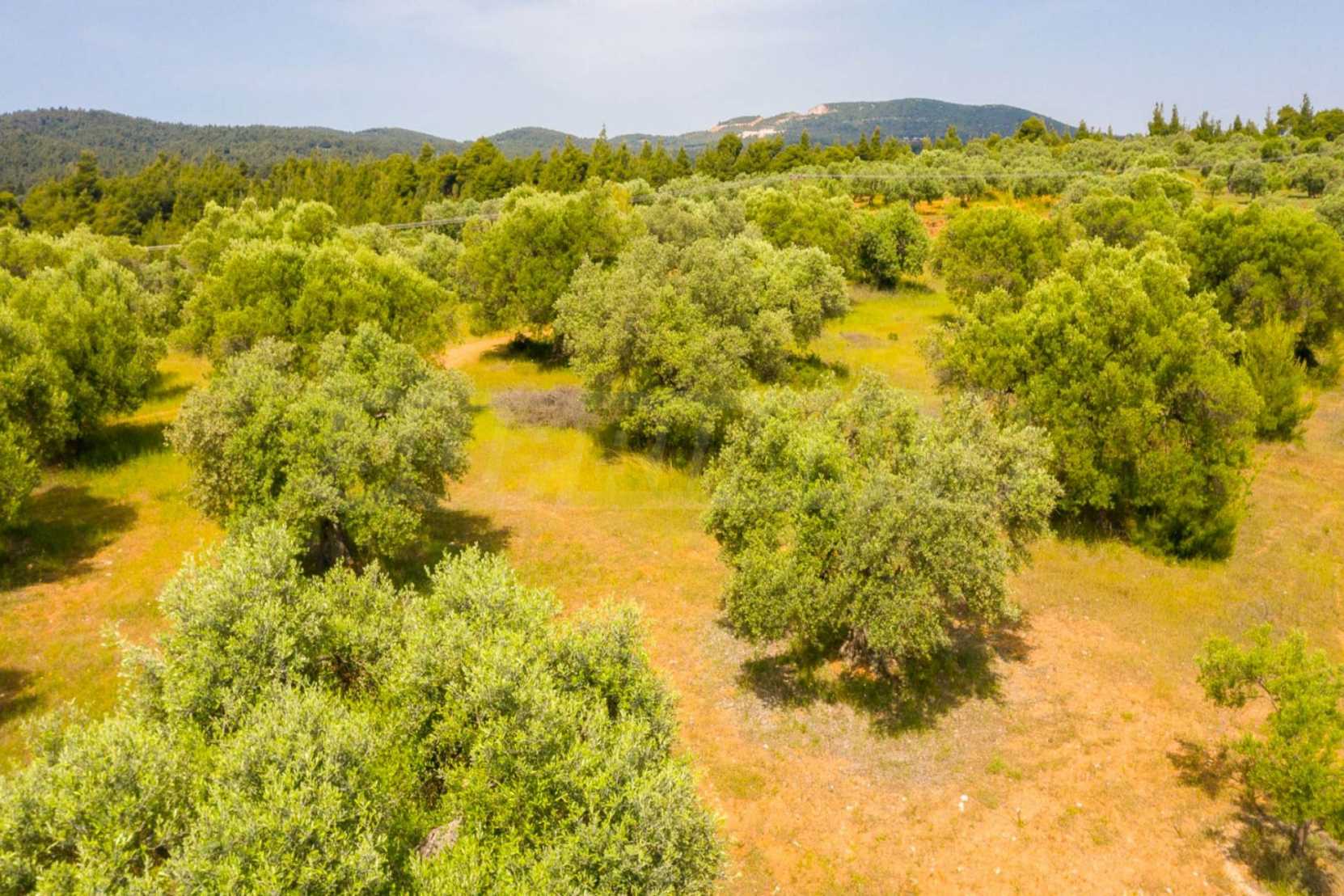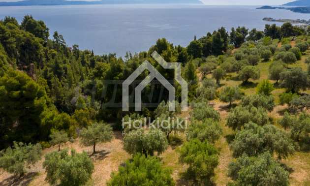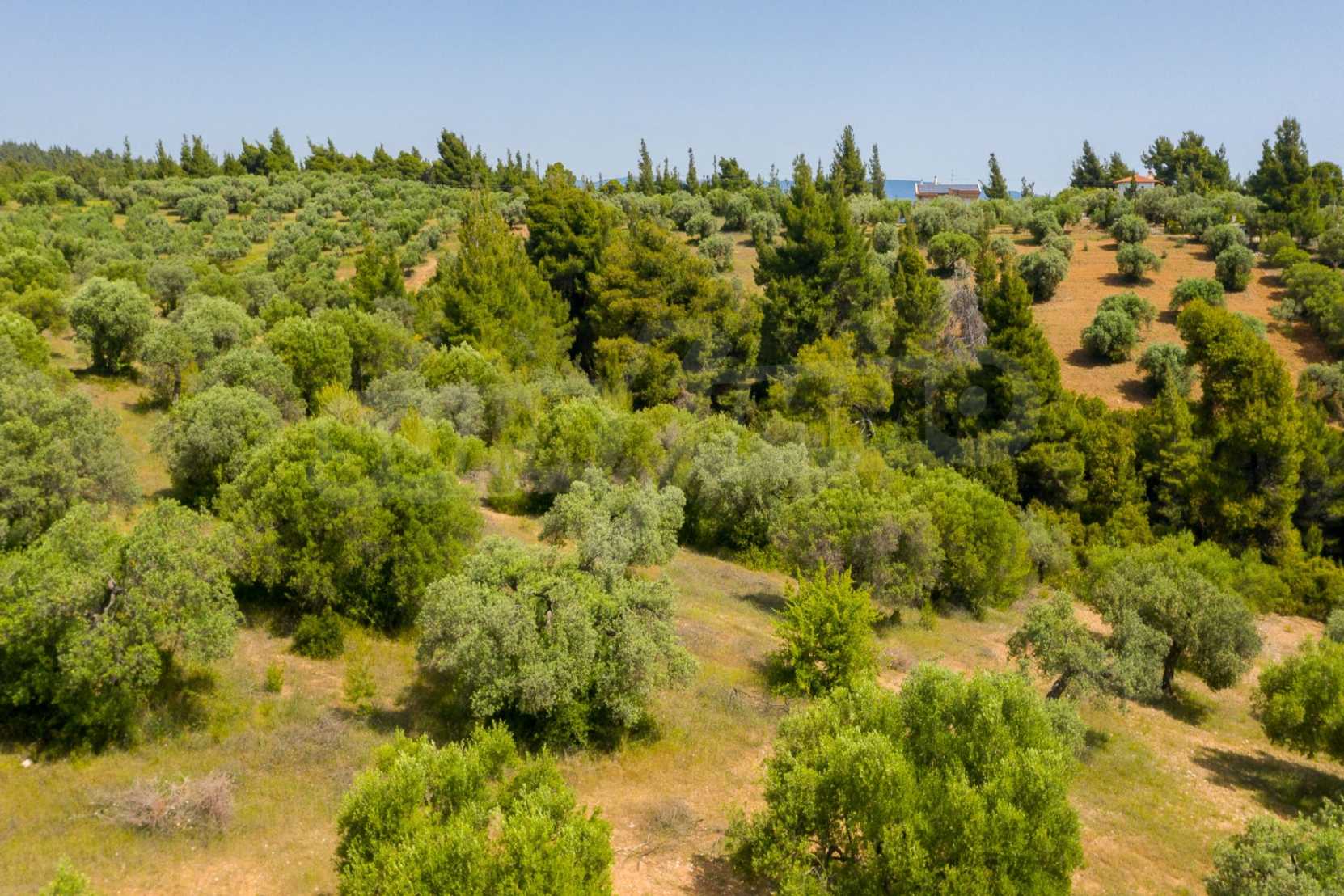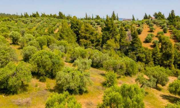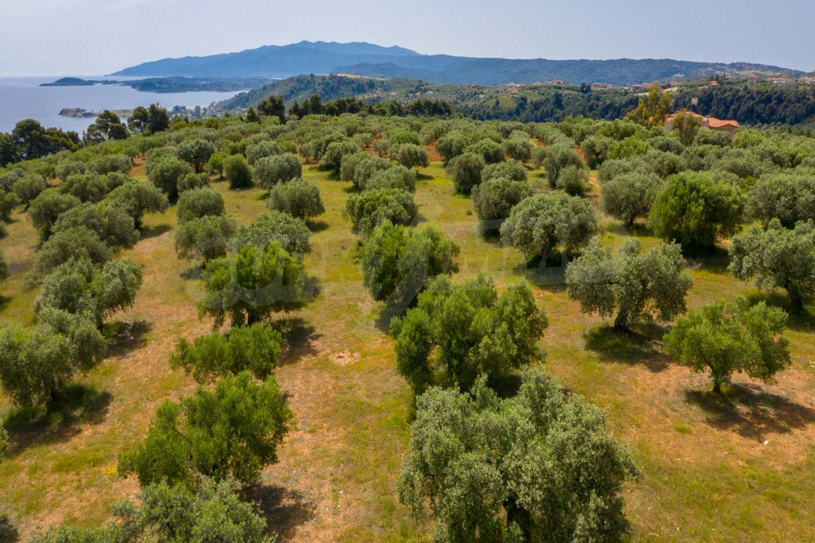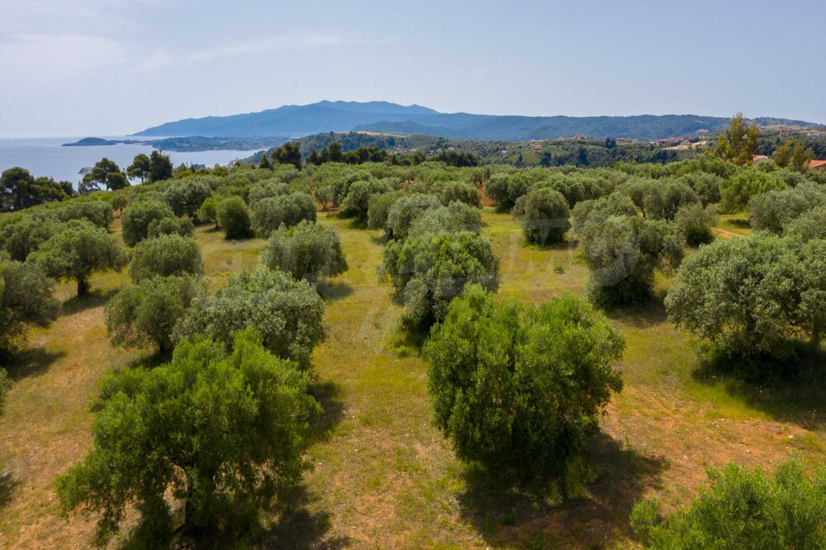 Pole, Sithonia, 9312 m², widok na morze, otwarty widok, orientacja wschodnia, poza miastem, pochyły, blisko morza, panorama, główne drogi, pole oliwne w środku, nadaje się do systemów fotowoltaicznych, kompletny - budynek, idealny do domu , Idealny do użytku komercyjnego, Idealny pod zabudowę domków letniskowych