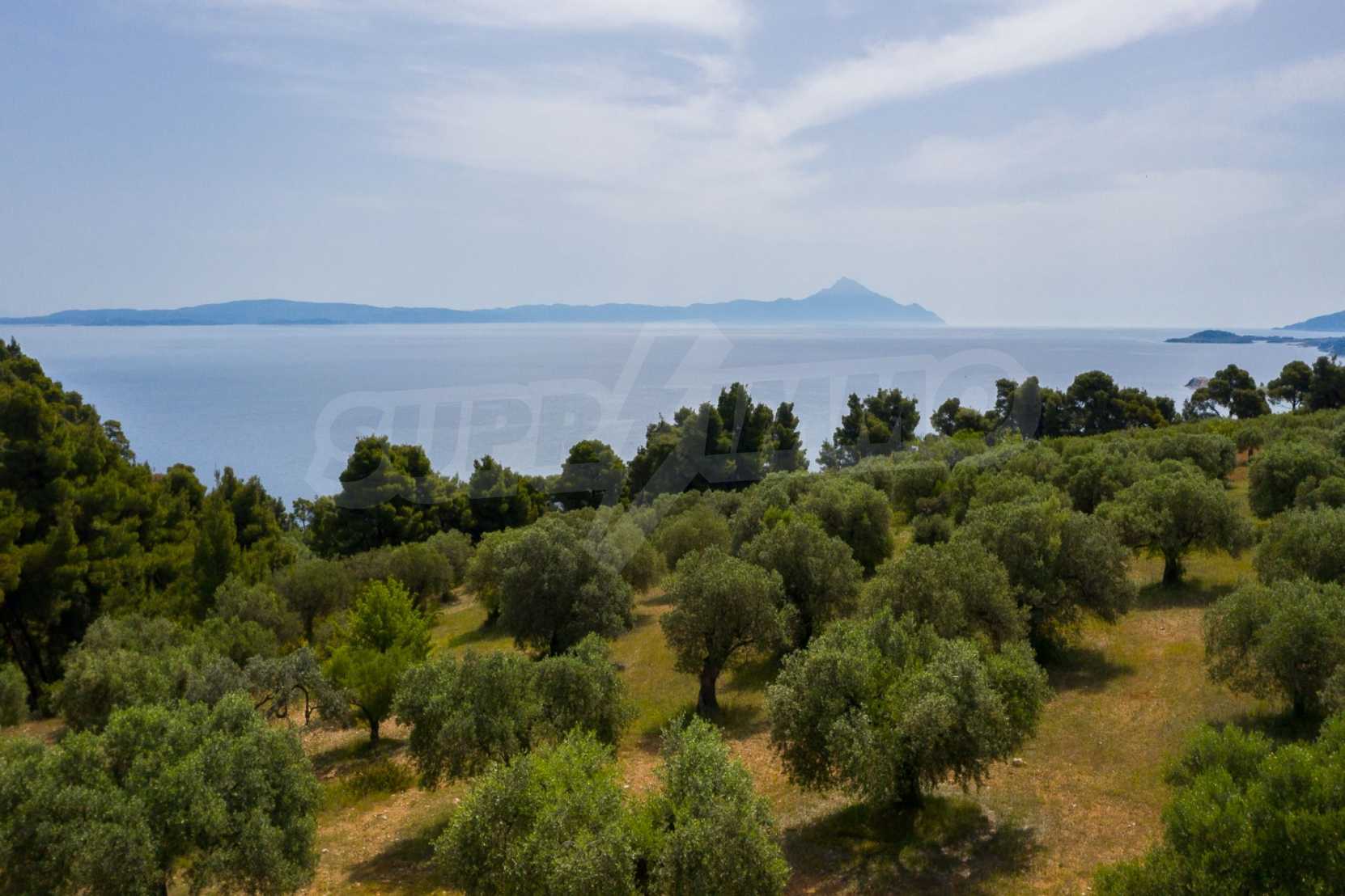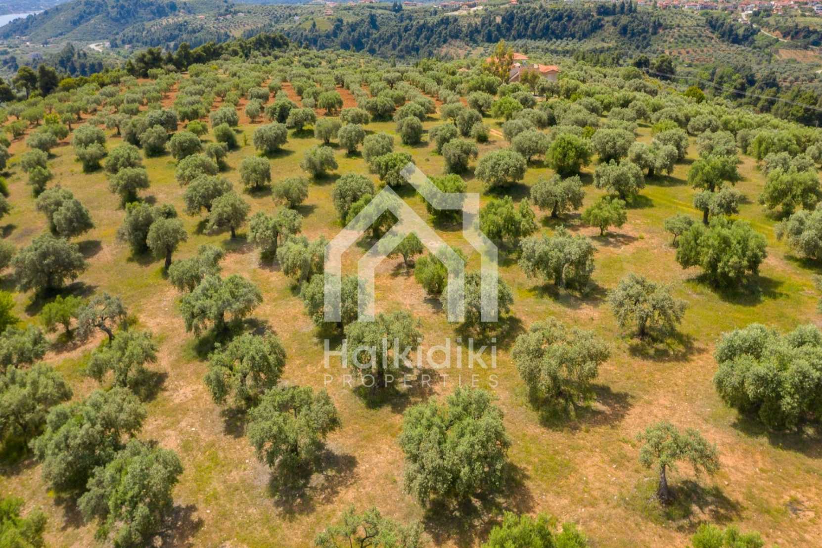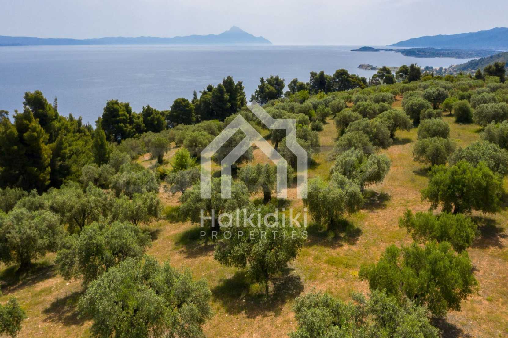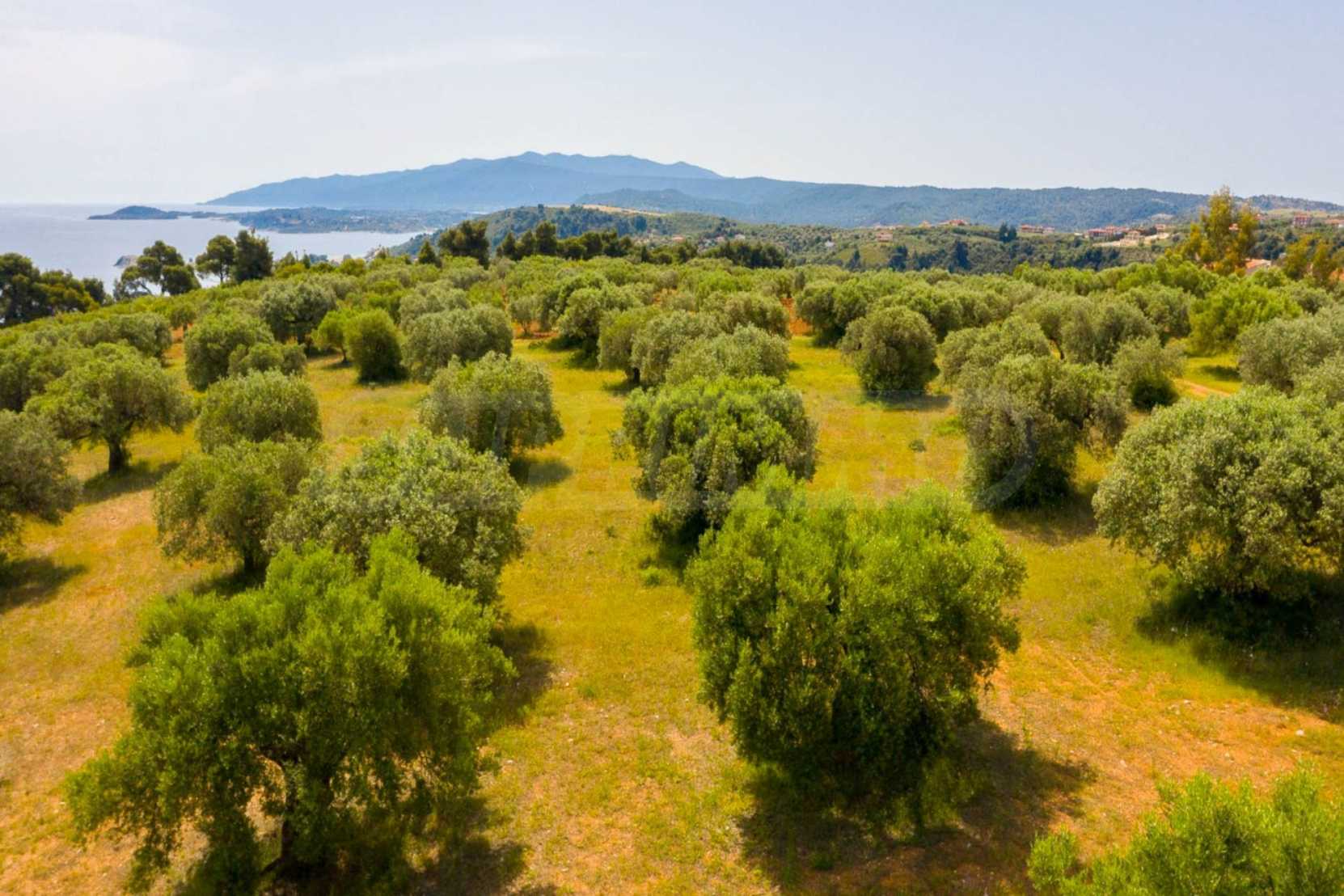 Pole, Sithonia, 9312 m², widok na morze, otwarty widok, orientacja wschodnia, poza miastem, pochyły, blisko morza, panorama, główne drogi, pole oliwne w środku, nadaje się do systemów fotowoltaicznych, kompletny - budynek, idealny do domu , Idealny do użytku komercyjnego, Idealny pod zabudowę domków letniskowych
