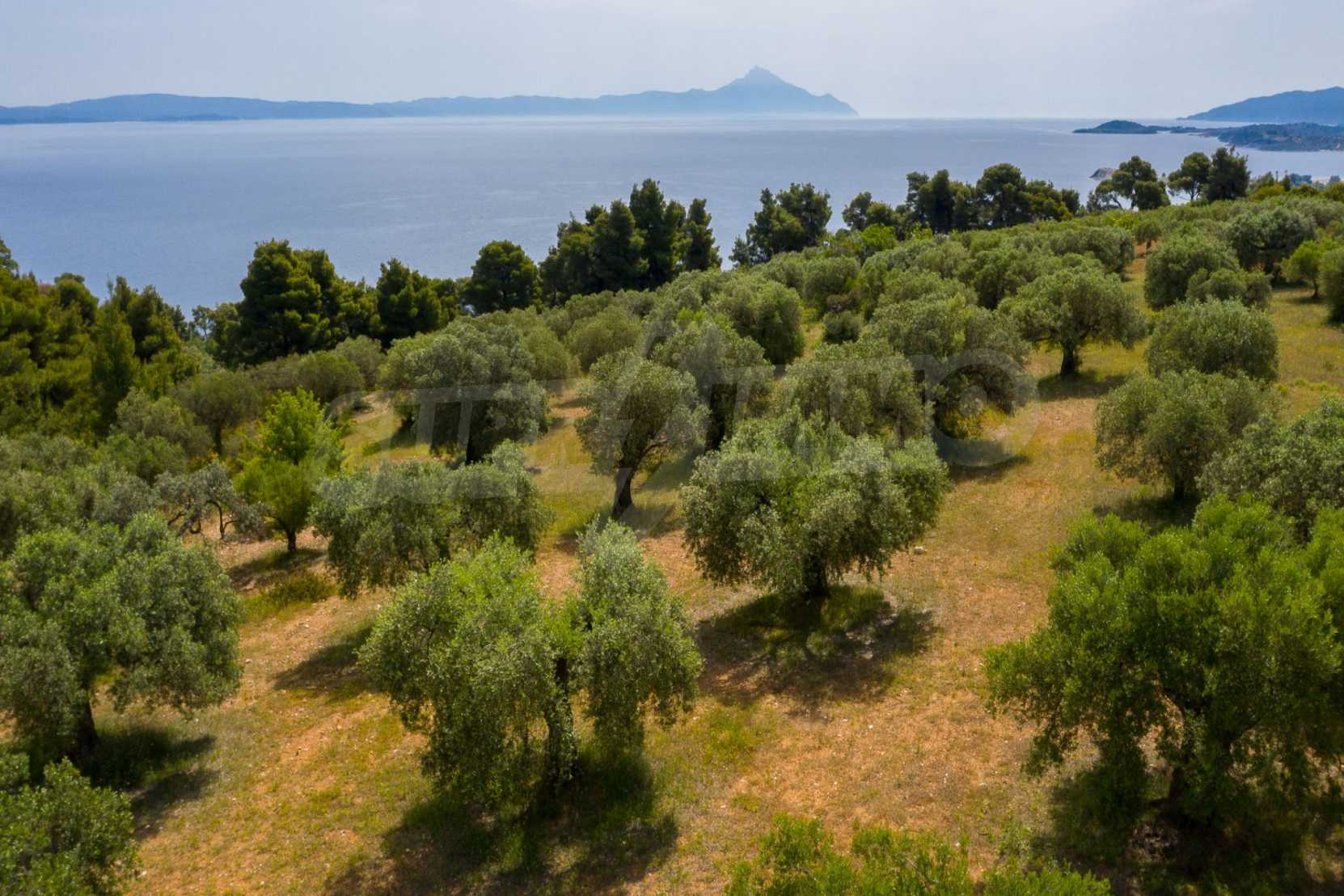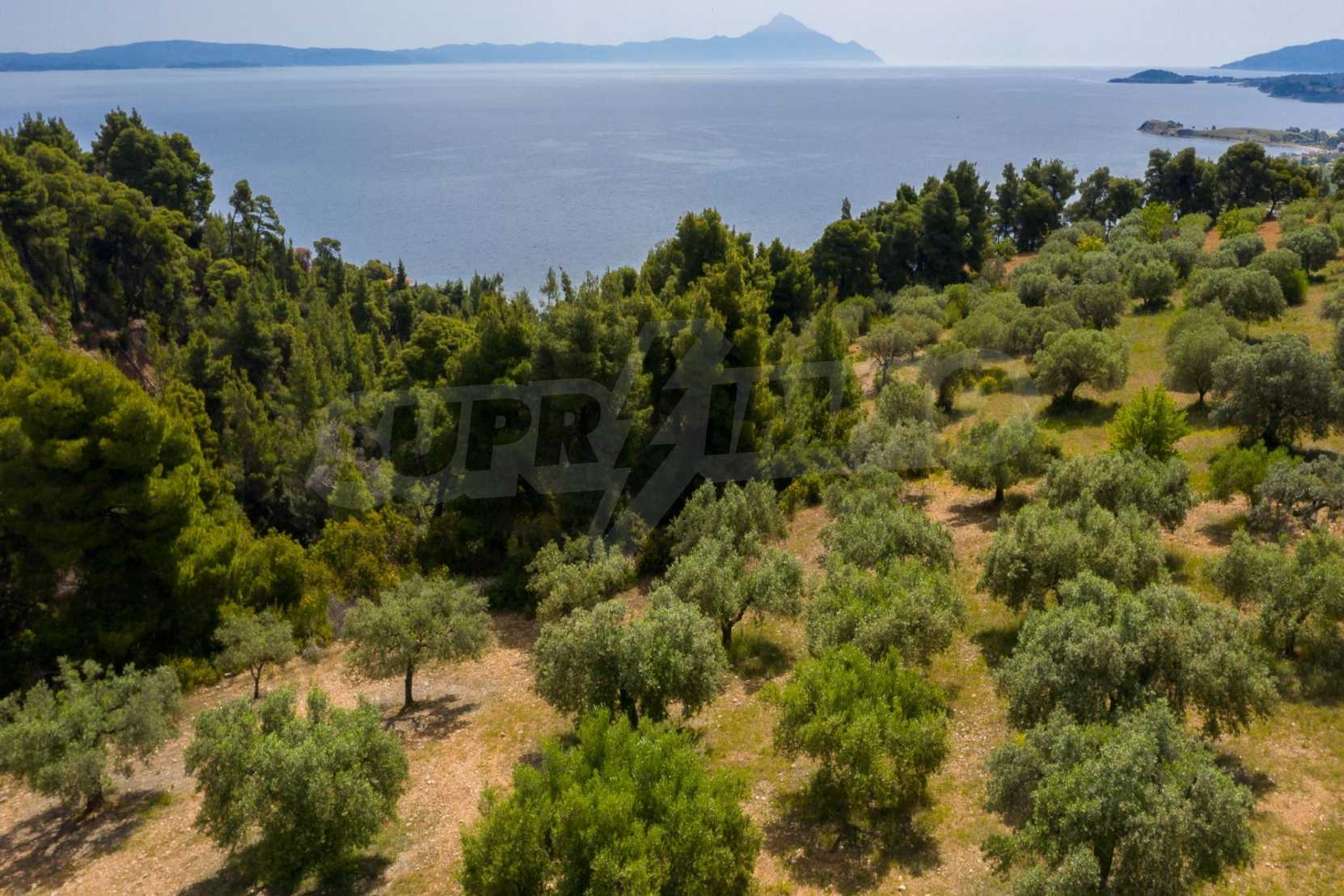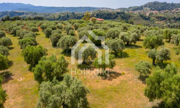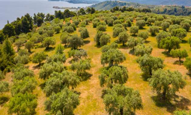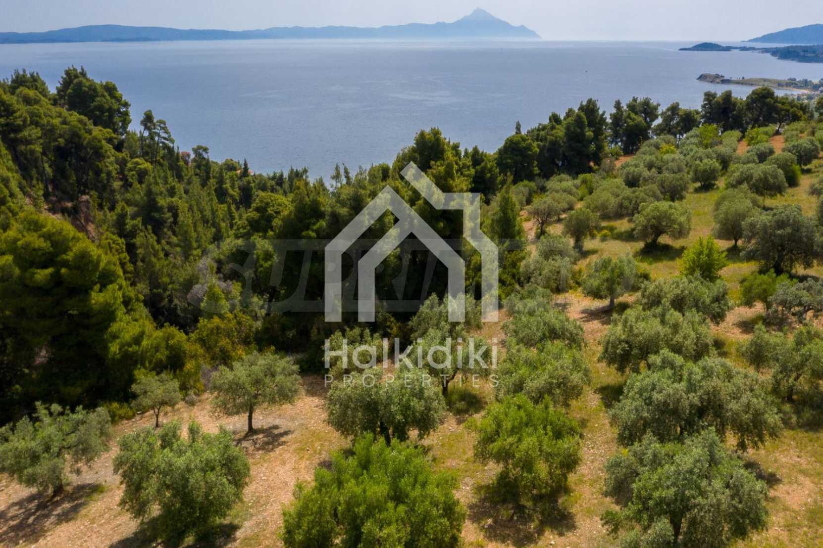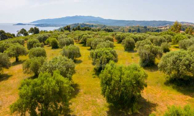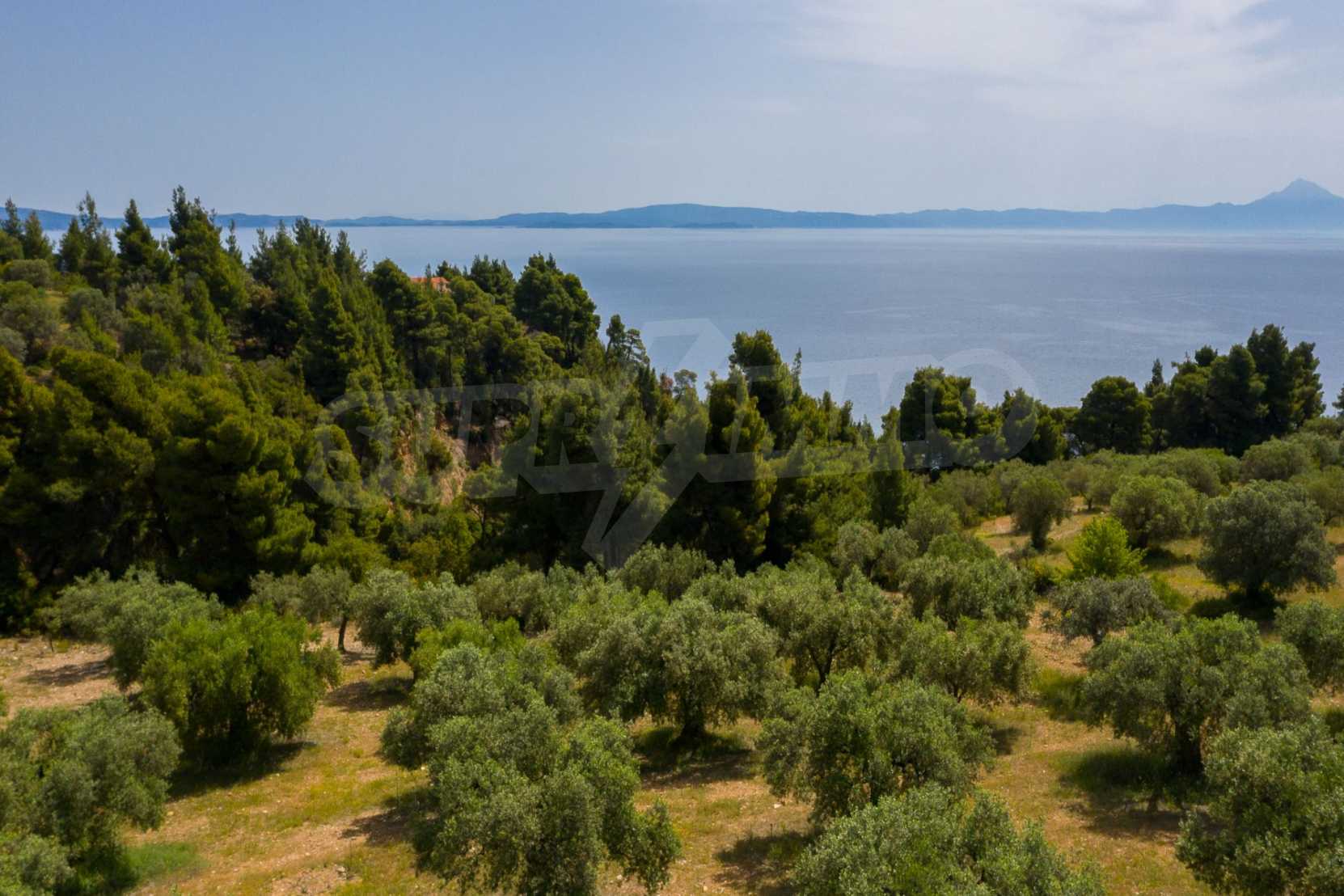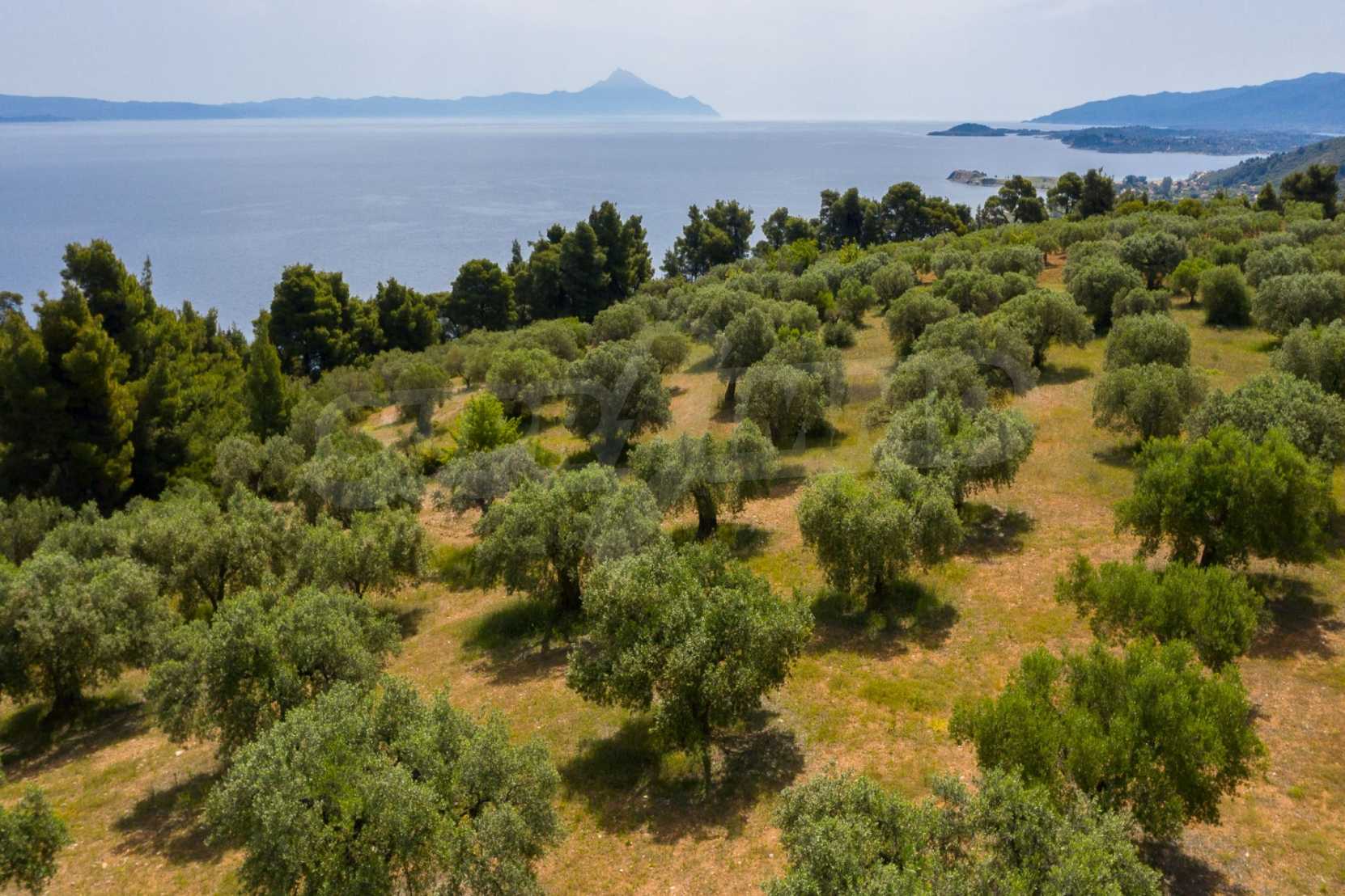 Pole, Sithonia, 9312 m², widok na morze, otwarty widok, orientacja wschodnia, poza miastem, pochyły, blisko morza, panorama, główne drogi, pole oliwne w środku, nadaje się do systemów fotowoltaicznych, kompletny - budynek, idealny do domu , Idealny do użytku komercyjnego, Idealny pod zabudowę domków letniskowych