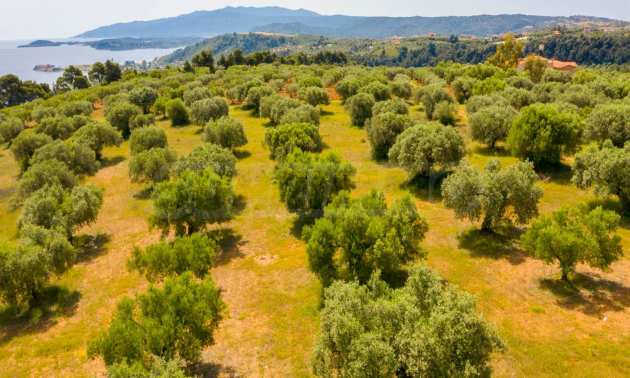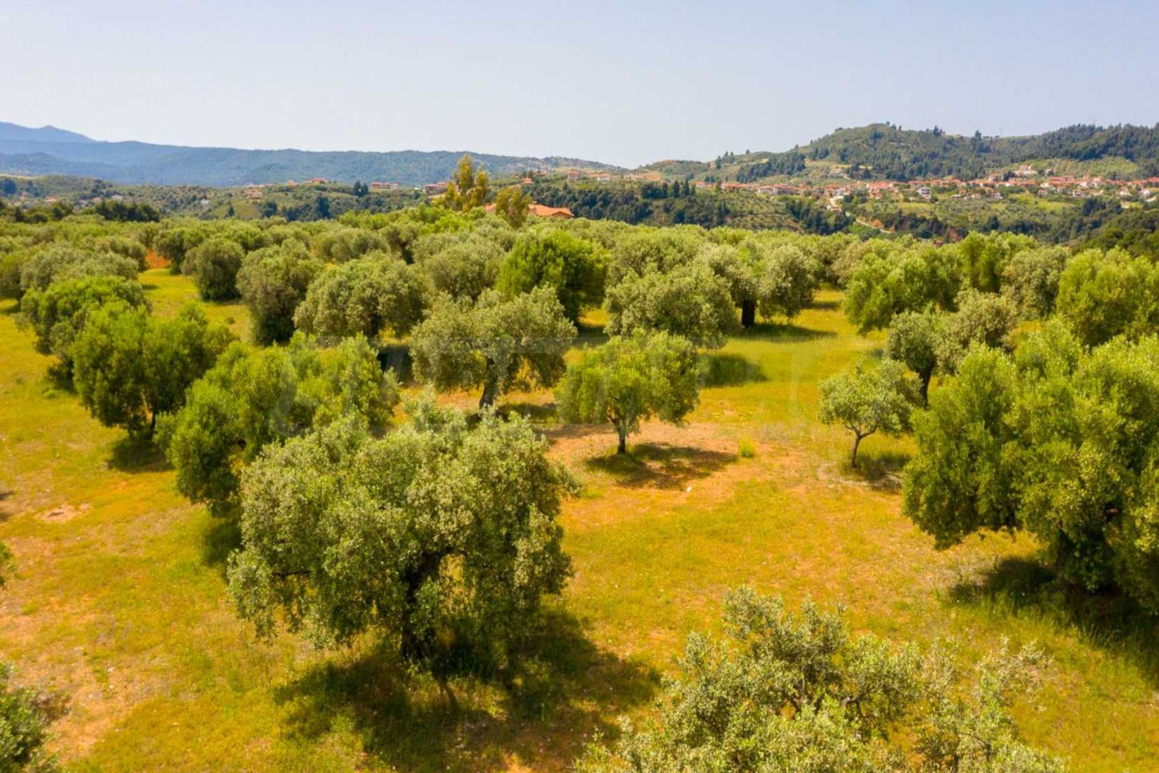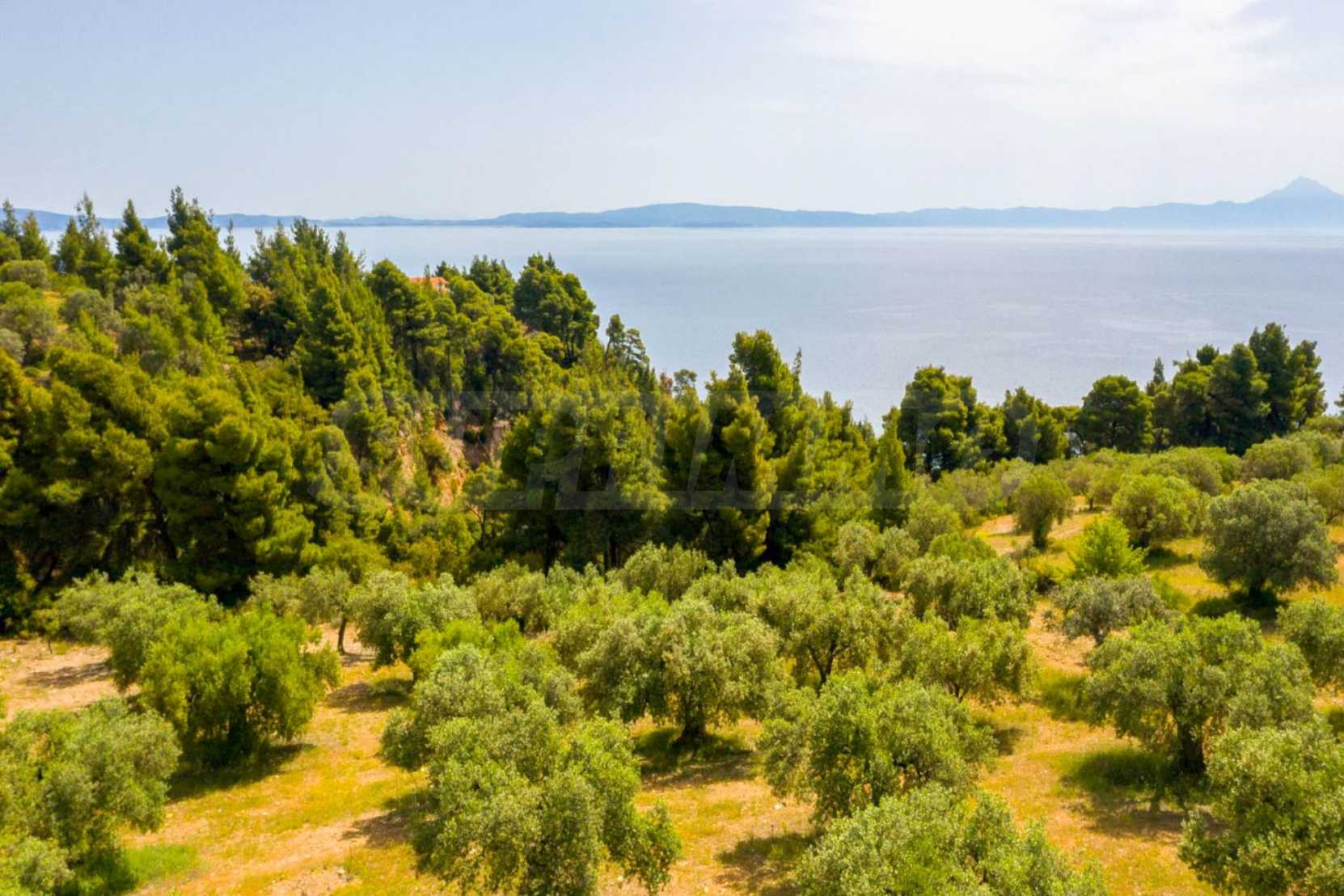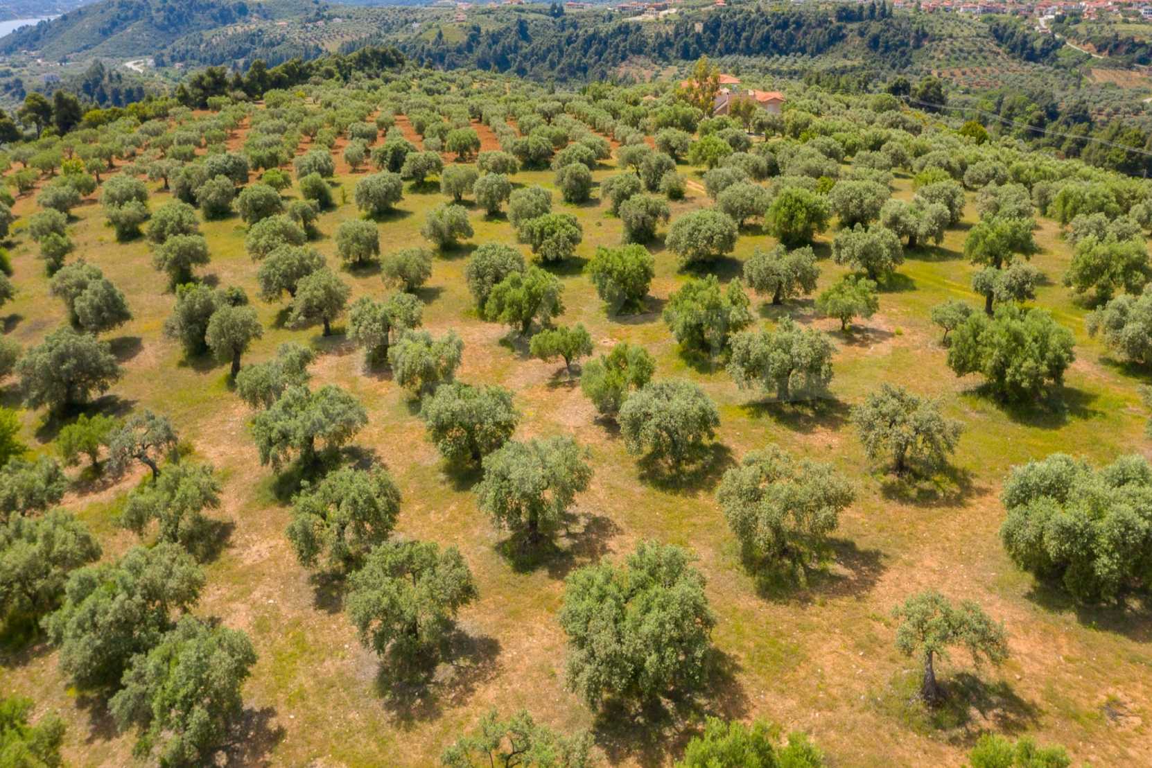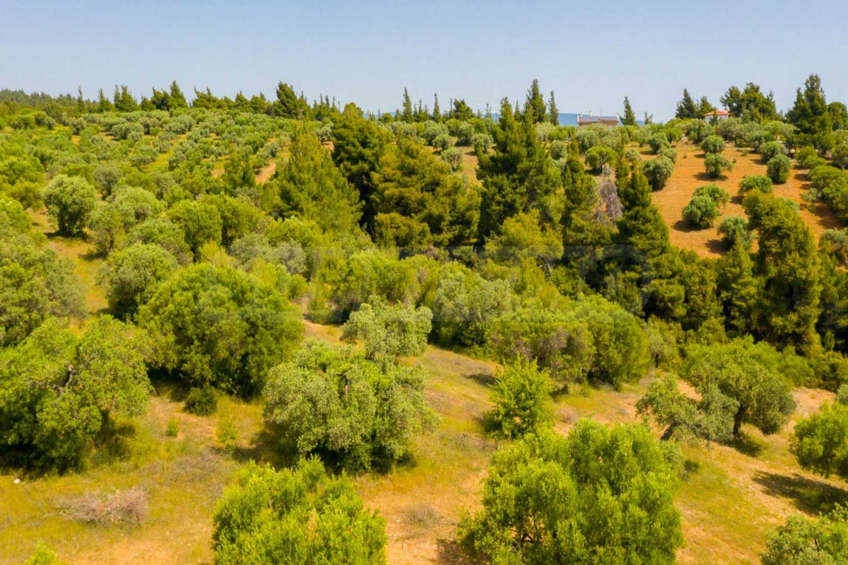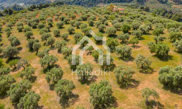 Pole, Sithonia, 9312 m², widok na morze, otwarty widok, orientacja wschodnia, poza miastem, pochyły, blisko morza, panorama, główne drogi, pole oliwne w środku, nadaje się do systemów fotowoltaicznych, kompletny - budynek, idealny do domu , Idealny do użytku komercyjnego, Idealny pod zabudowę domków letniskowych