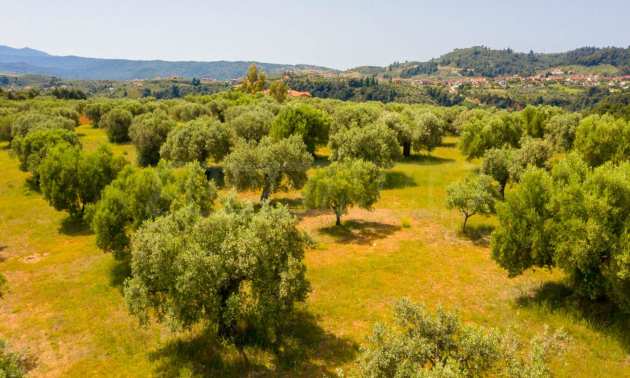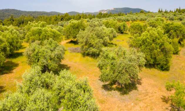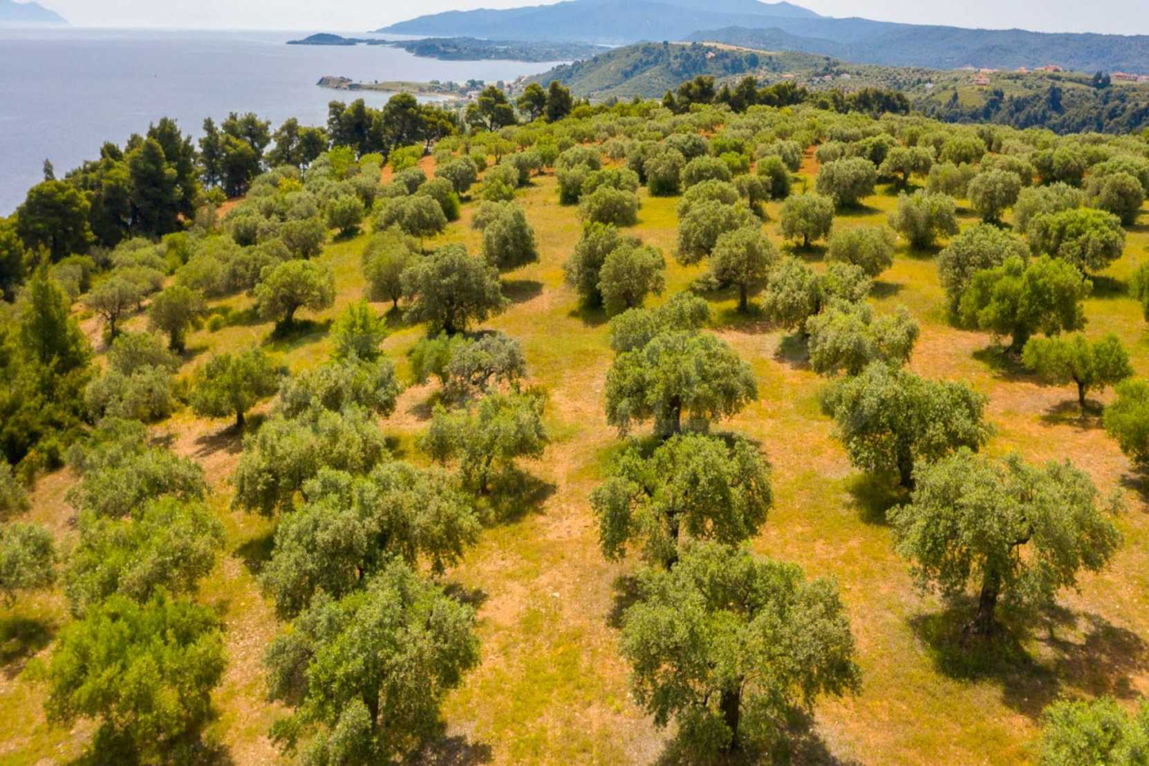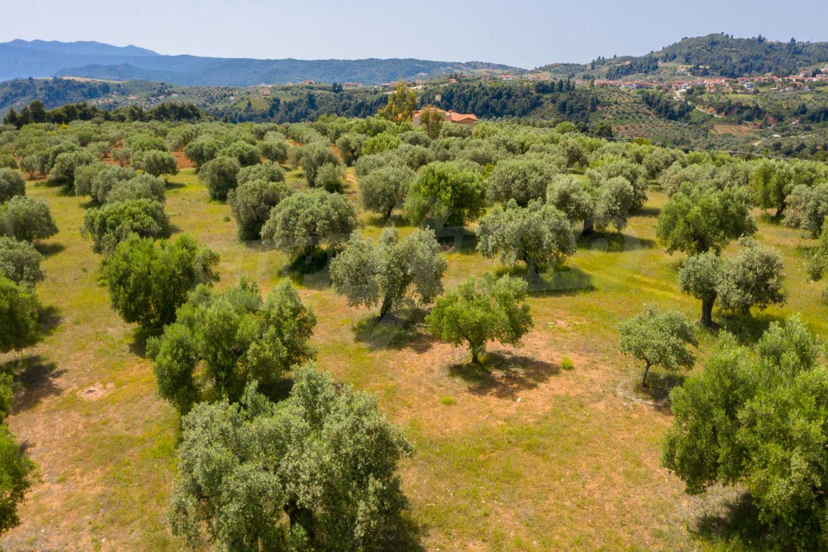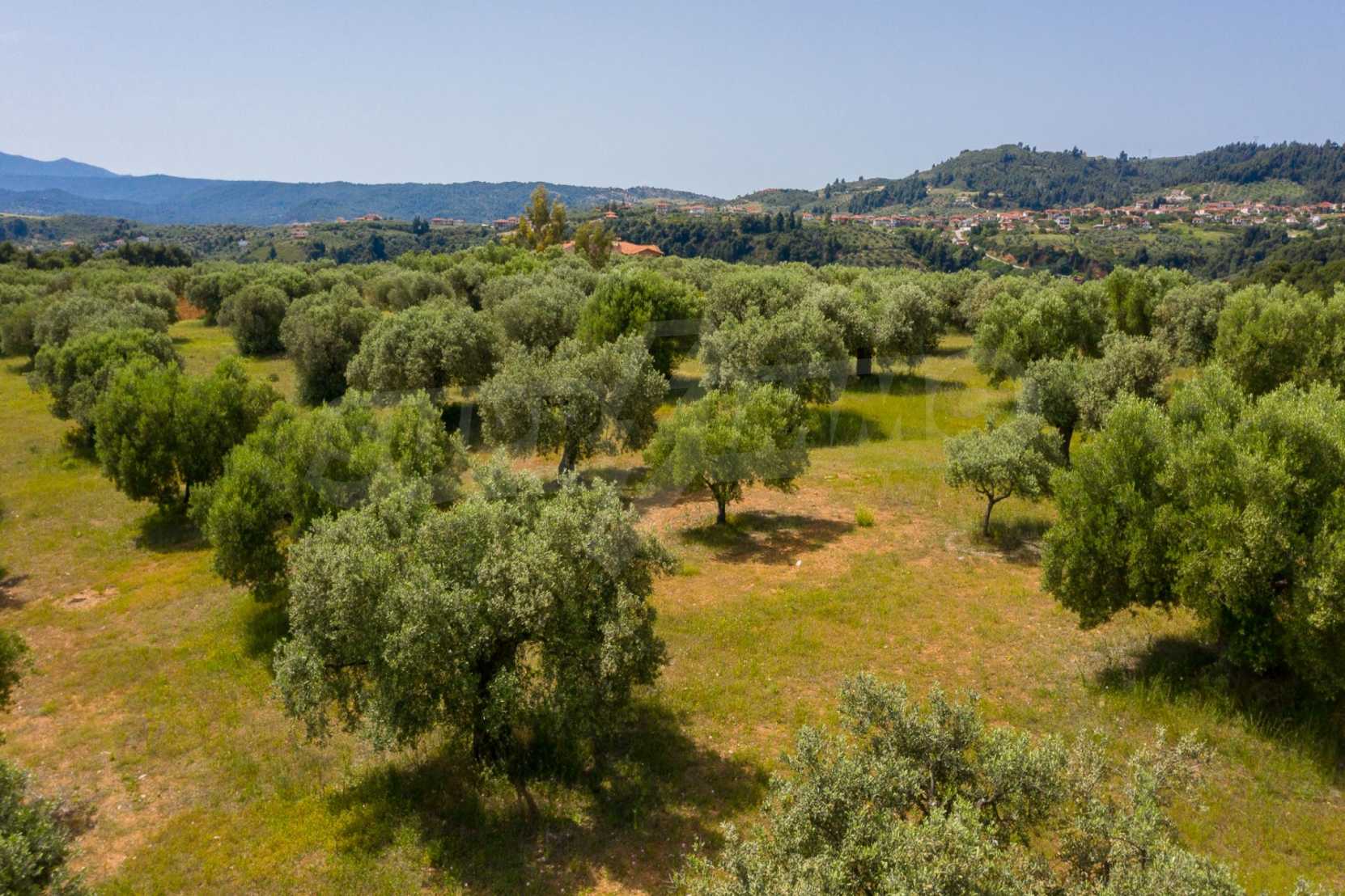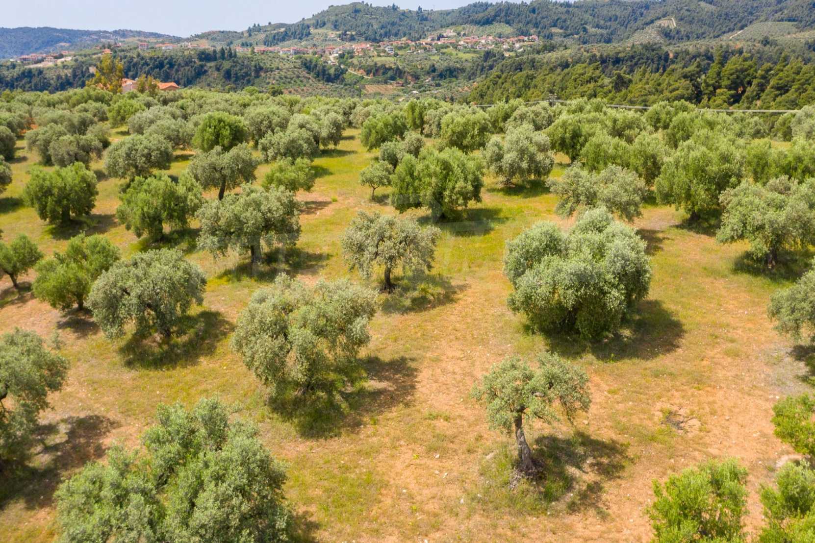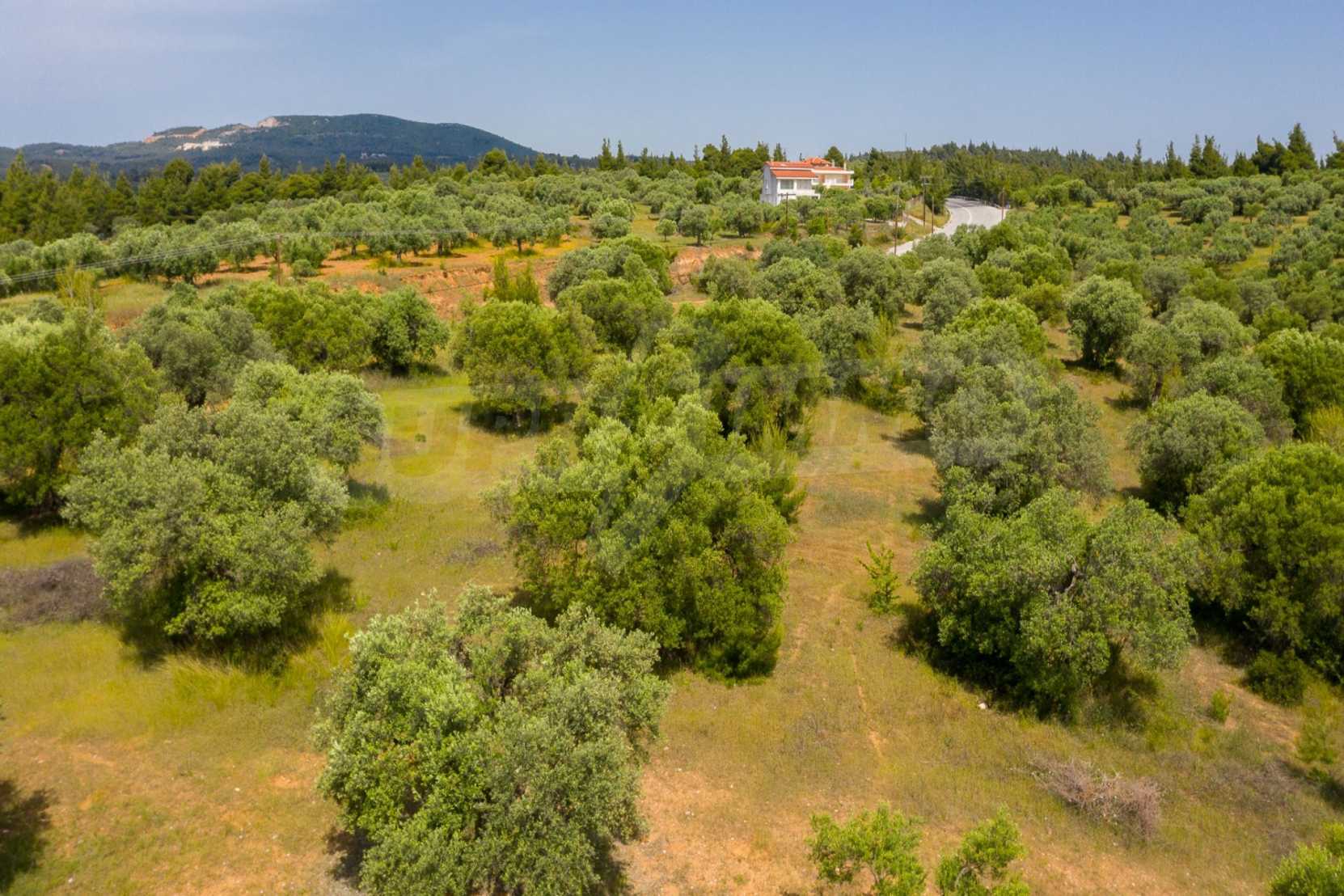 Pole, Sithonia, 9312 m², widok na morze, otwarty widok, orientacja wschodnia, poza miastem, pochyły, blisko morza, panorama, główne drogi, pole oliwne w środku, nadaje się do systemów fotowoltaicznych, kompletny - budynek, idealny do domu , Idealny do użytku komercyjnego, Idealny pod zabudowę domków letniskowych