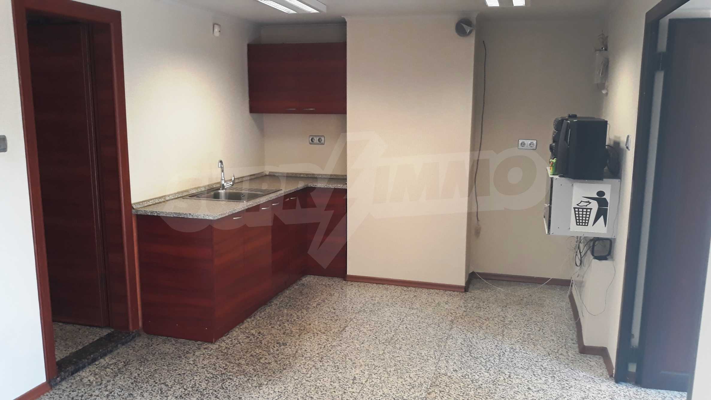 Biuro ma powierzchnię całkowitą około 170 m², z czego 130 m² to powierzchnia robocza, a 40 m² to ogródek przy biurze. Składa się z trzech dużych pomieszczeń biurowych, które można zaaranżować według potrzeb przyszłego najemcy, dwóch łazienek, wyposażonego aneksu kuchennego oraz ogrodu z meblami ogrodowymi. Zainstalowano również ogrzewanie i ciepłą wodę z kogeneratora oraz trzy wysokiej klasy klimatyzatory. W całym biurze położono granitową posadzkę.