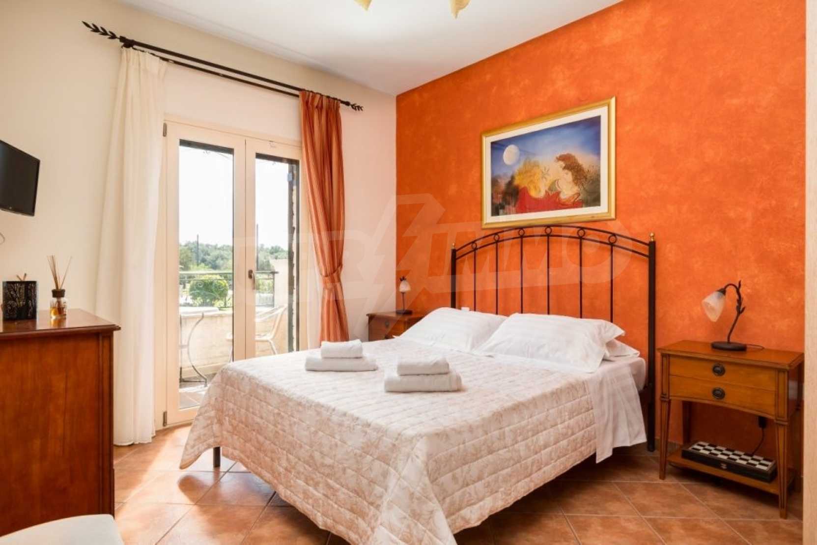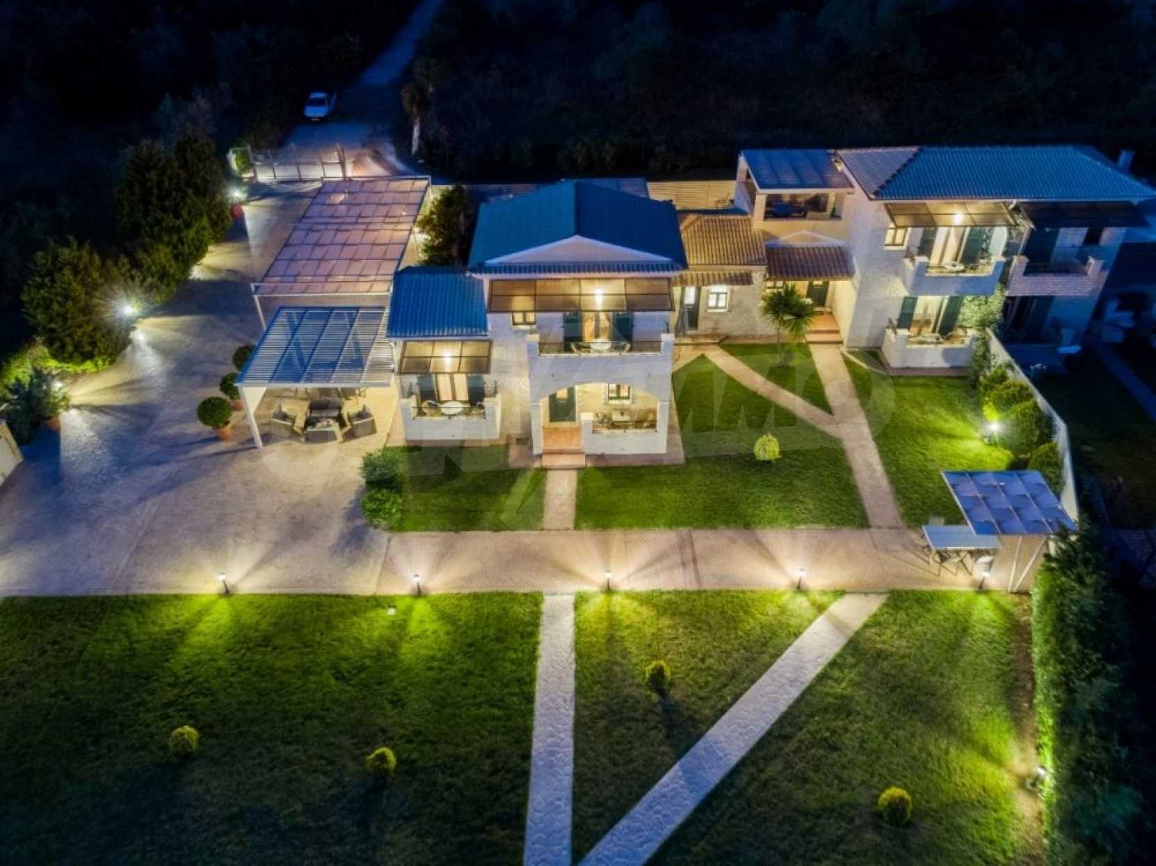 Ta willa dominuje w uprzywilejowanej pozycji, w otoczeniu przyrody iw niewielkiej odległości od krystalicznie czystych wód Morza Jońskiego. Położony w pięknym, dziewiczym miejscu w rejonie Chalikounas, w niewielkiej odległości od jeziora Corision, w którym występuje wiele rzadkich gatunków flory i fauny. Willa jest podzielona na trzy kamienne domy o łącznej powierzchni 194 m2 na działce o powierzchni 3530 m2. Pierwszy dom ma otwartą kuchnię/jadalnię, sypialnię z 2 łóżkami pojedynczymi i łazienkę. Na pierwszym poziomie znajduje się druga sypialnia z podwójnym łóżkiem.
