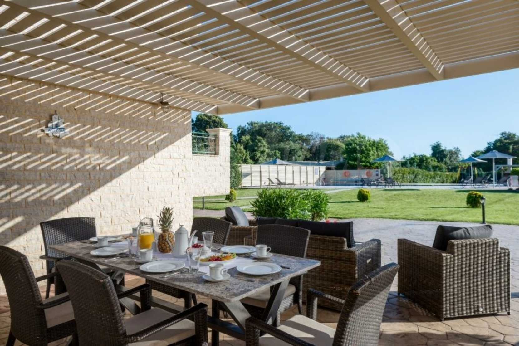 Basen, wypielęgnowane ogrody i grill tworzą piękną scenerię zaprojektowaną tak, aby ukoić i zrelaksować zmysły. Dbałość o szczegóły jest widoczna w każdym zakątku nieruchomości, która została zbudowana z doskonałej jakości materiałów.