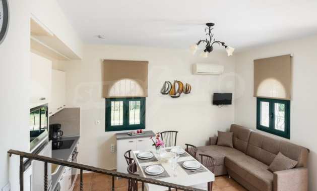W trzecim domu znajduje się otwarta kuchnia / jadalnia, jedna sypialnia z podwójnym łóżkiem i łazienka, a na pierwszym poziomie znajduje się jedna sypialnia z 2 pojedynczymi łóżkami.
