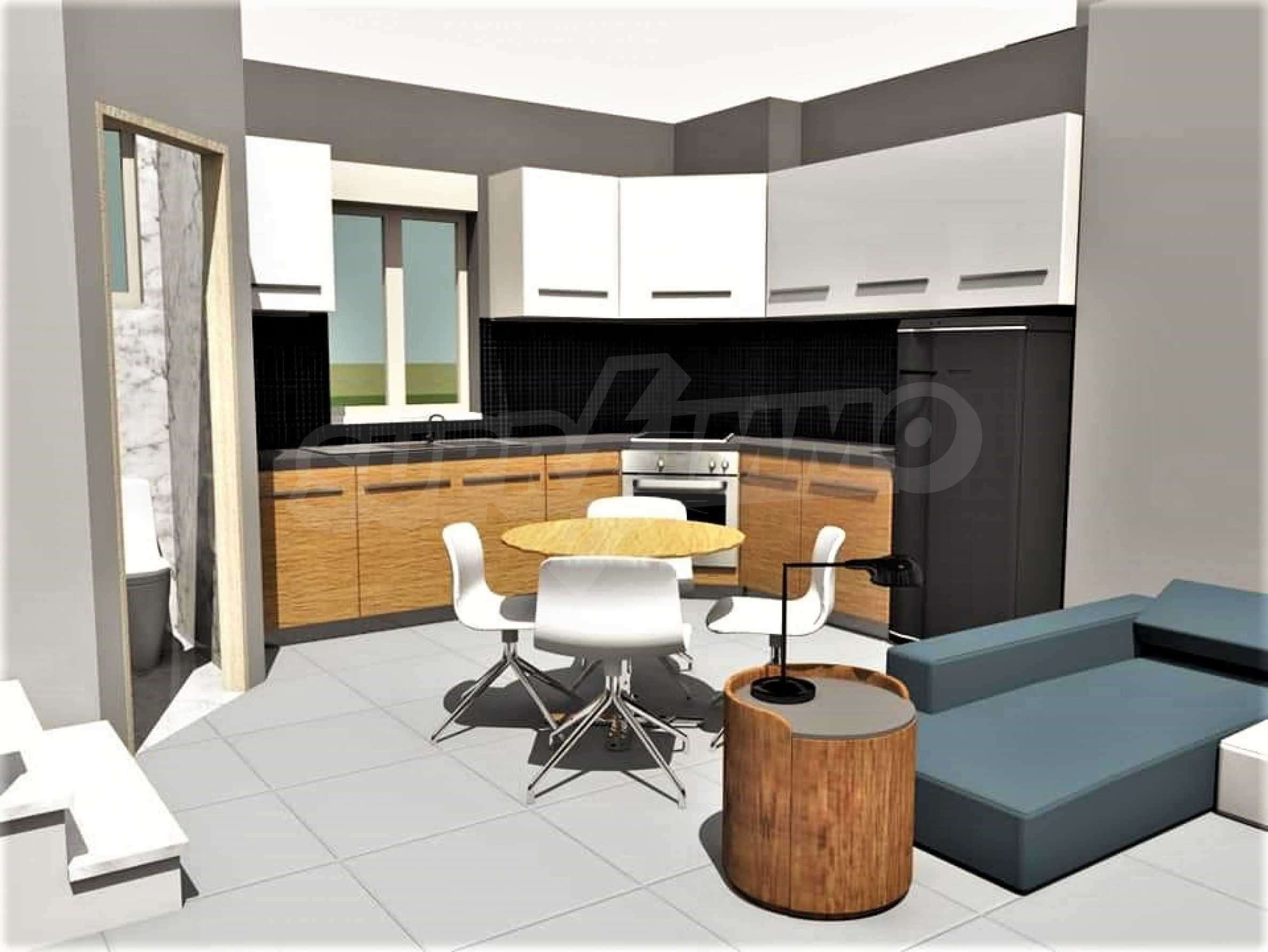 ● 1 pokój dzienny z aneksem kuchennym i jadalnią;