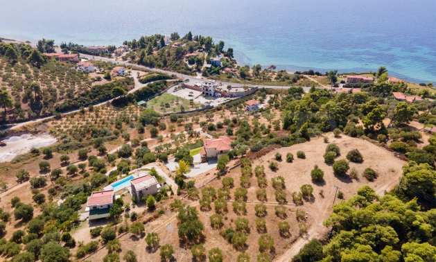 Pole, Sithonia, 6900 m², widok na morze, otwarty widok, amfiteatr, stały widok bez przeszkód, poza wioską, nachylony, od strony głównej drogi, naturalne piękno, nadaje się do systemów fotowoltaicznych, kompletny - budynek, idealny do zamieszkania, idealny do użytku komercyjnego, idealny na zabudowę chałupniczą