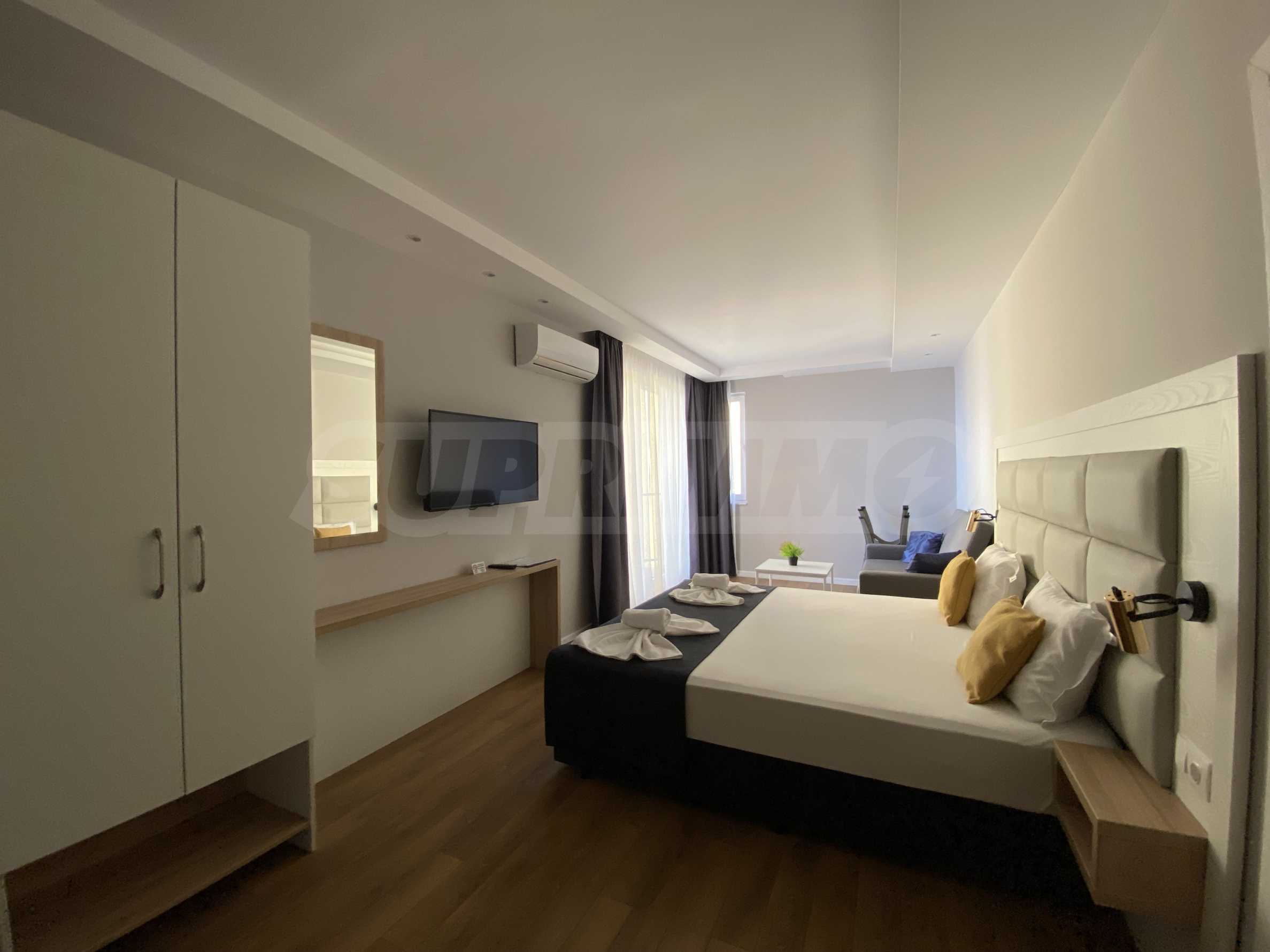 Prezentujemy umeblowane studio na sprzedaż, w eleganckim i nowoczesnym kompleksie położonym nad morzem, na klifach w kurorcie Achtopol.