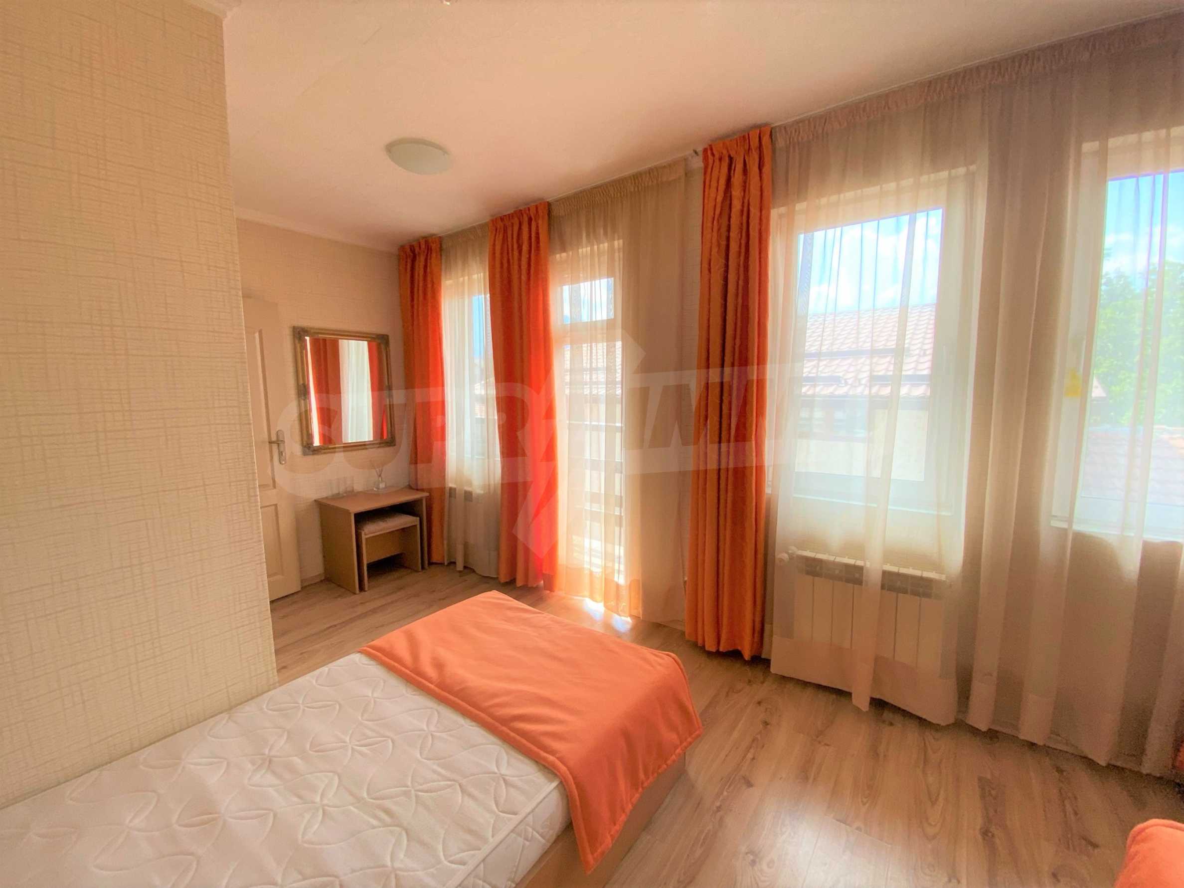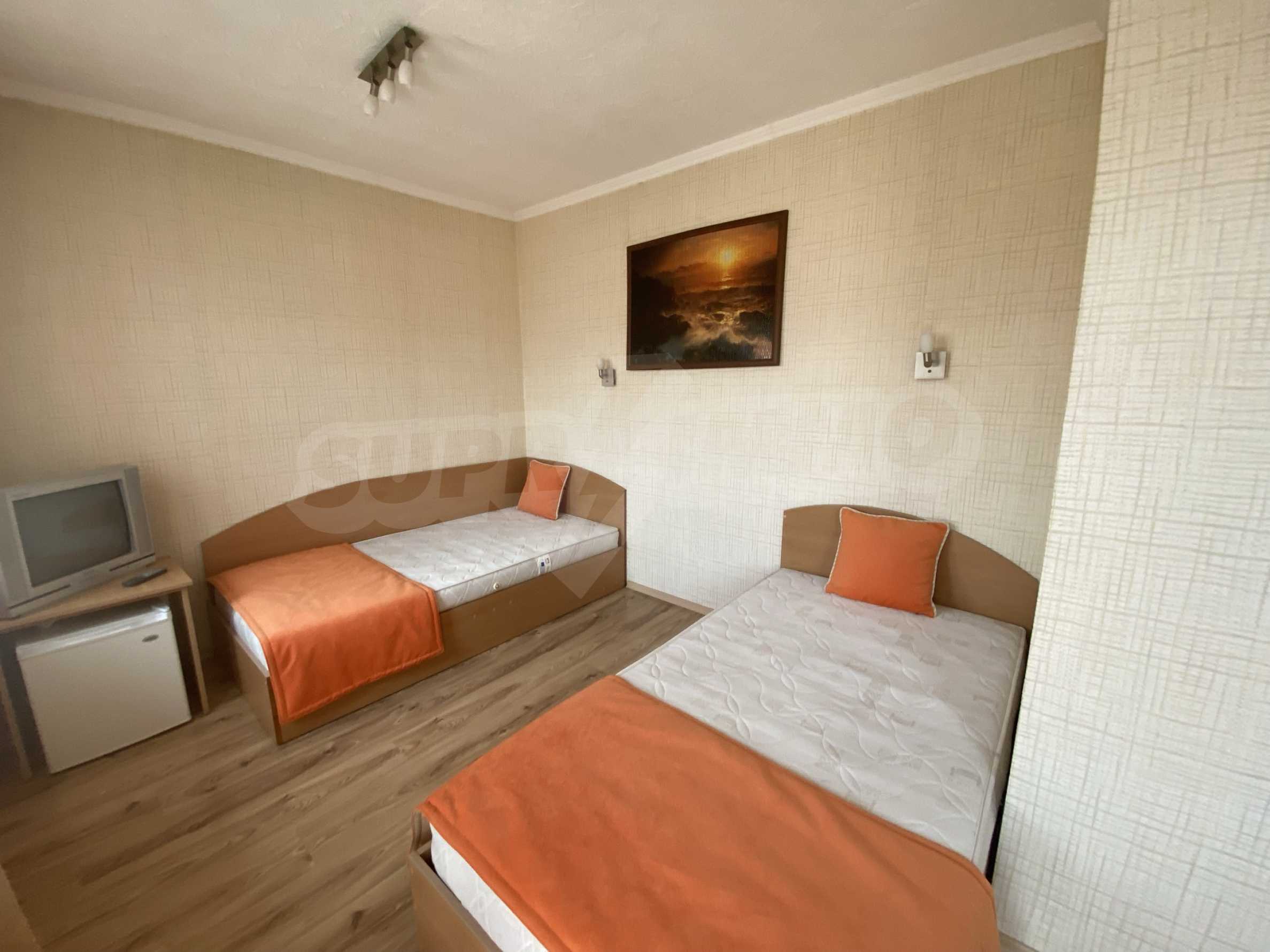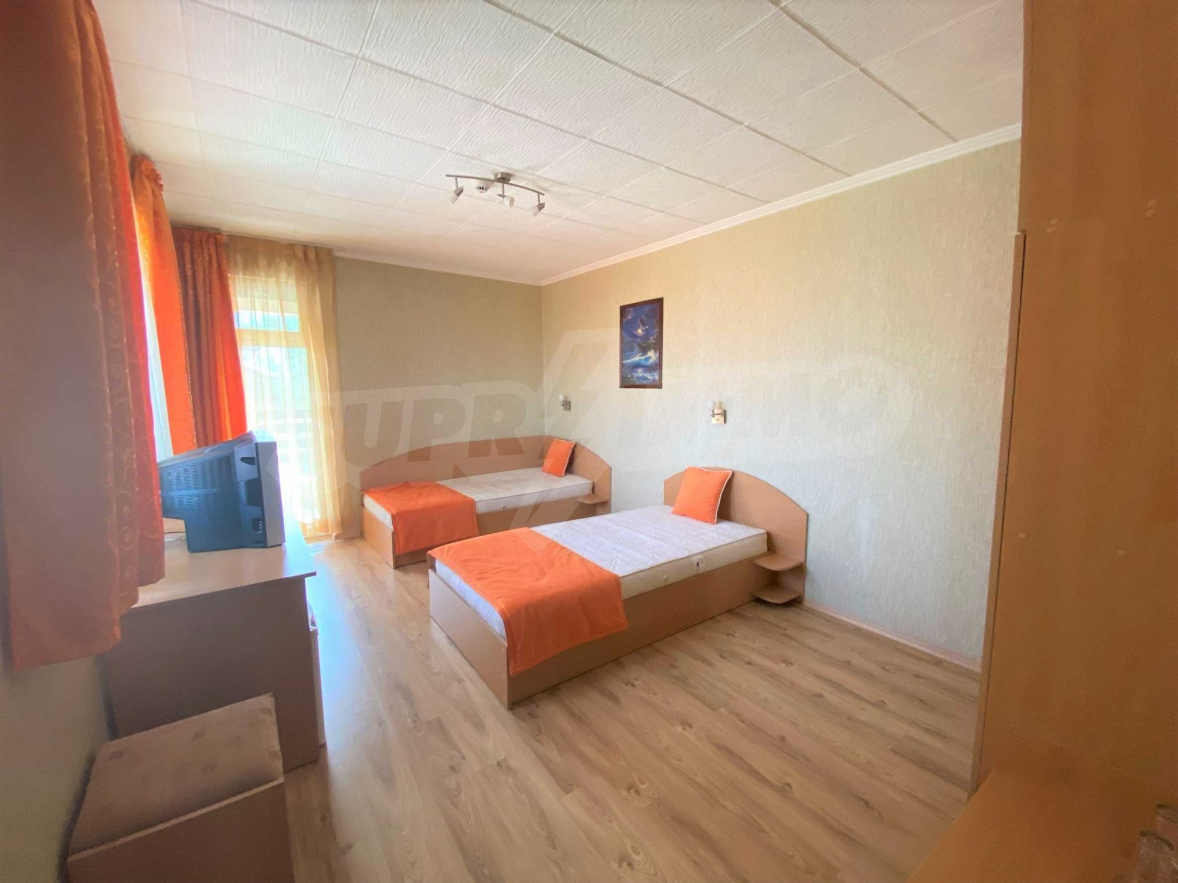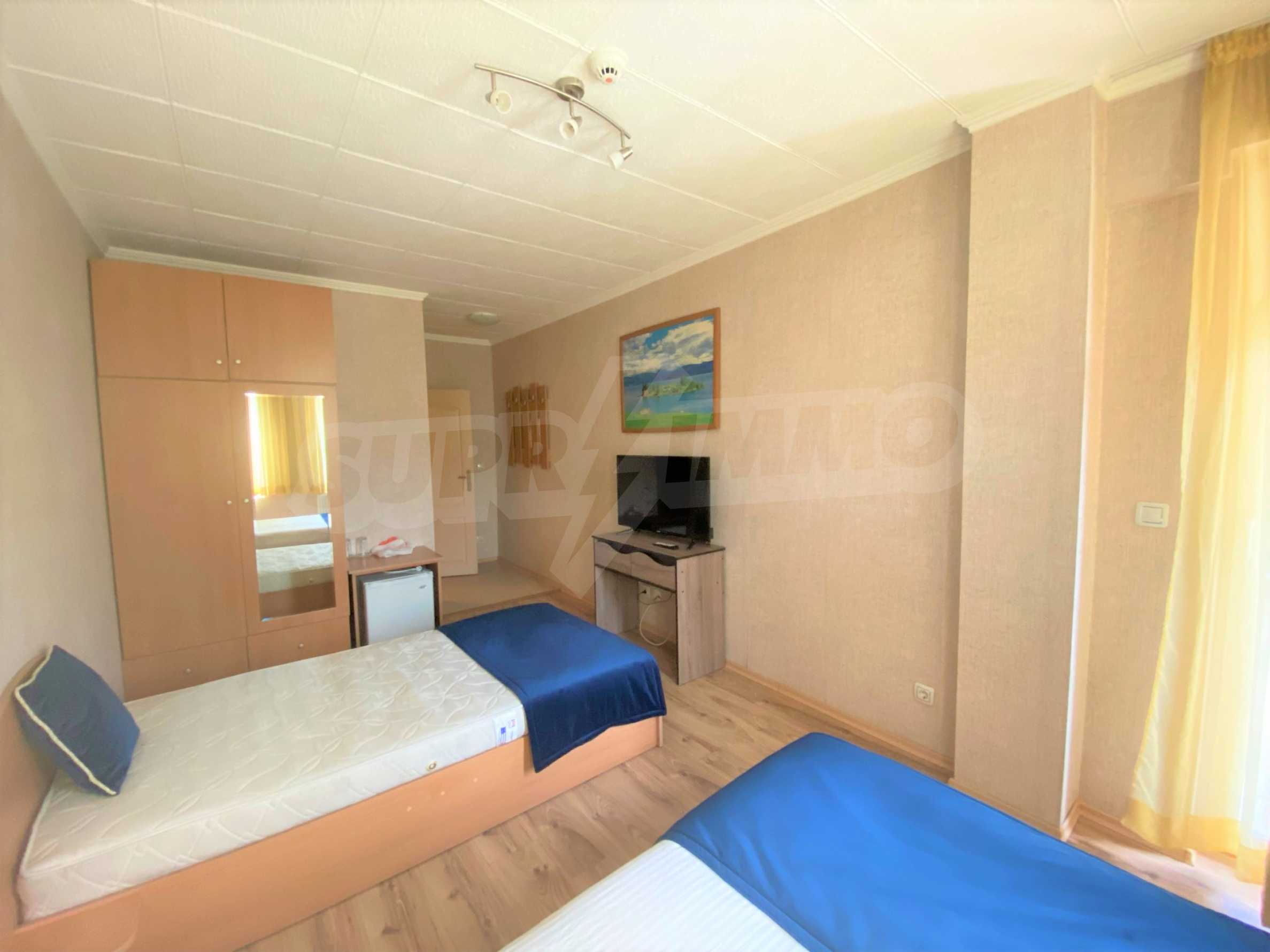 Przed hotelem znajduje się parking z siedmioma miejscami parkingowymi. Każdy pokój ma okna PCV, ściany pokryte tapetą oraz łazienkę z kabiną prysznicową i toaletą. Wszystkie pokoje posiadają balkon z pięknym widokiem na góry Pirin.
