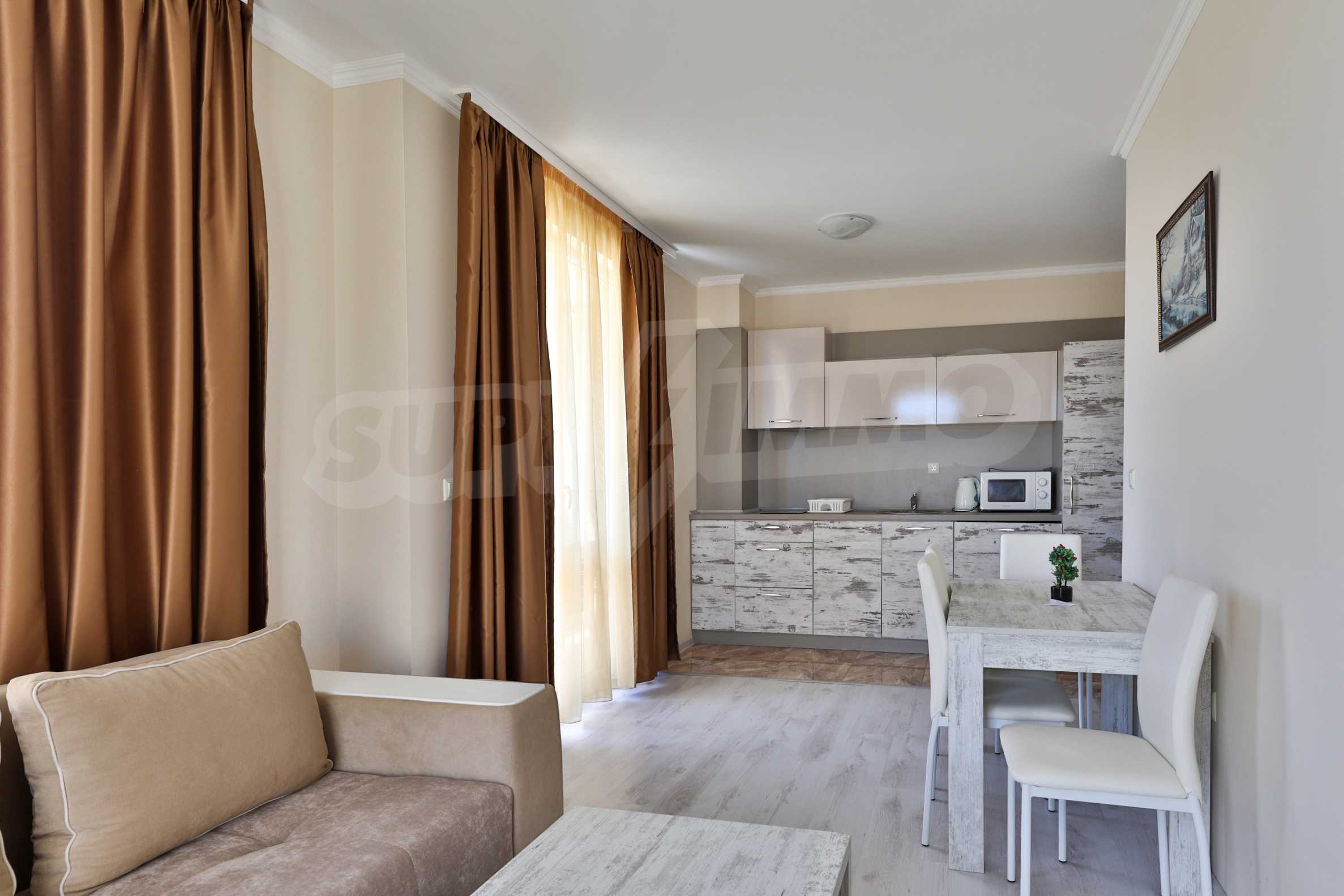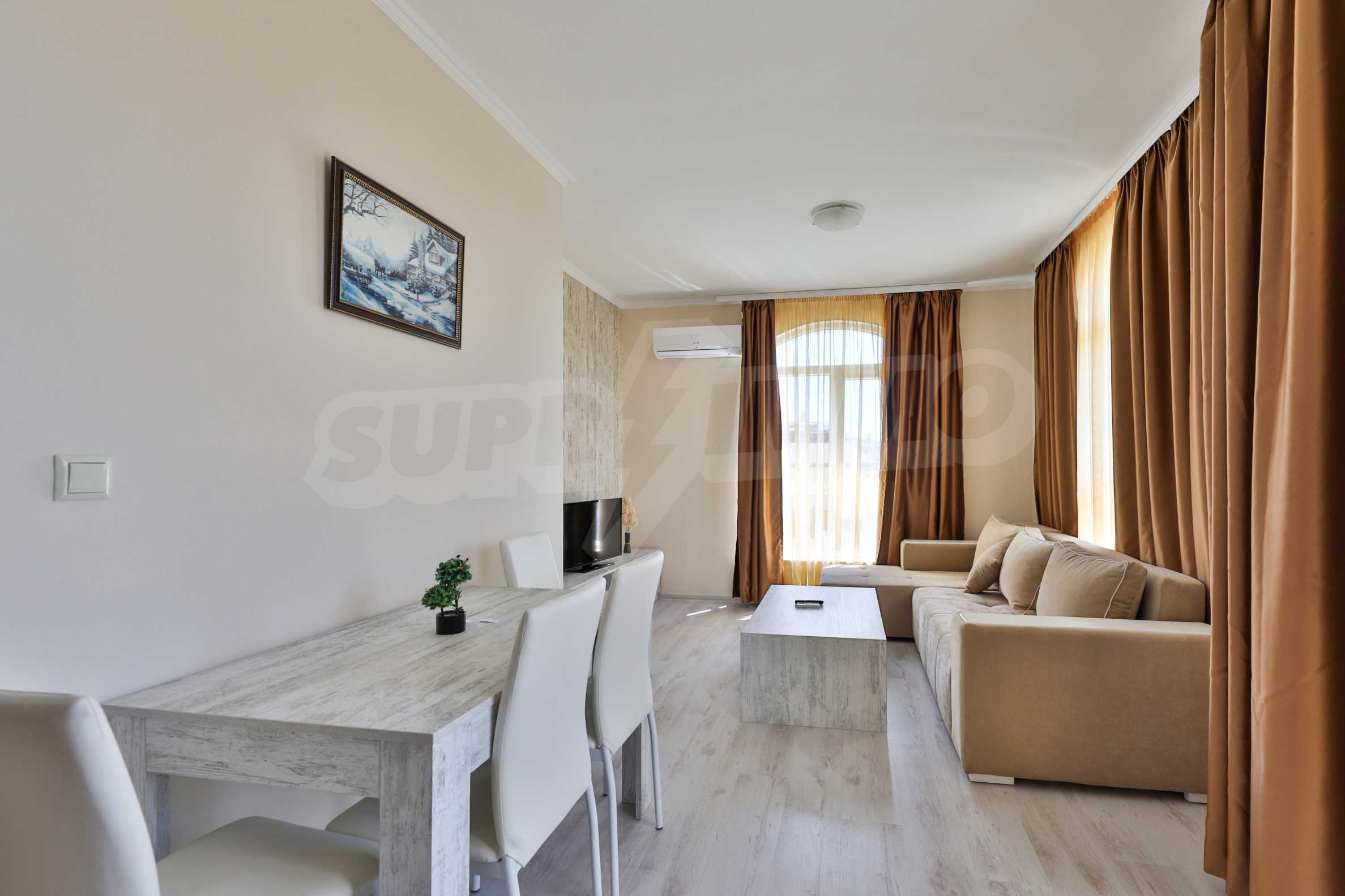 Prezentujemy na sprzedaż apartament z jedną sypialnią, w nowym, eleganckim kompleksie z basenem i strefą spa, położonym zaledwie 160 metrów od Plaży Centralnej w Świętym Własie.