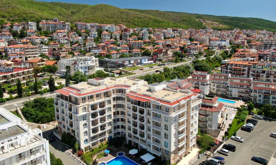Kompleks położony jest przy cichej i spokojnej ulicy, z naturalnymi nierównościami, skąd roztacza się piękna panorama na morze i wzgórza Starej Płaniny. Lokalizacja zapewnia łatwy i szybki dostęp do centralnej części kurortu, a także do prestiżowej mariny Świętego Własu - „Marina Dinevi”.