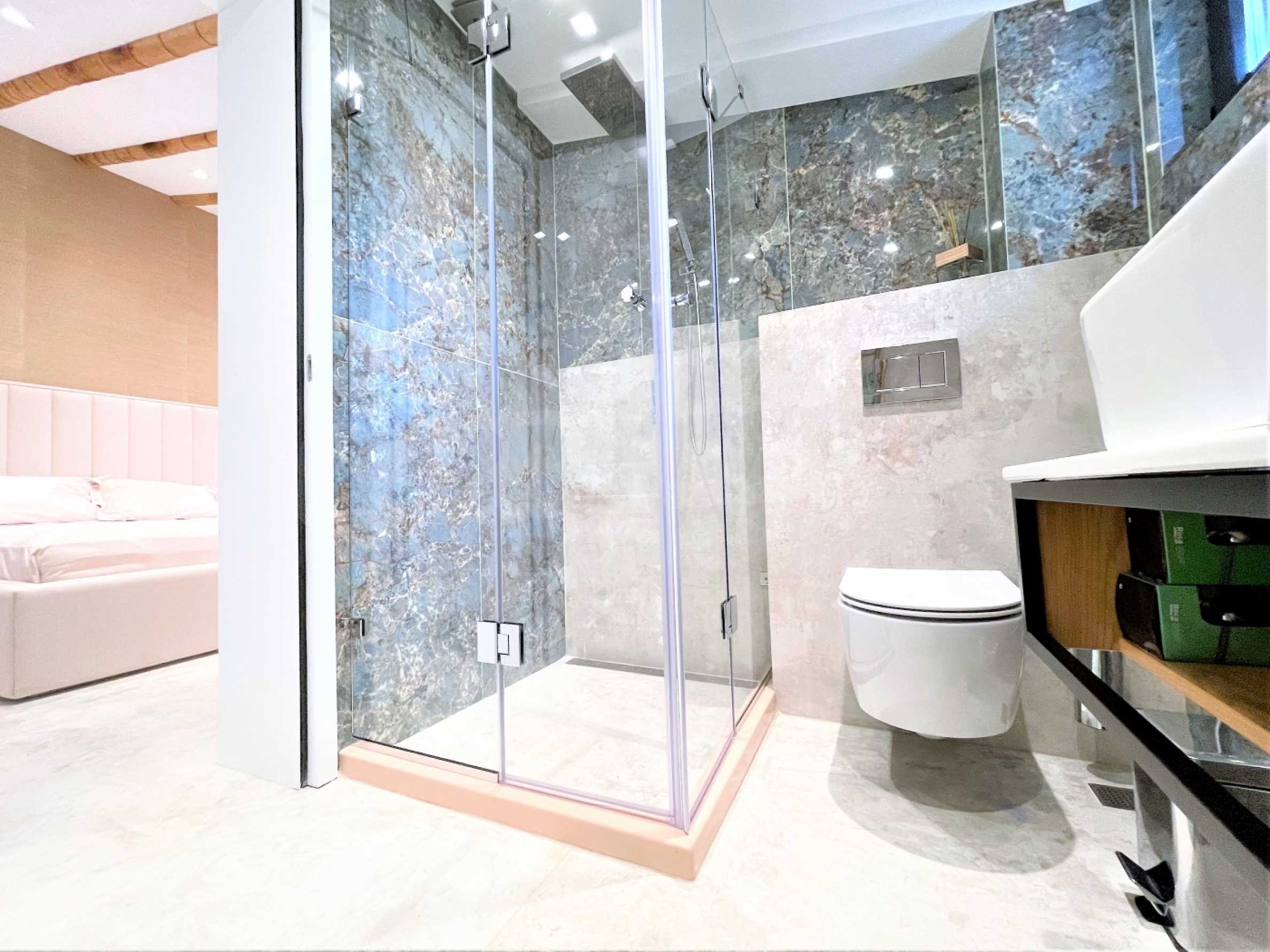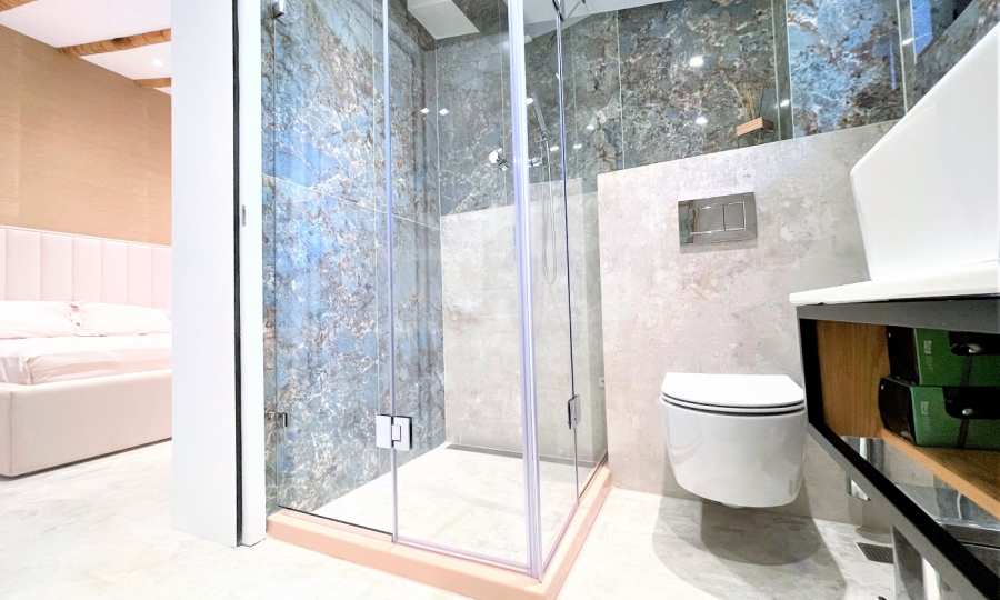 ● Wykładziny podłogowe i łazienki z płytek włoskiego granitu;